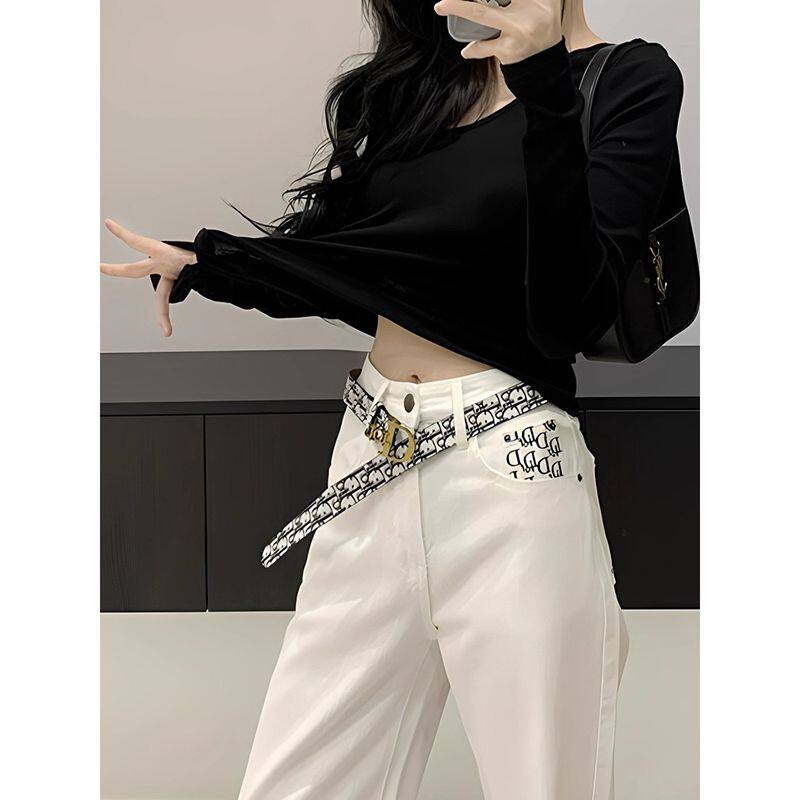 Футболка и джинсы с принтом, модные и тонкие.