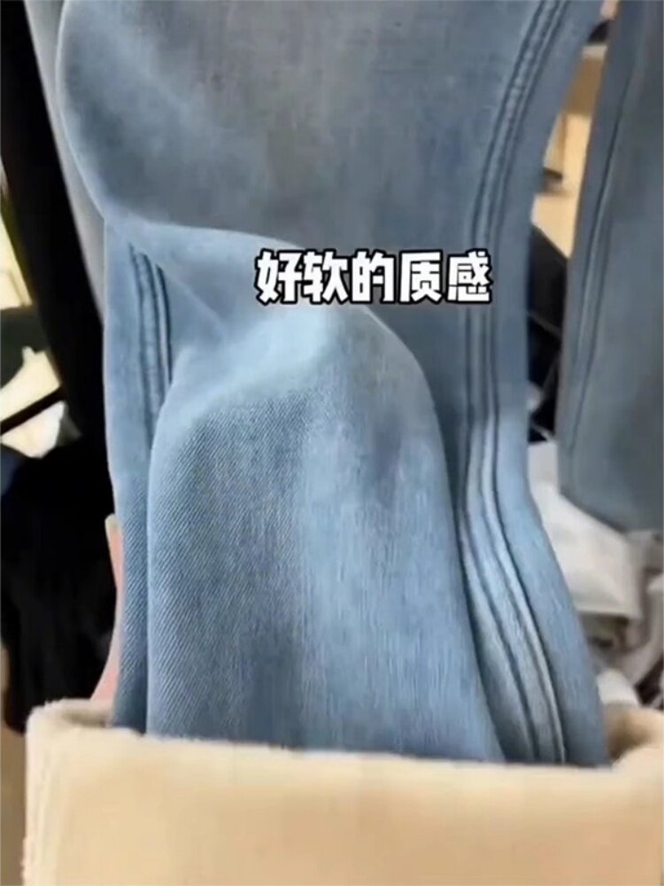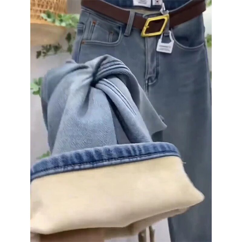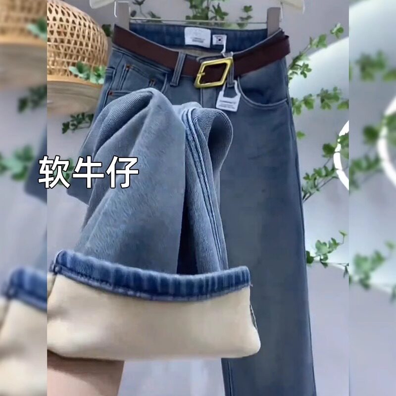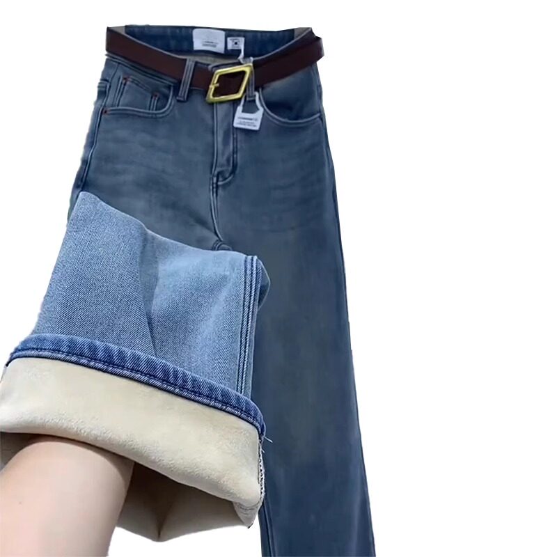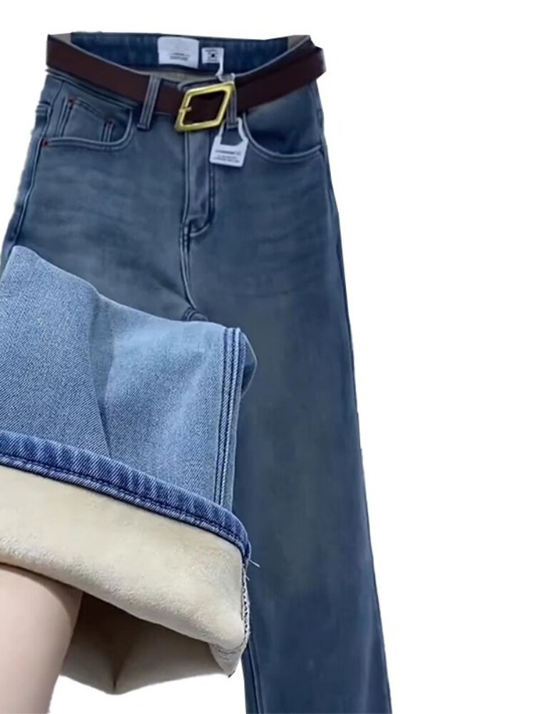 Джинсы с начесом, зимние приталенные штаны, большой размер, высокая талия, свободный прямой крой
