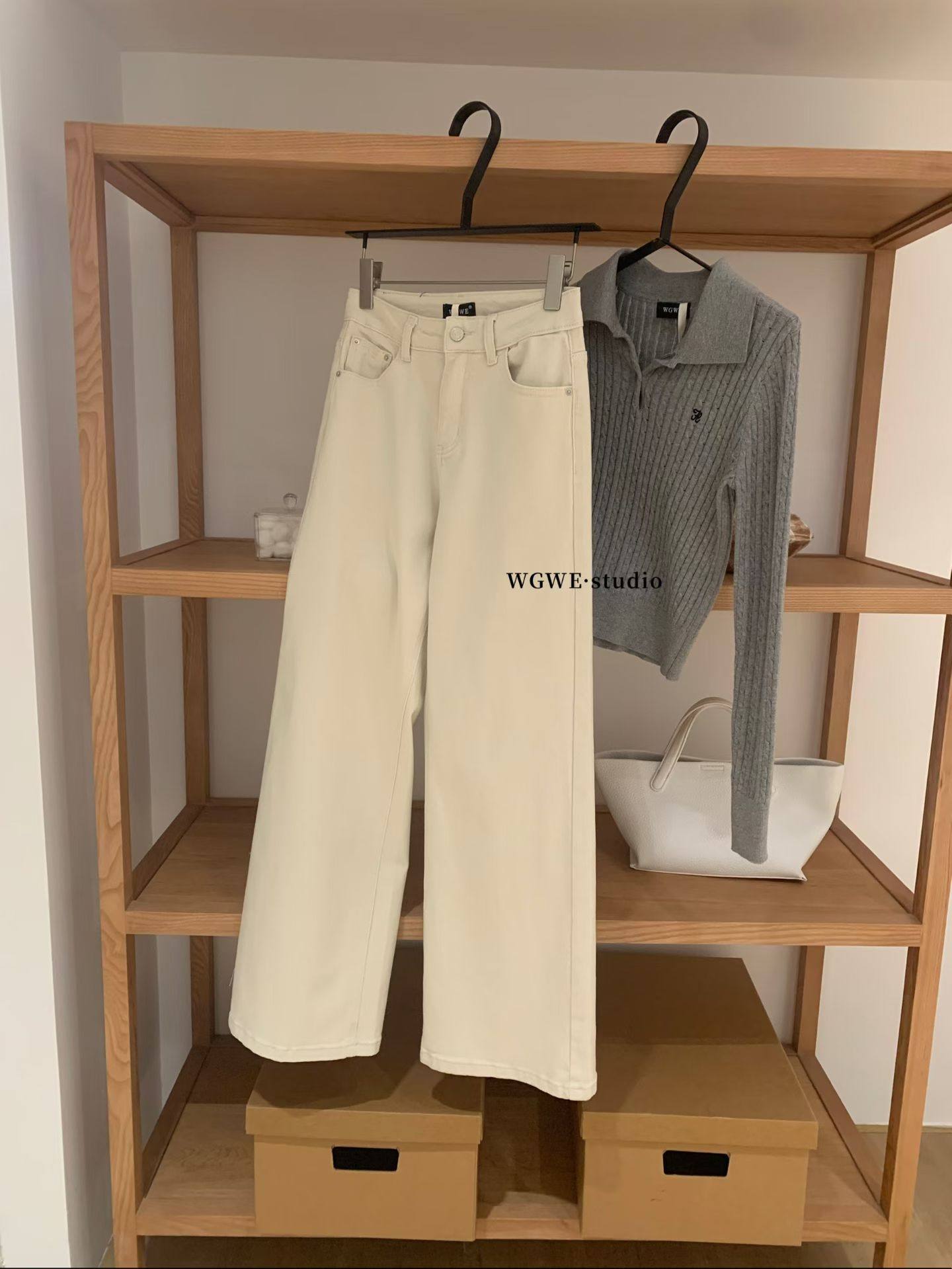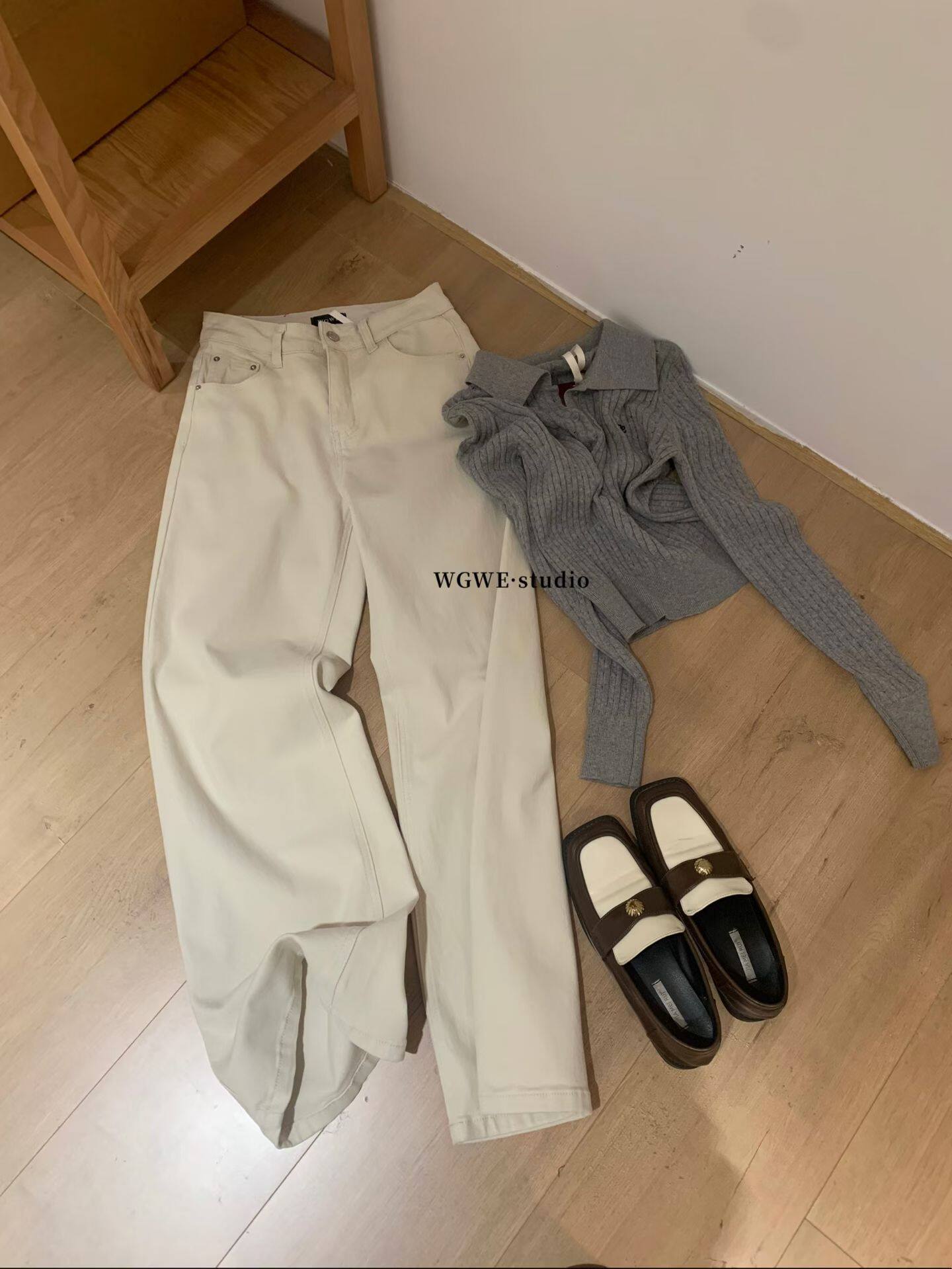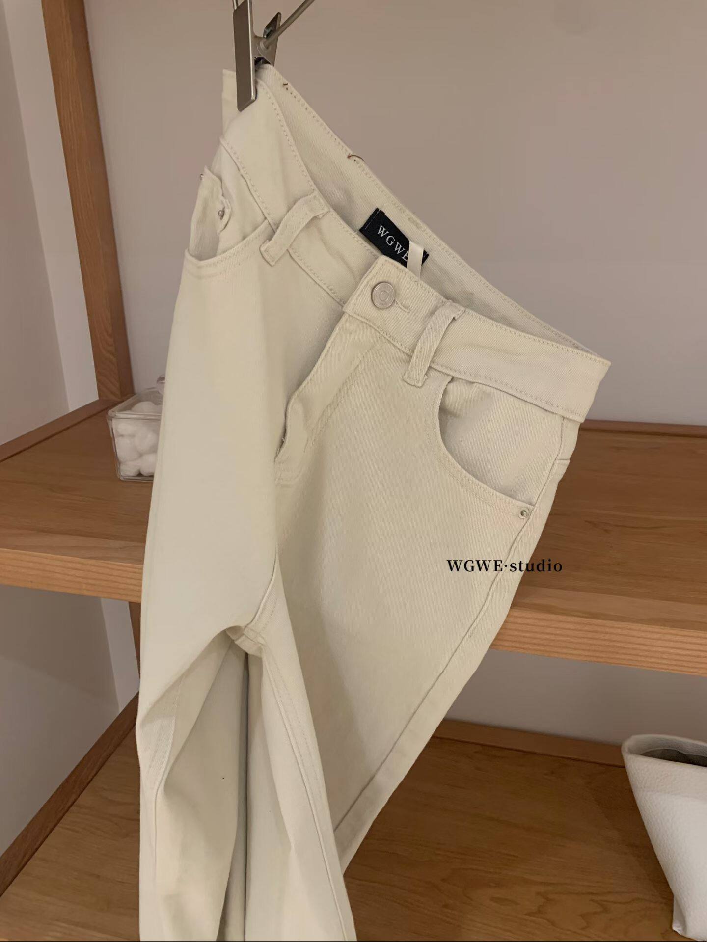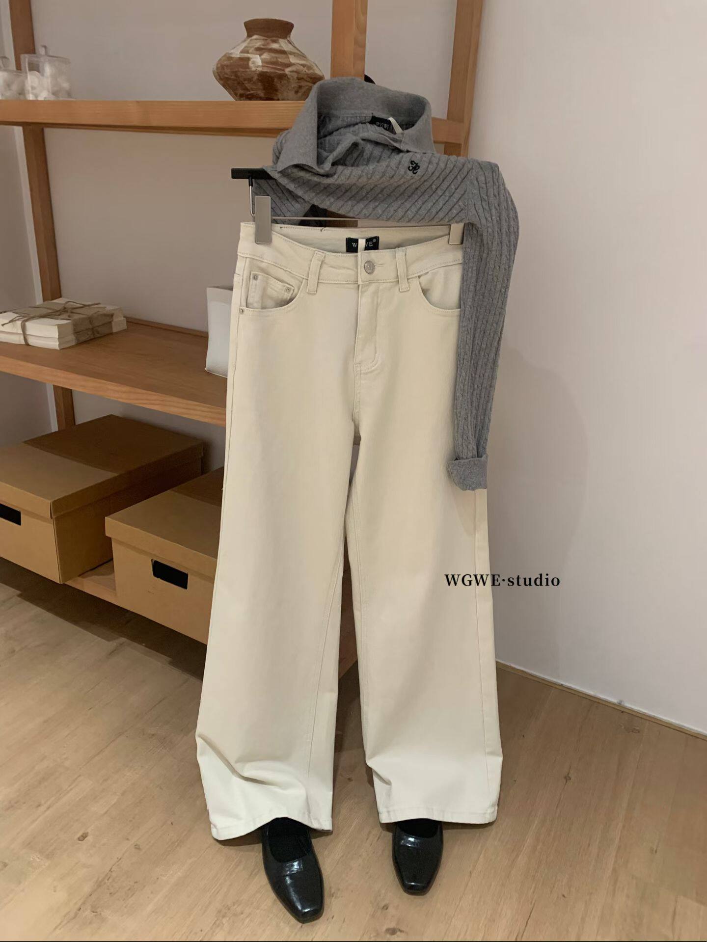Демисезонные бежевые цветные прямые свободные джинсы, штаны, повседневные брюки, свободный крой, высокая талия