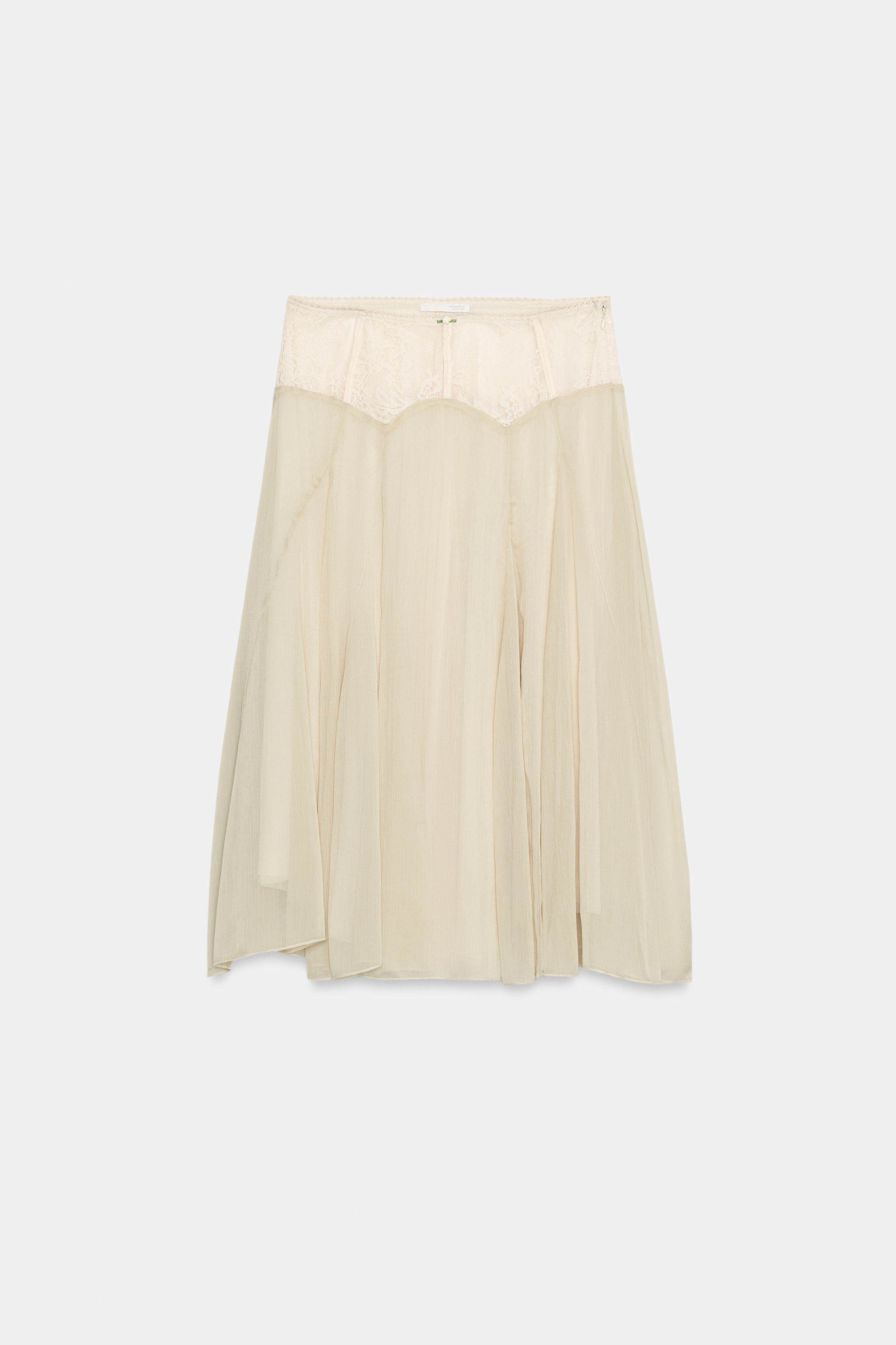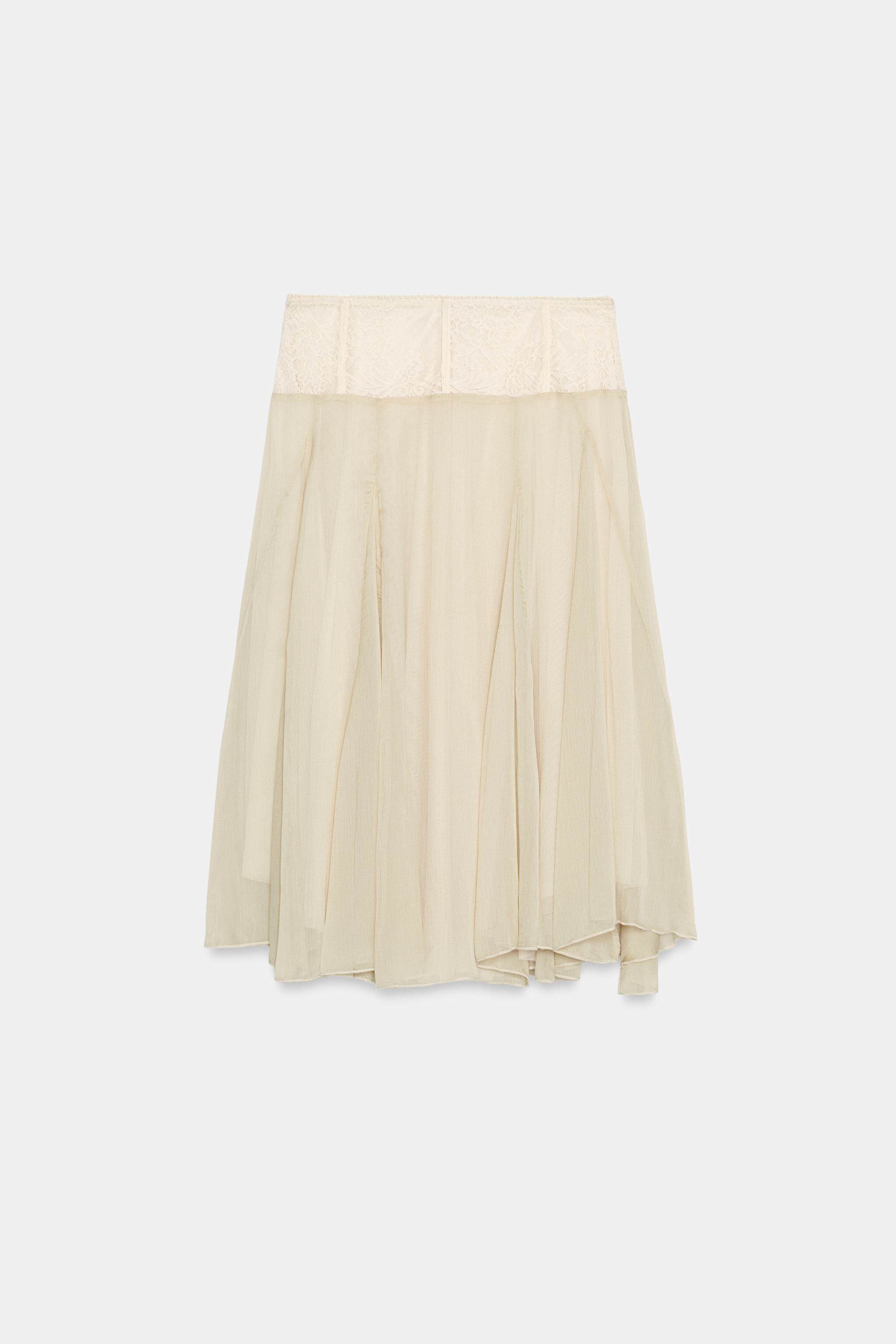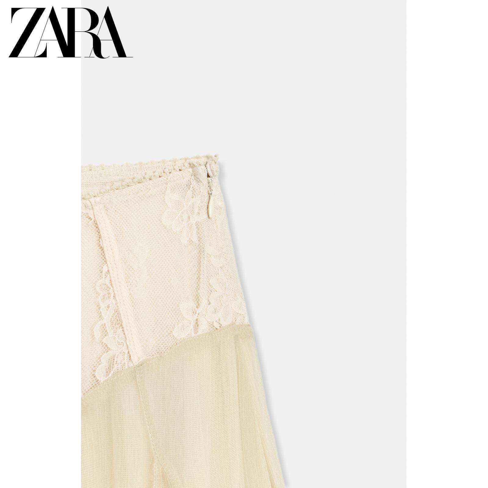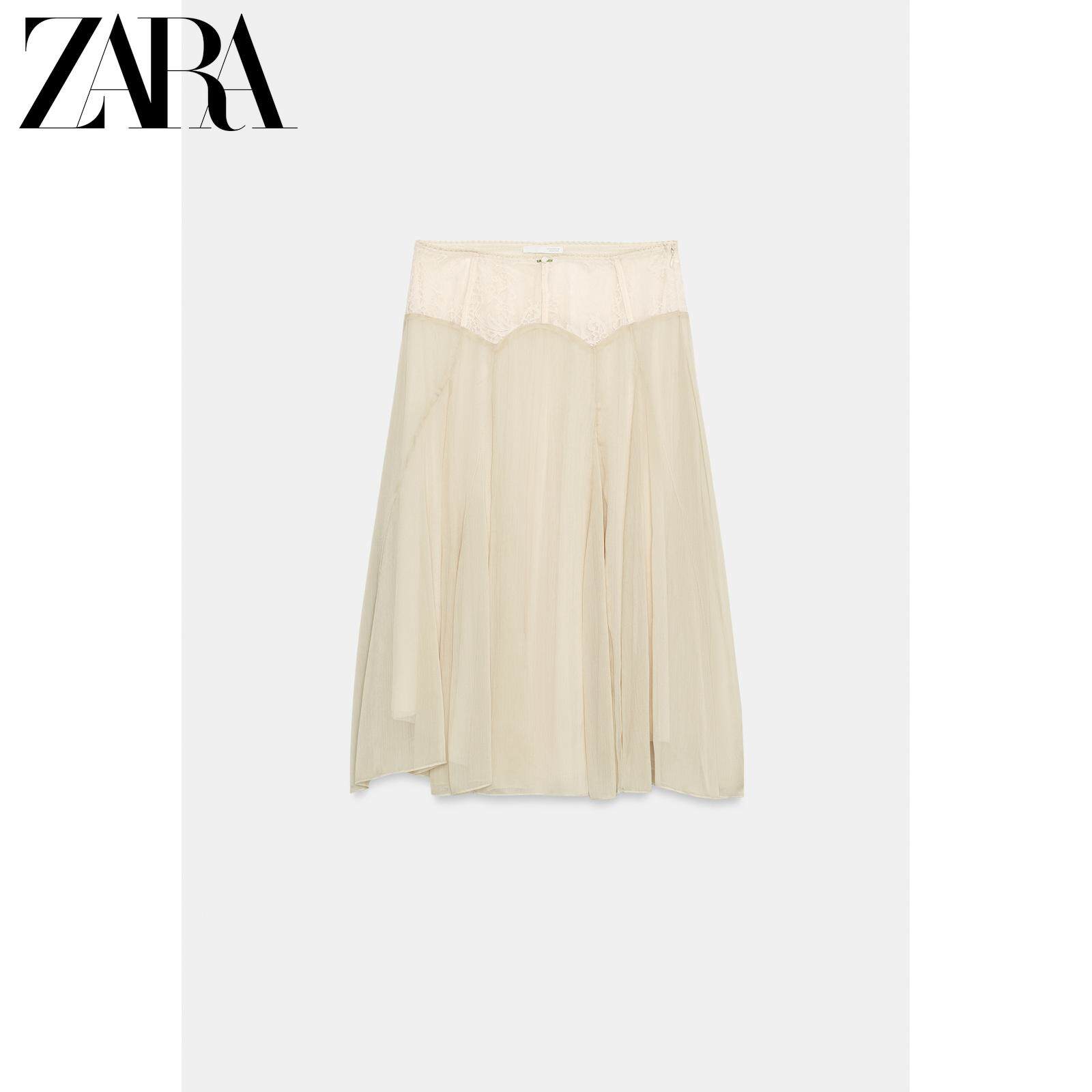 ZARA Новое поступление весны и лета 2026, женская юбка-миди контрастного цвета с высокой талией и кружевом 5070006 752