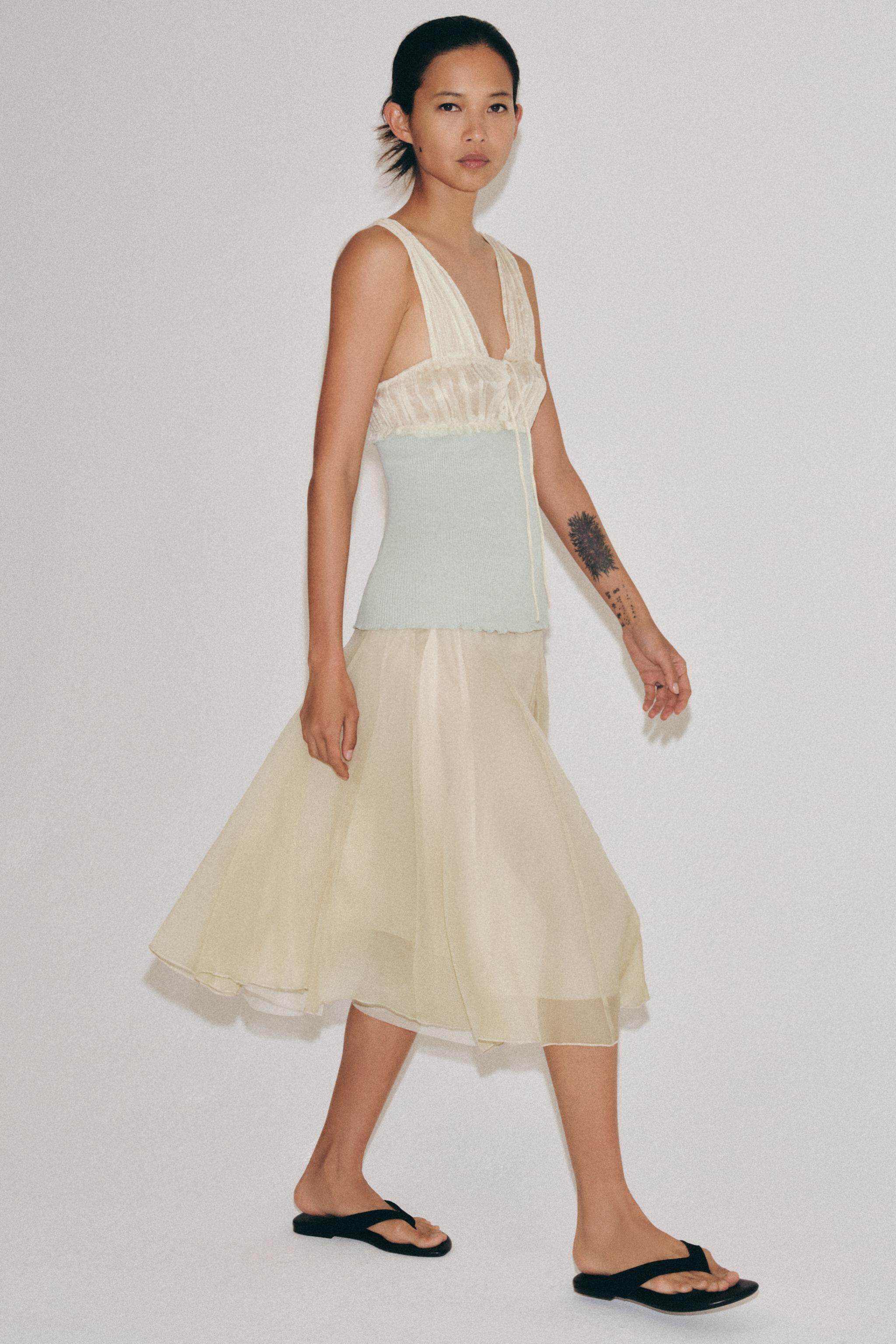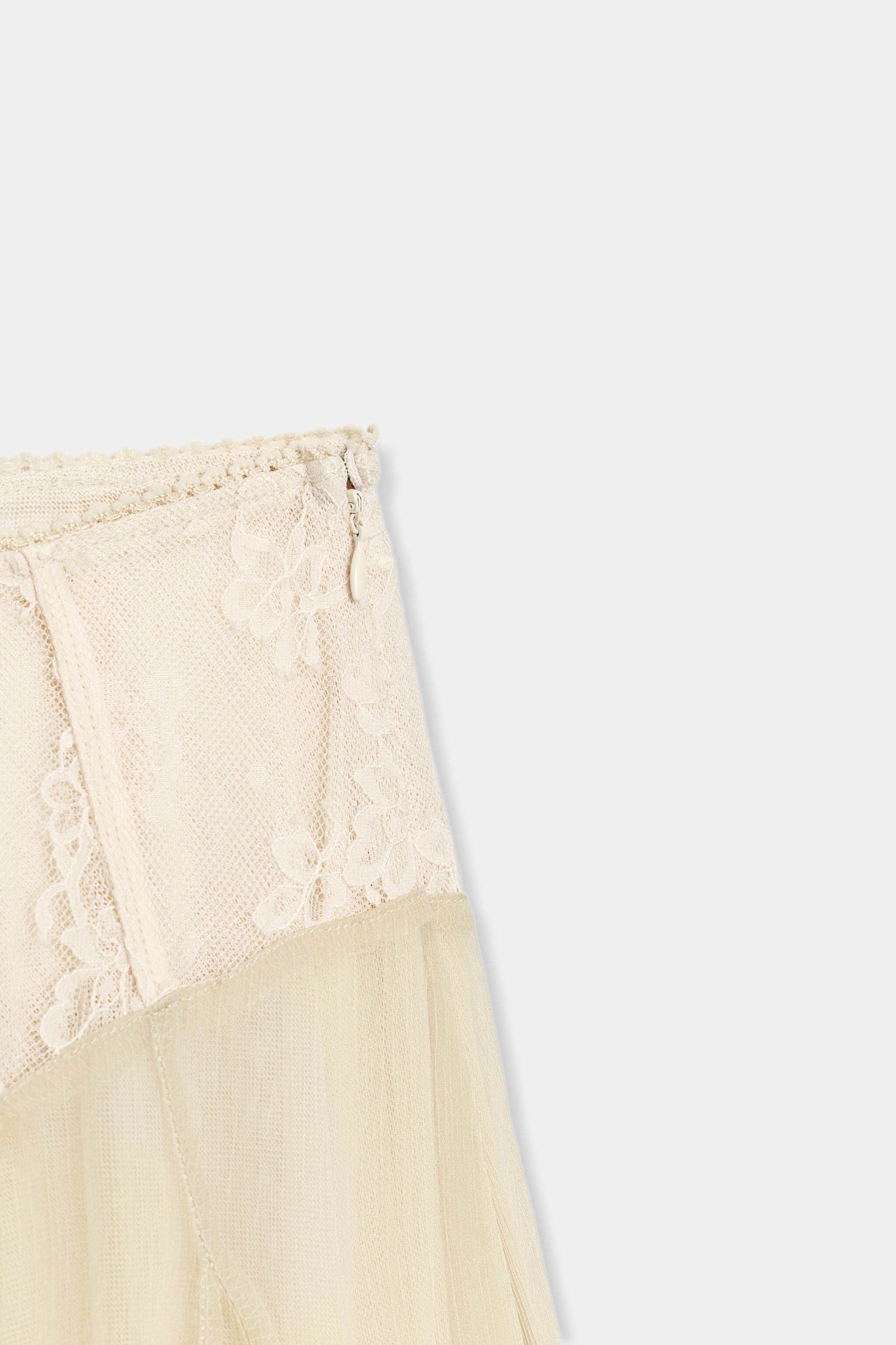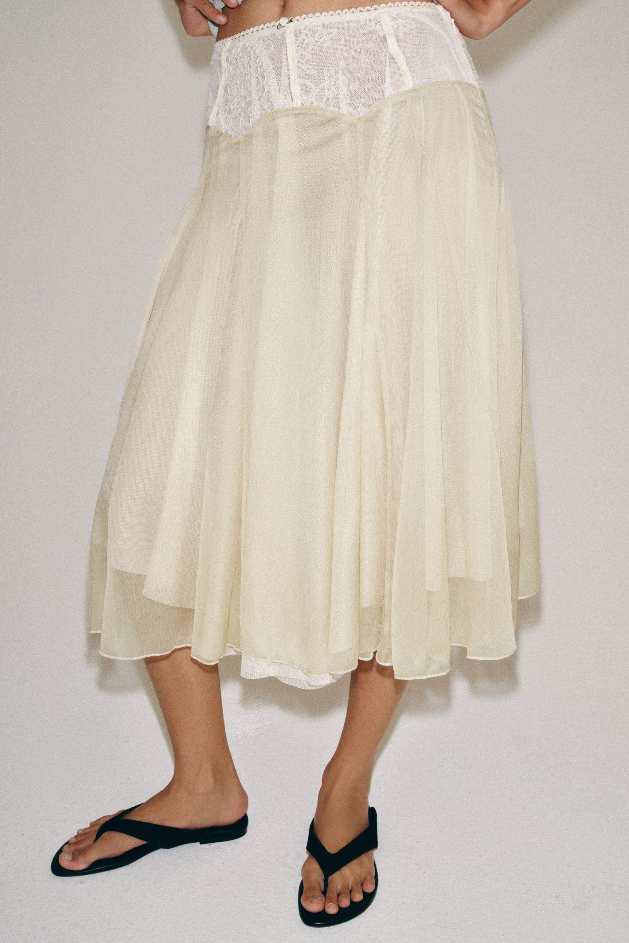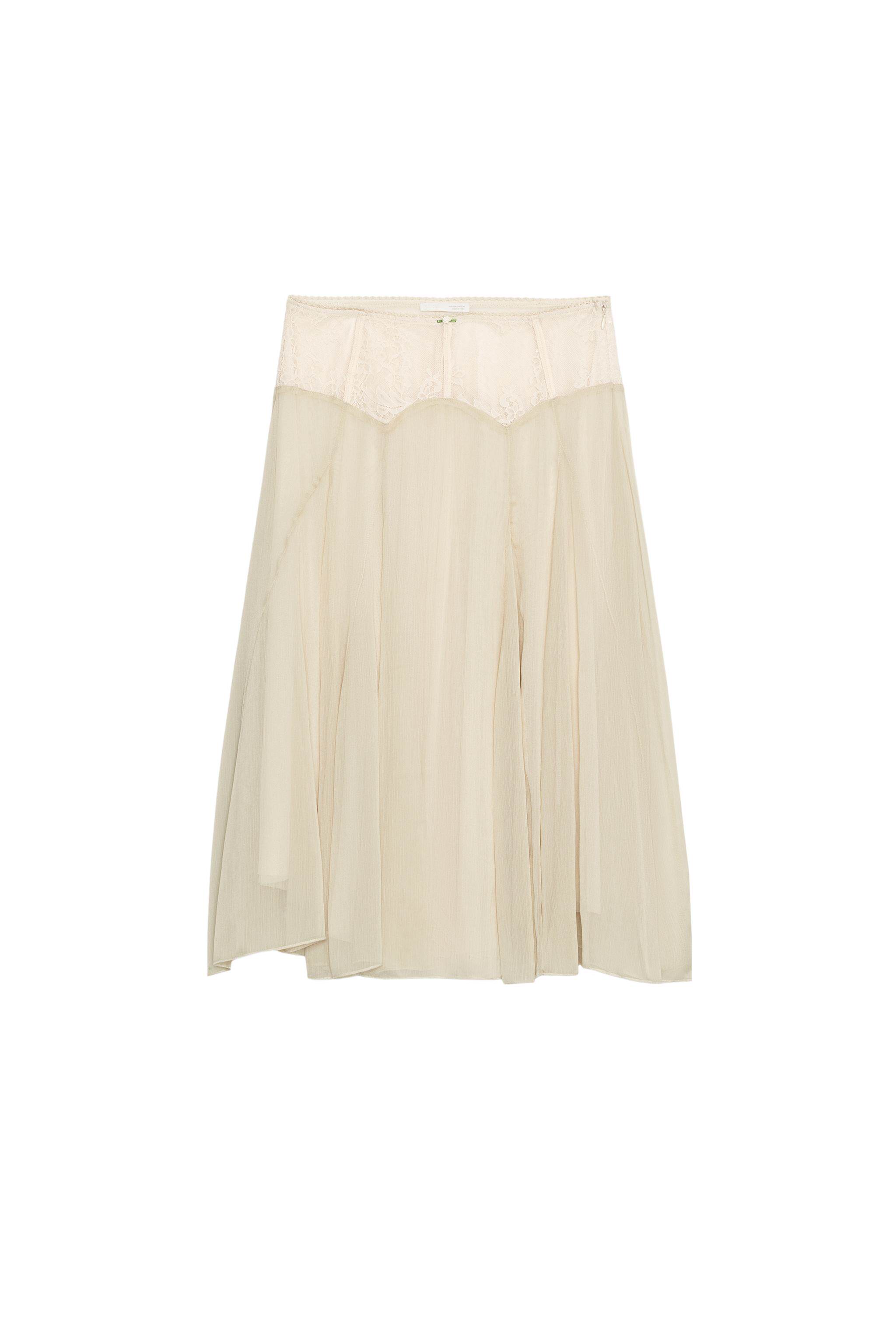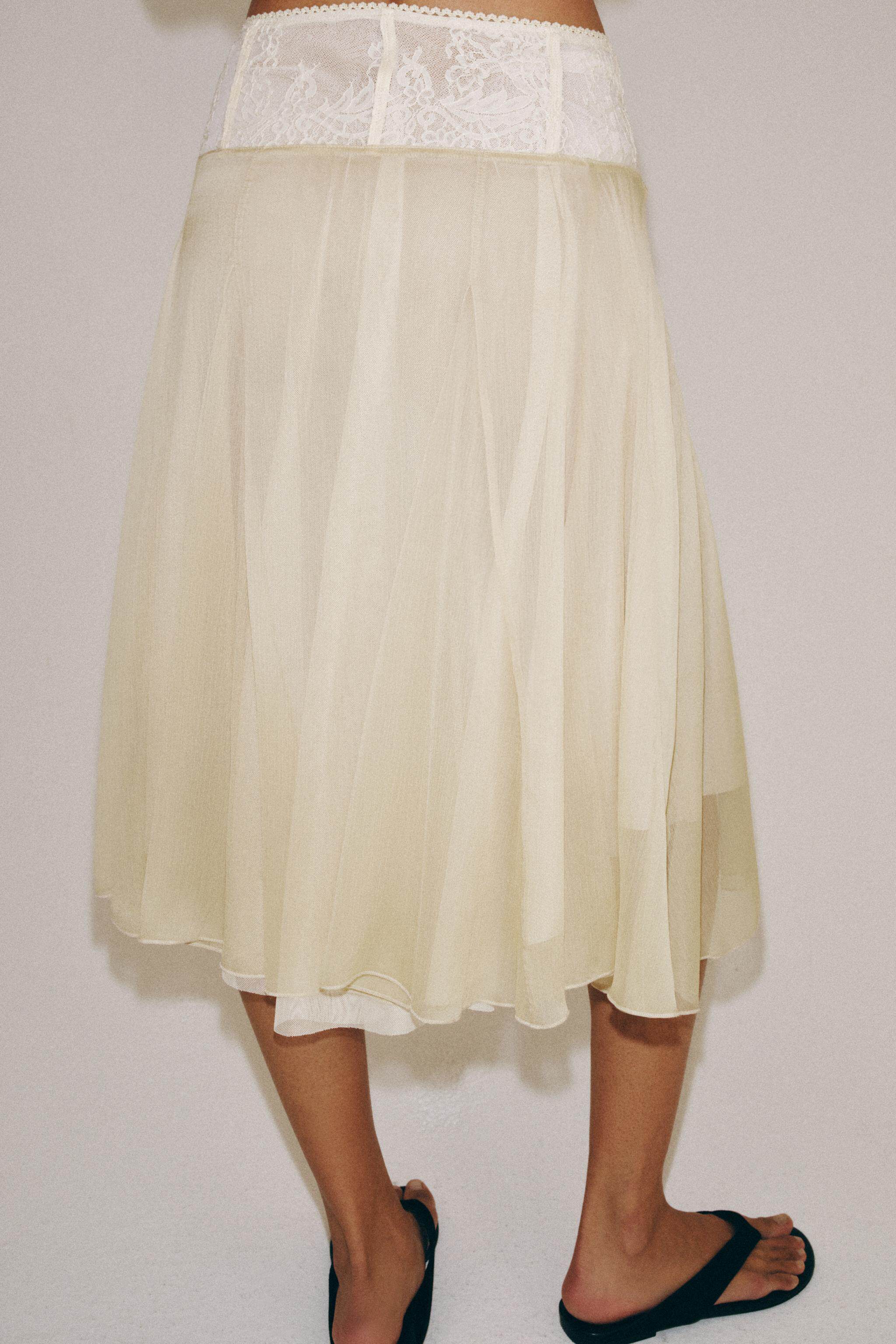 ZARA Новое поступление весны и лета 2026, женская юбка-миди контрастного цвета с высокой талией и кружевом 5070006 752