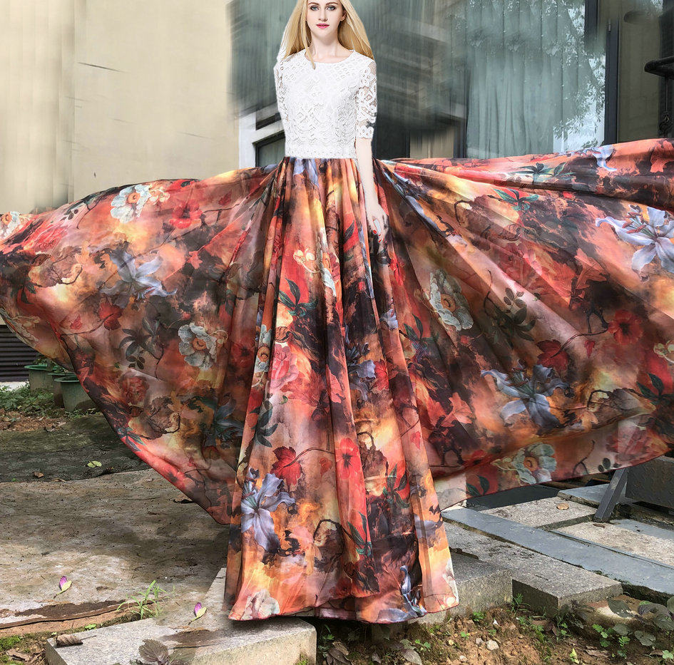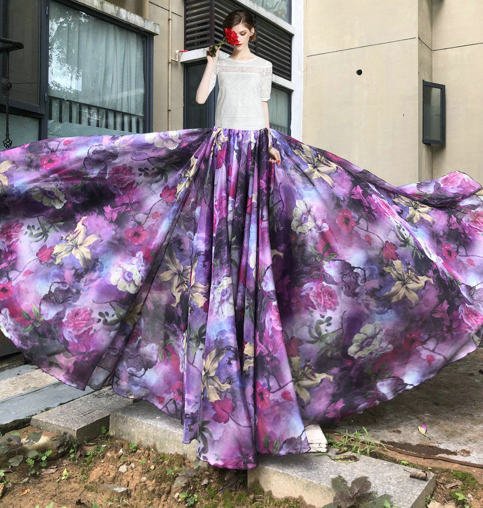 Фея, развевающаяся однотонная трехслойная шифоновая длинная юбка с подолом 1300 градусов и юбкой средней длины для танцев с большим подолом 20 метров.