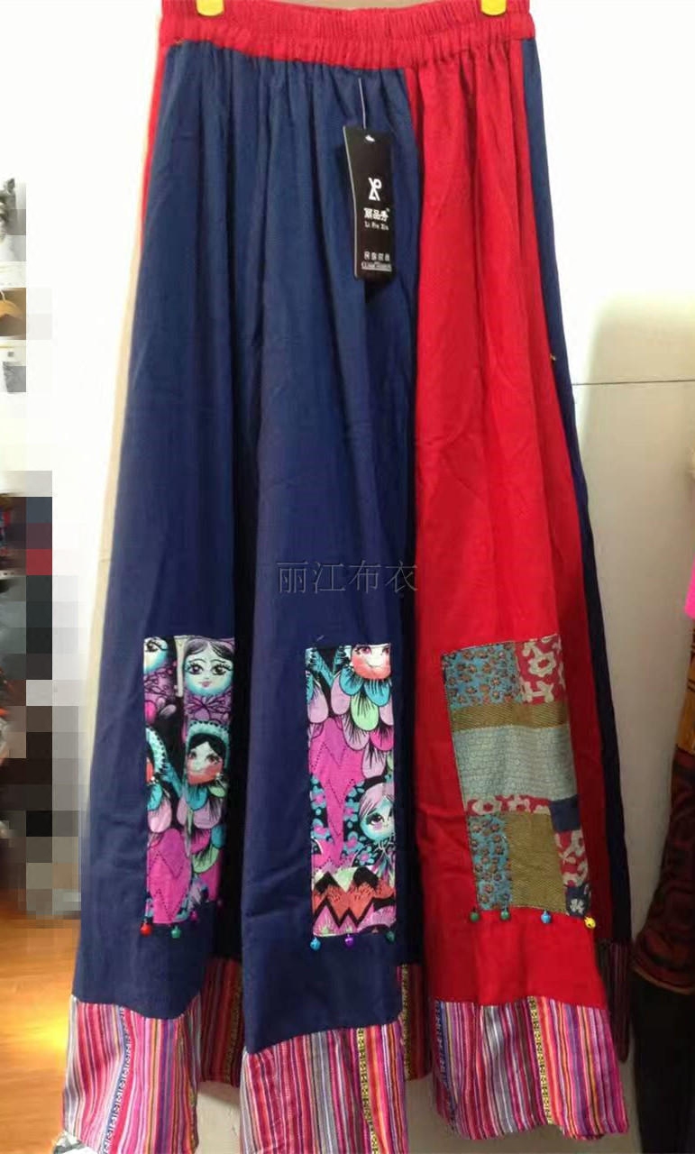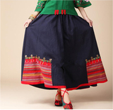 Этническая ретро юбка в складку из провинции Юньнань, этнический стиль, из хлопка и льна, плиссированная юбка