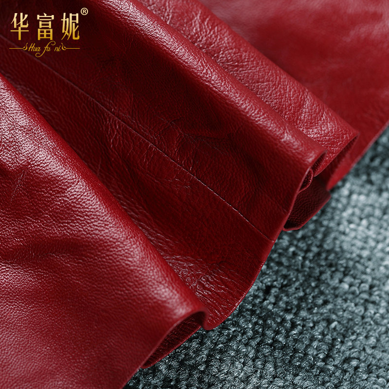 Осенняя модная бордовая мини-юбка, юбка в складку, 2019, из натуральной кожи, А-силуэт