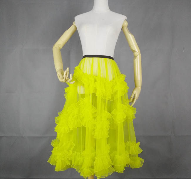 Полный мягкий лимонный лимонный лимонный желтый Юбка Super Supir Длина юбки 80 см Один слой пряжи Оболочка Линия 40 см в длину