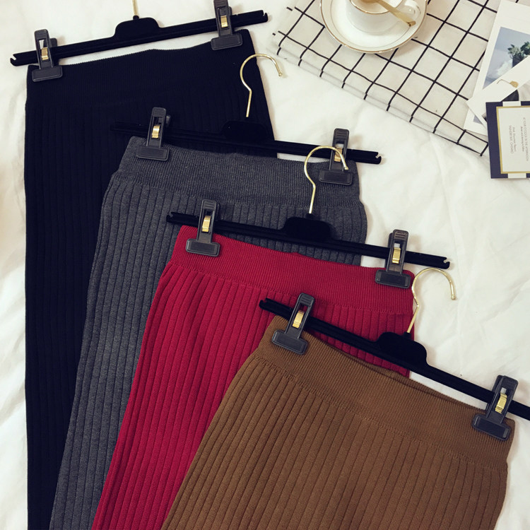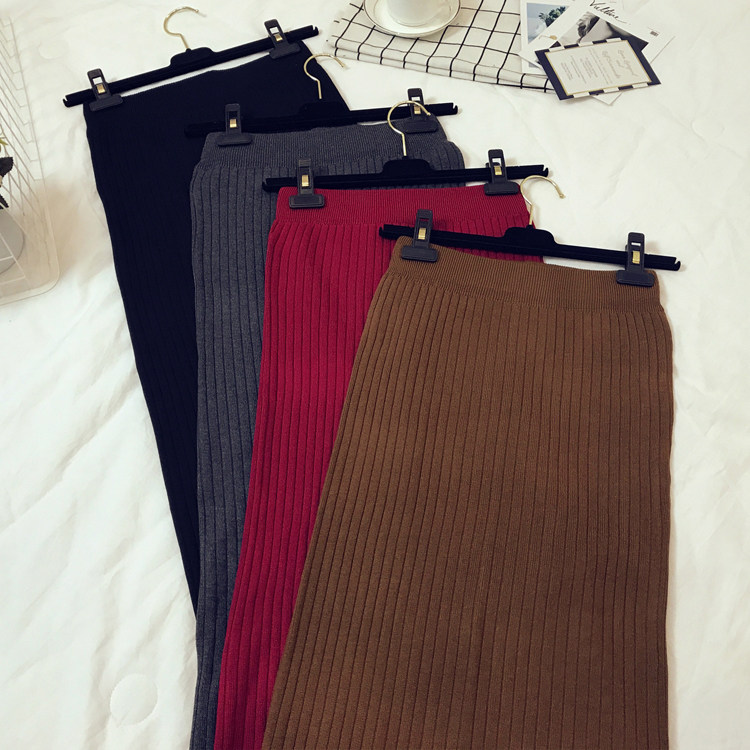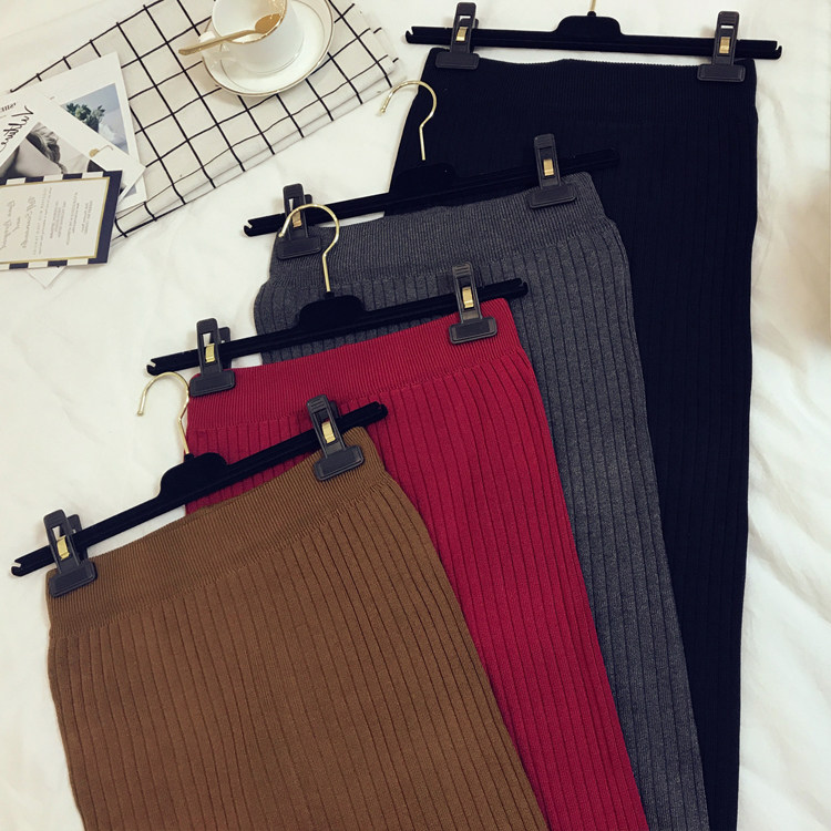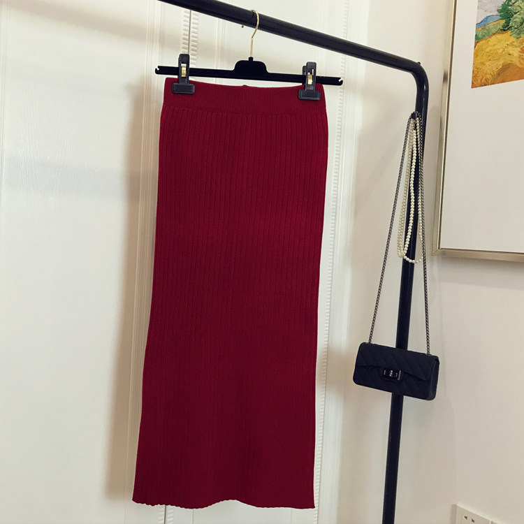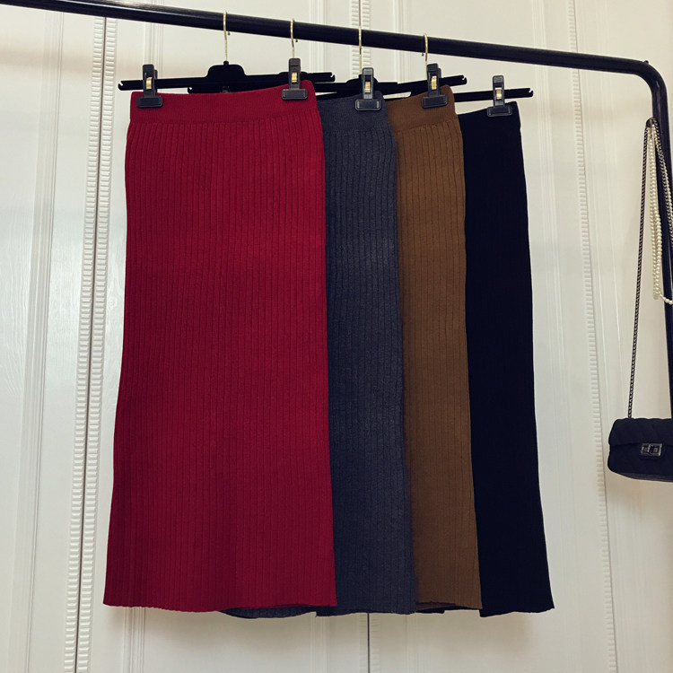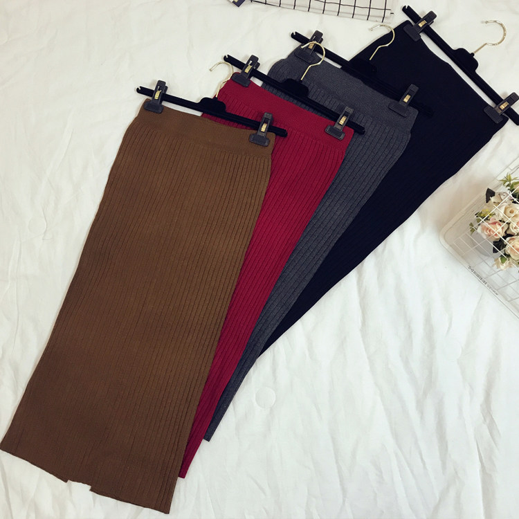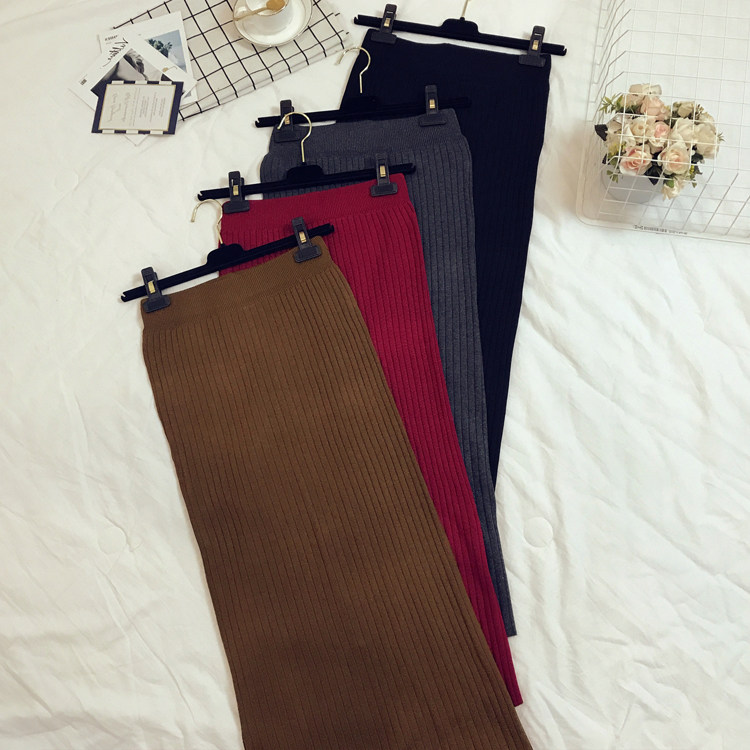 Приталенная летняя трикотажная шерстяная длинная юбка, в корейском стиле, средней длины, высокая талия