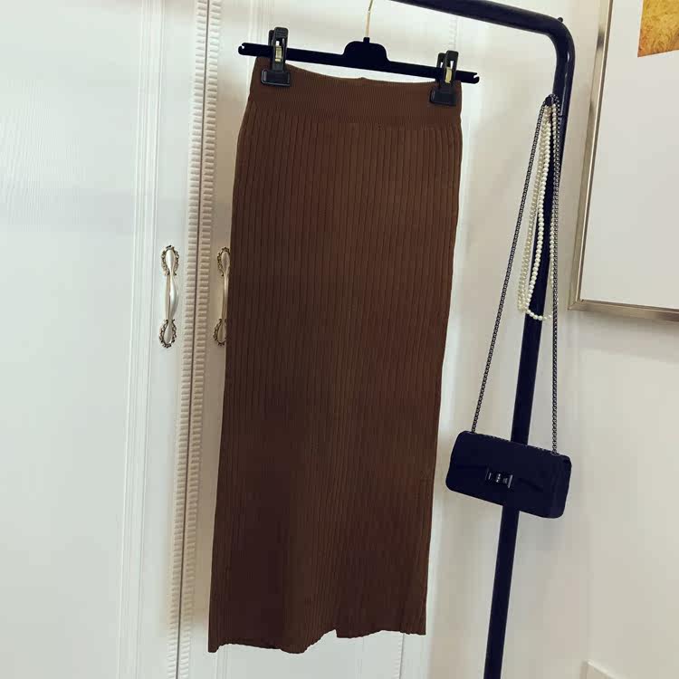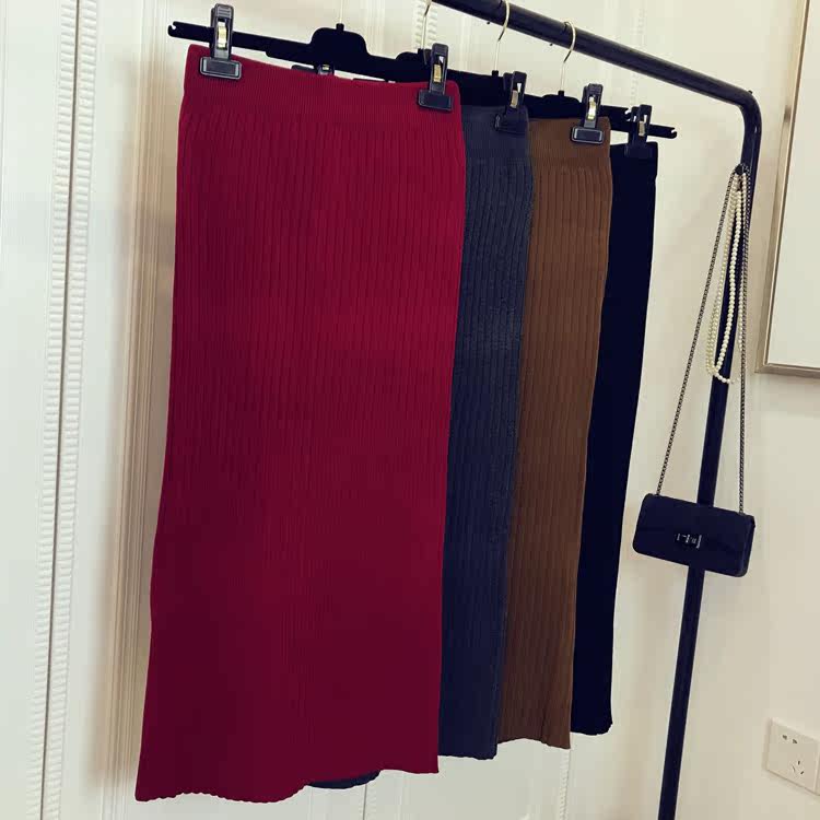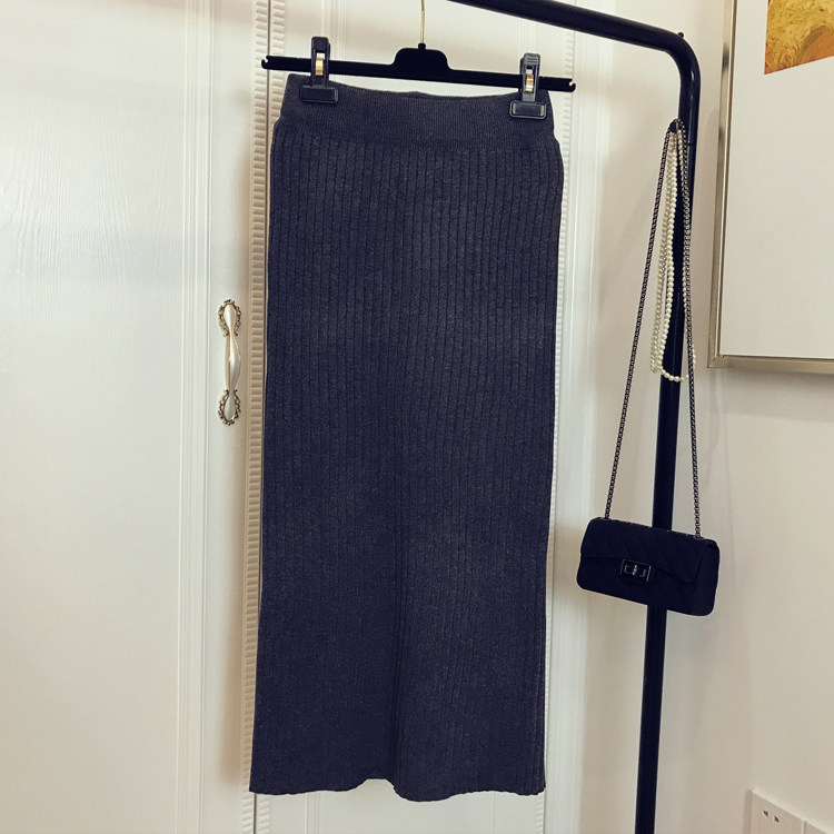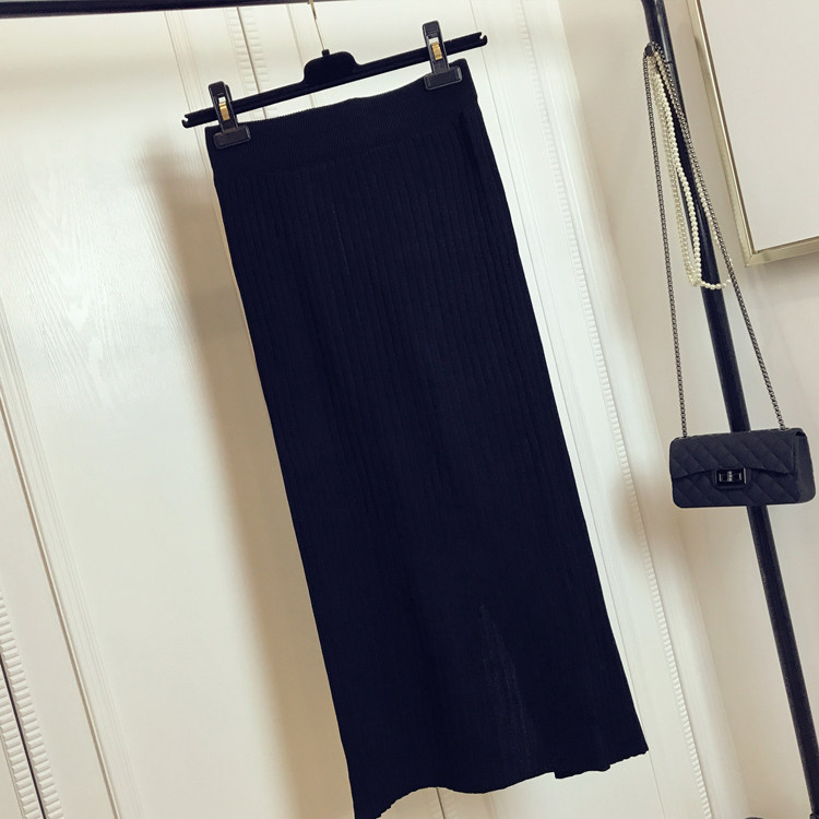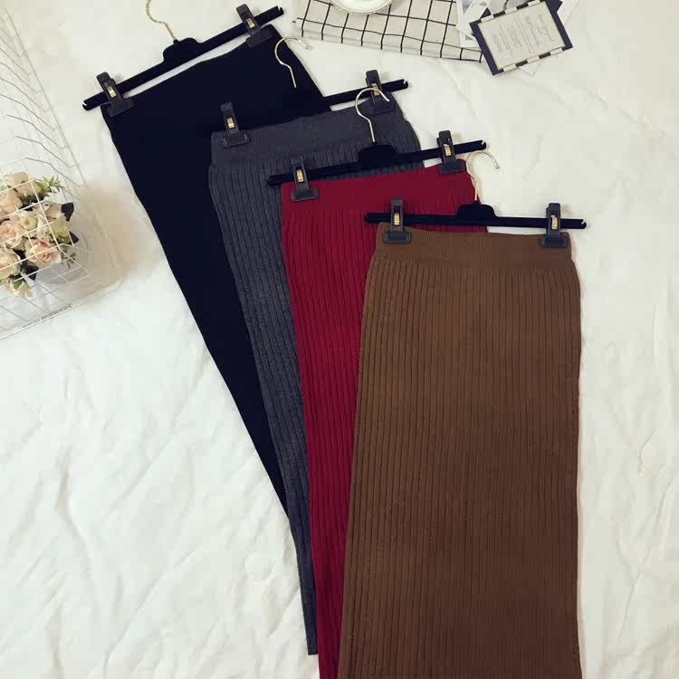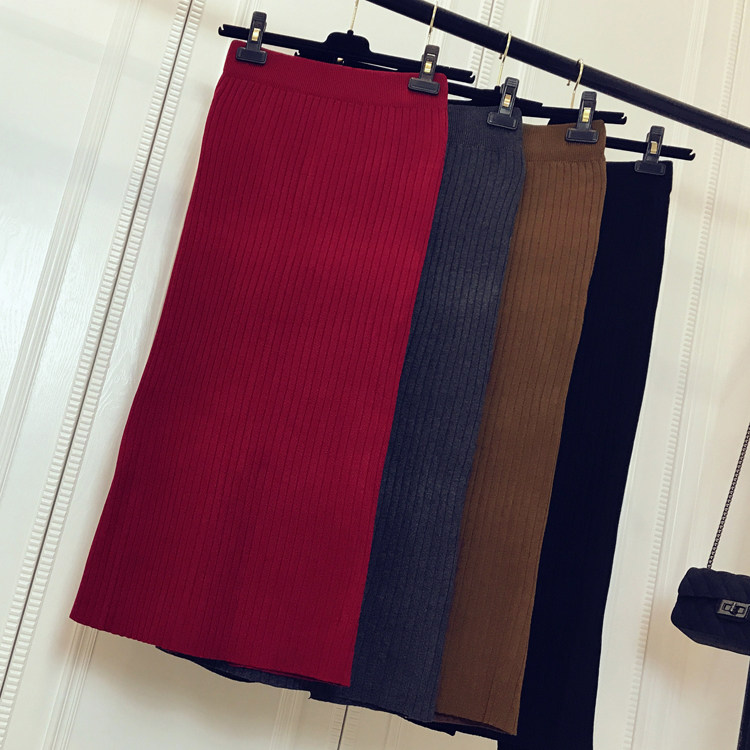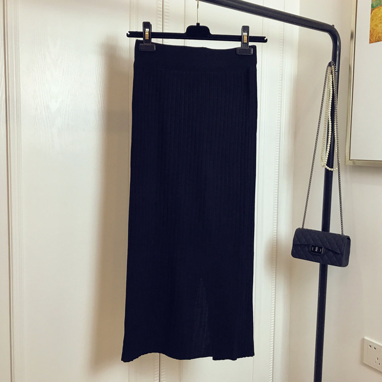 Приталенная летняя трикотажная шерстяная длинная юбка, в корейском стиле, средней длины, высокая талия