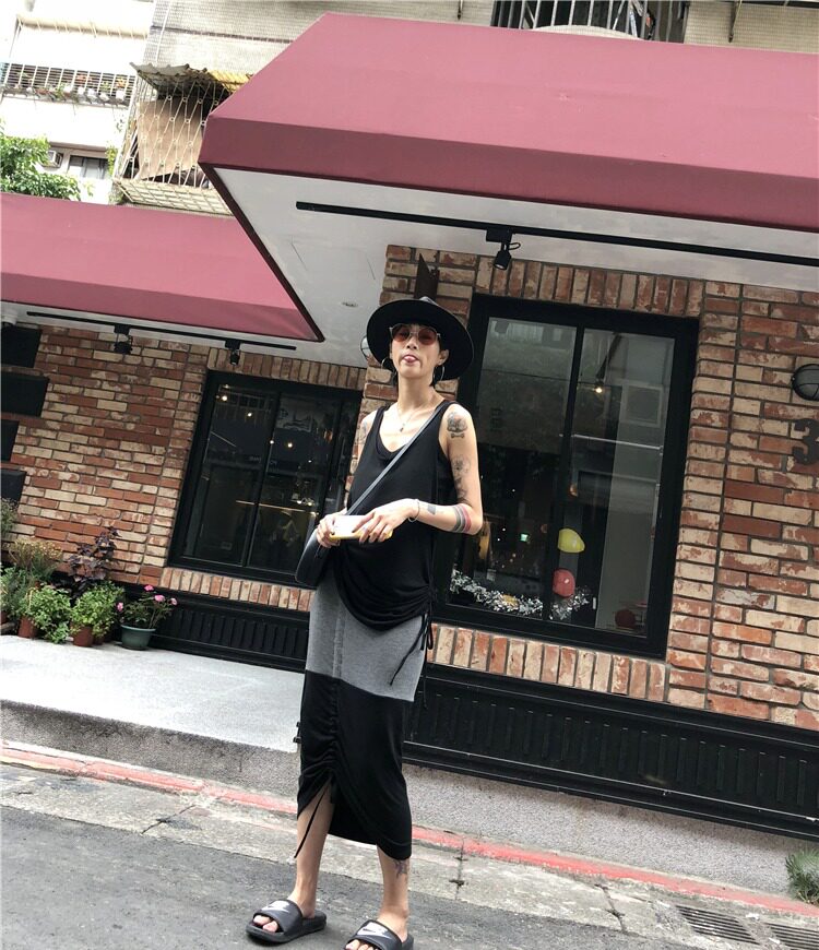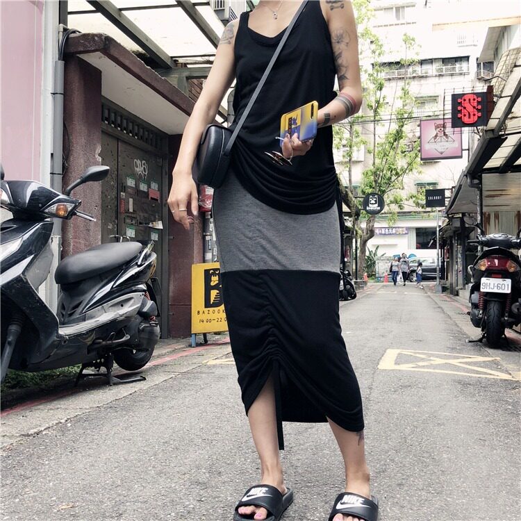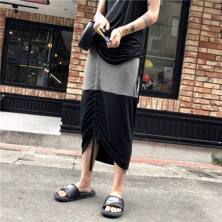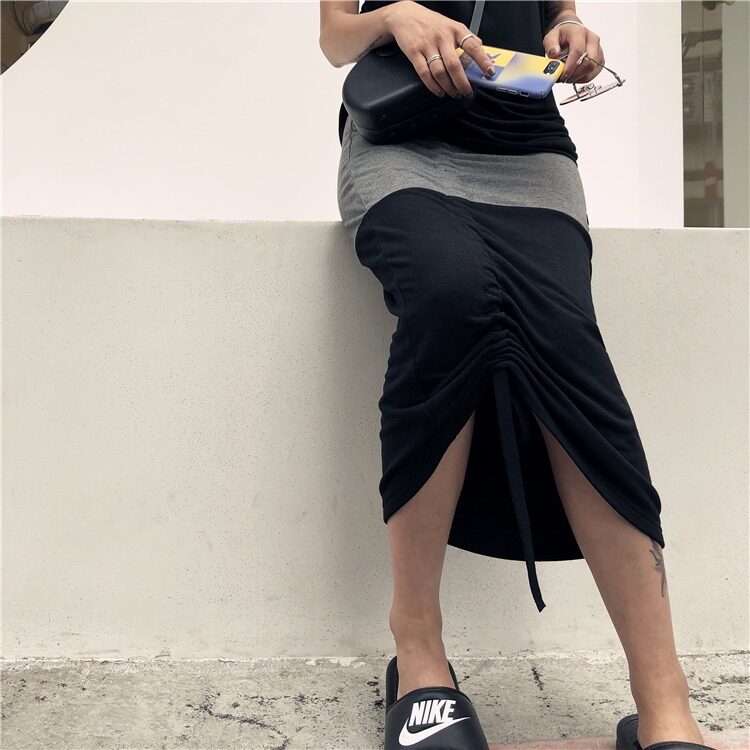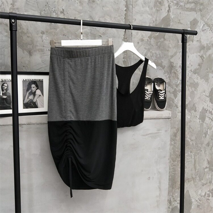 Персонализированный черно -серой цвет соответствующий боковой рисунок веревка половина -тело длинная юбка из лень кожа модерн хлопковой пакет Hip юбка