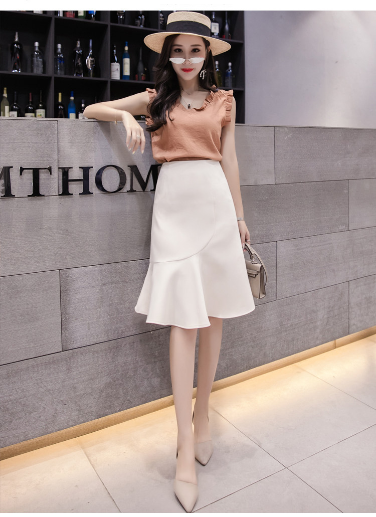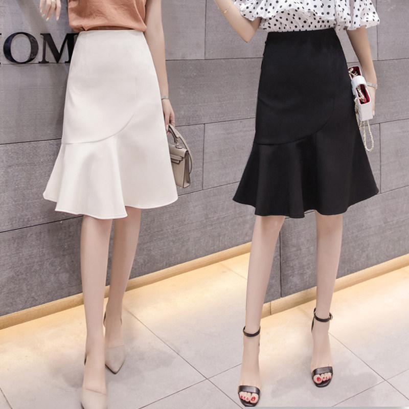 Летняя длинная белая цветная юбка, рыбий хвост, средней длины, А-силуэт, высокая талия, с акцентом на бедрах