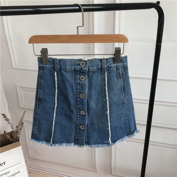 Летняя джинсовая юбка, защитная застежка, защитное белье для школьников и студентов, юбка в складку, в корейском стиле, высокая талия, А-силуэт, с акцентом на бедрах