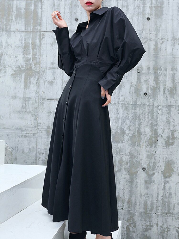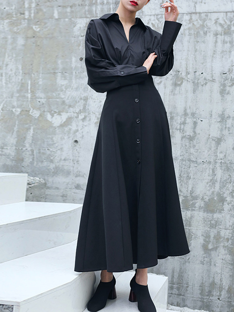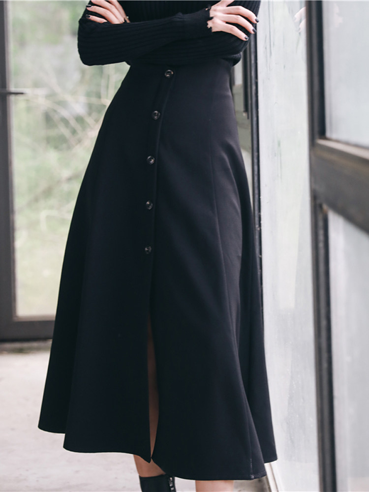 Осенняя дизайнерская черная юбка, высокая талия, тренд сезона