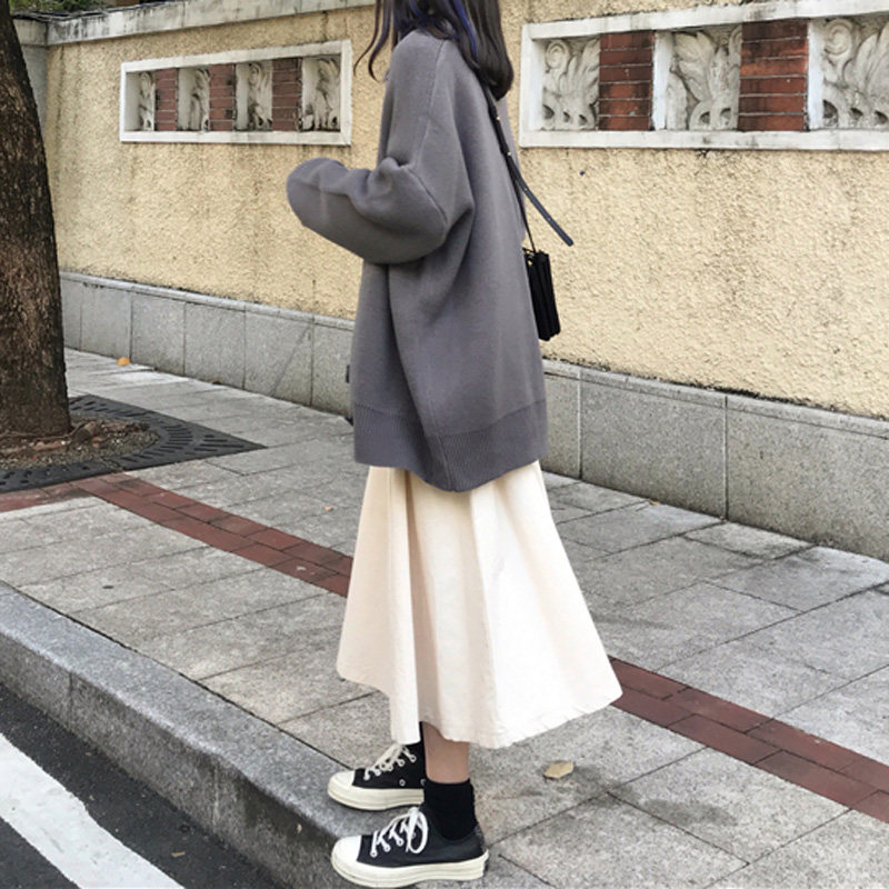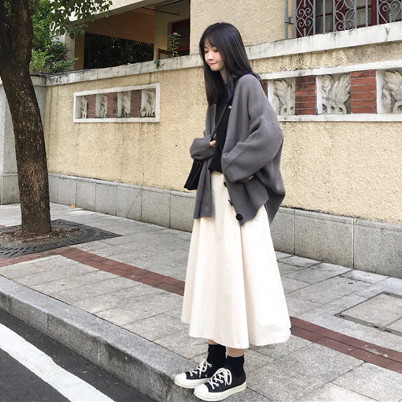 Длинная японская ретро длинная юбка, эластичная талия, средней длины, А-силуэт
