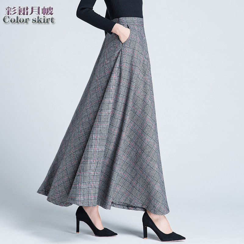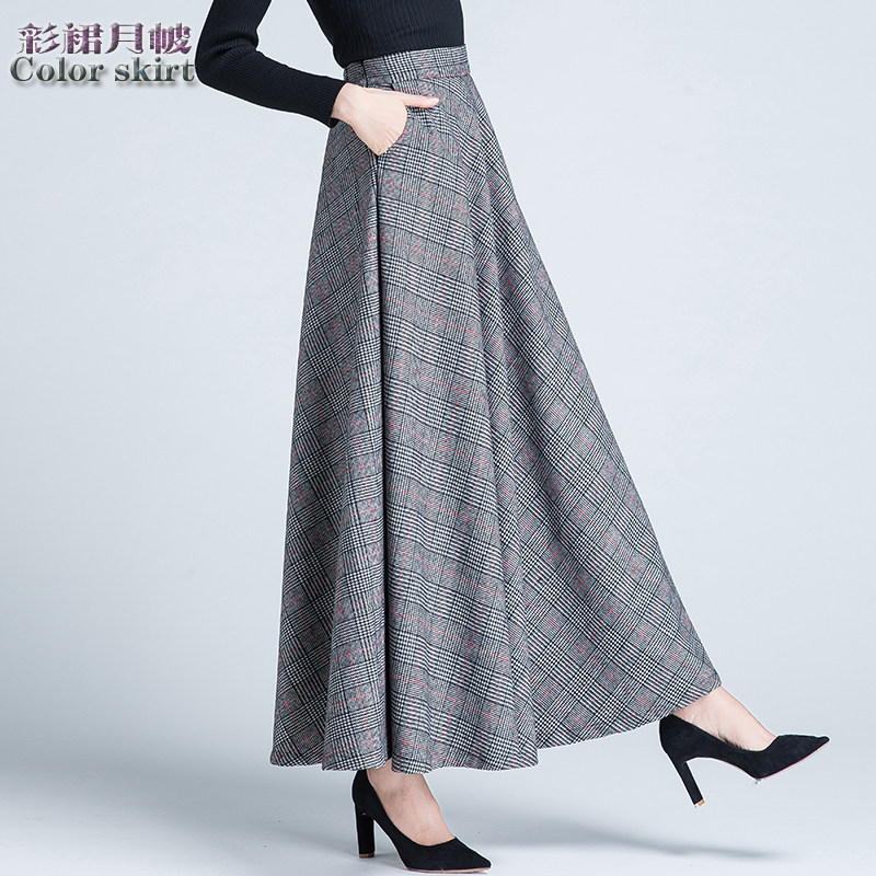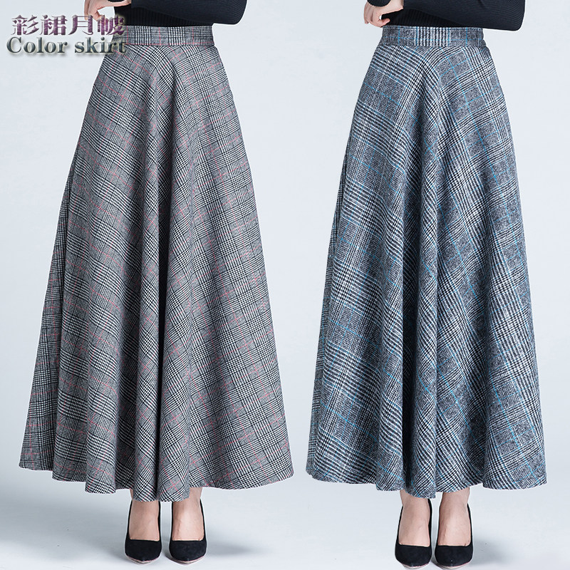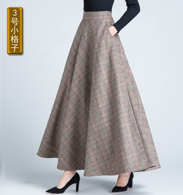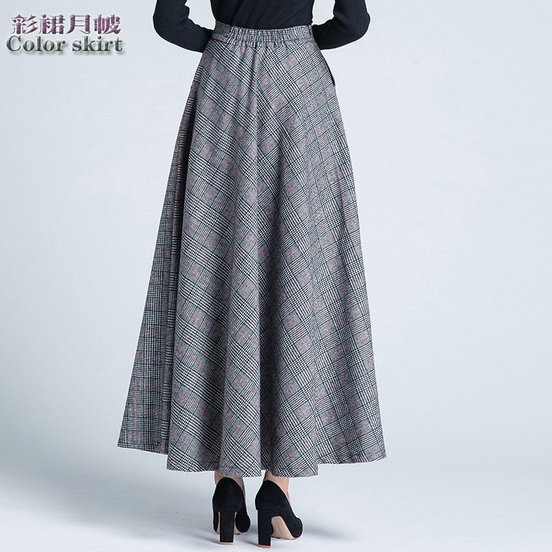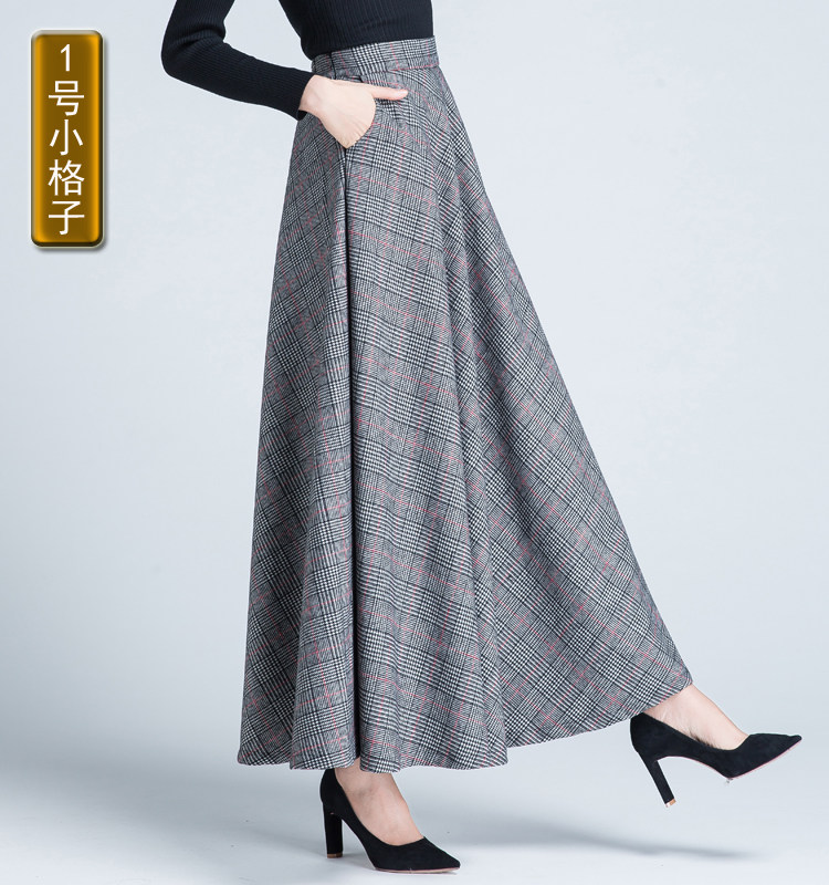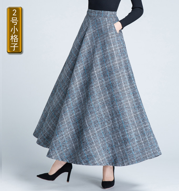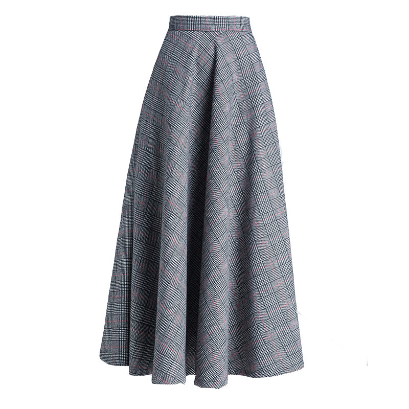 Шерстяная клетчатая демисезонная длинная юбка, в корейском стиле, А-силуэт, большой размер, средней длины