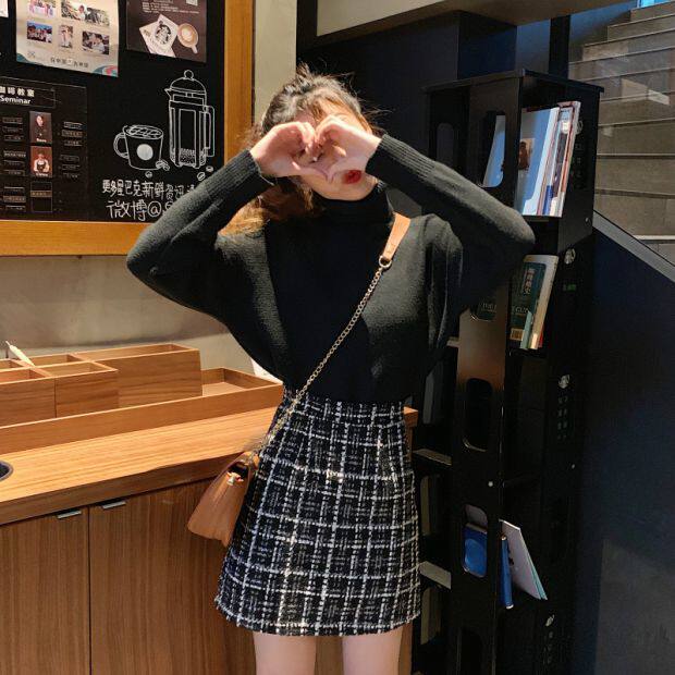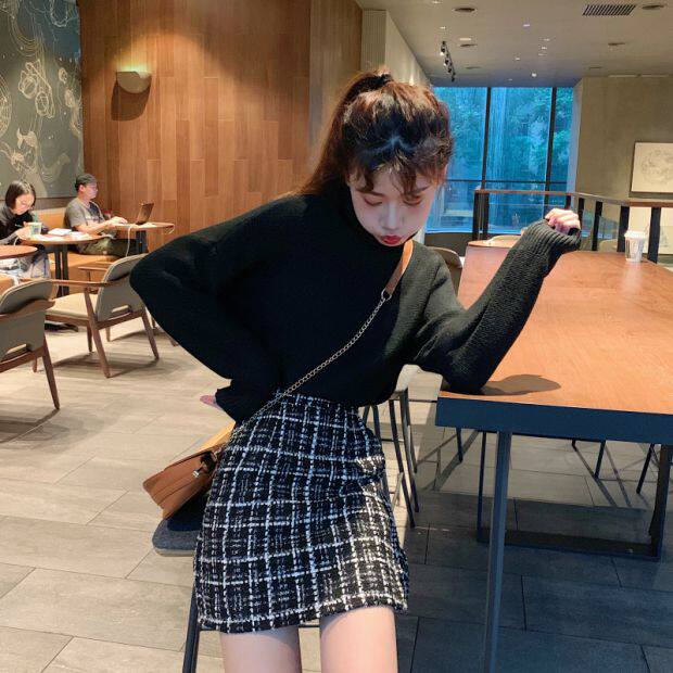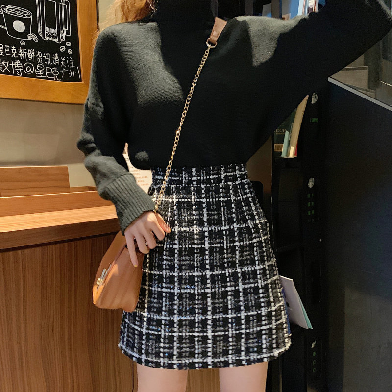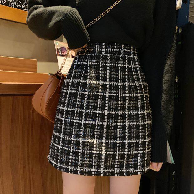 Демисезонная клетчатая юбка, шерстяная мини-юбка, большой размер, высокая талия