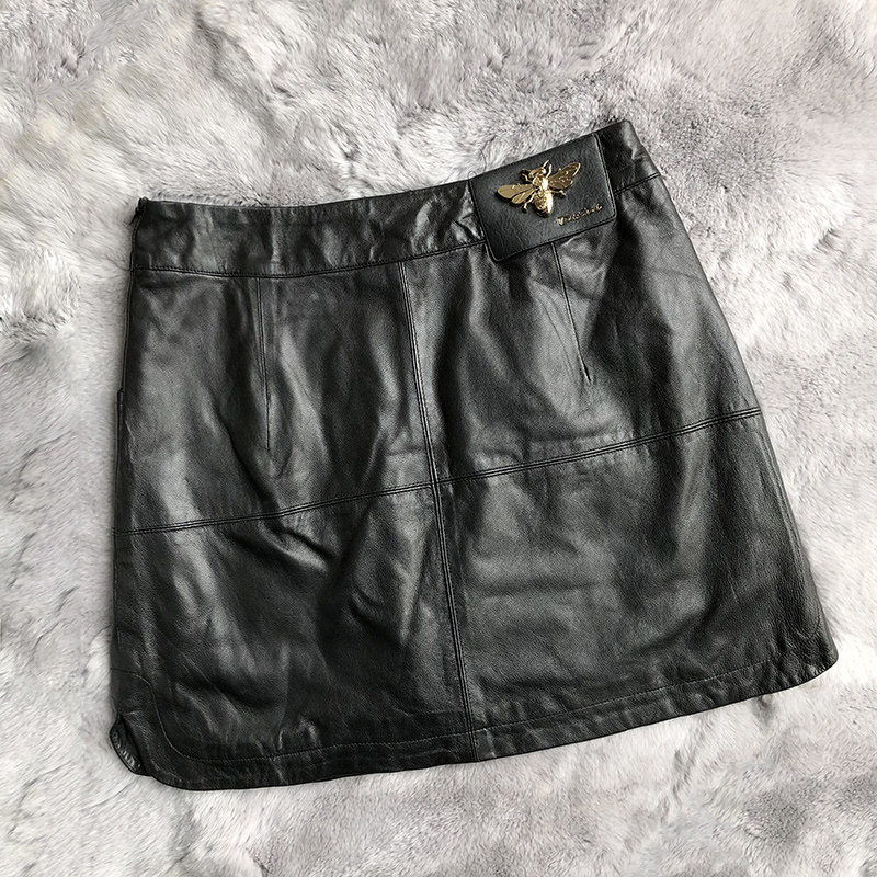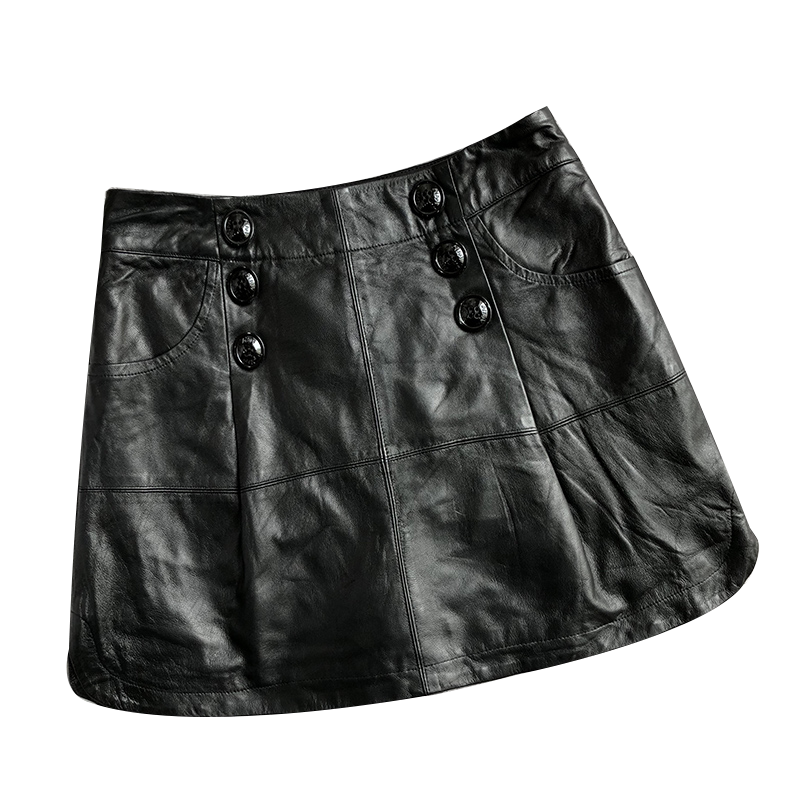 Юбка, демисезонная короткая мини-юбка, 2019, высокая талия, А-силуэт, из натуральной кожи, с акцентом на бедрах