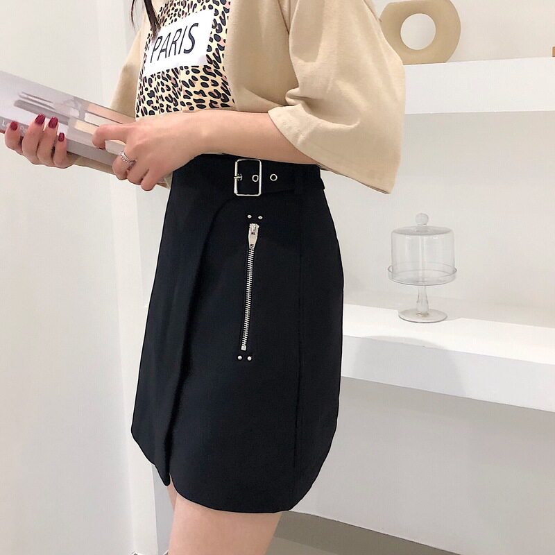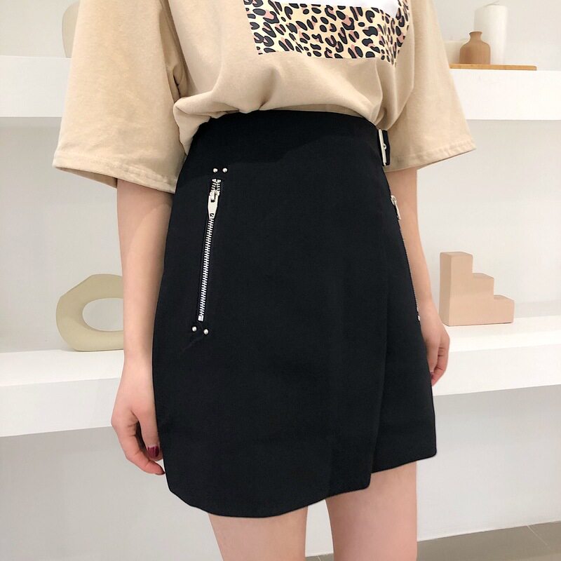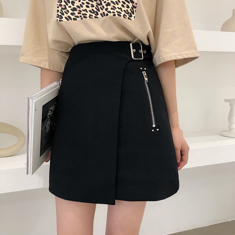 Летняя черная юбка, высокая талия, большой размер, в корейском стиле, А-силуэт