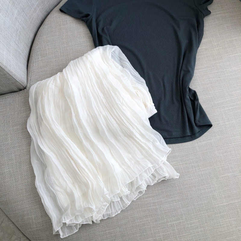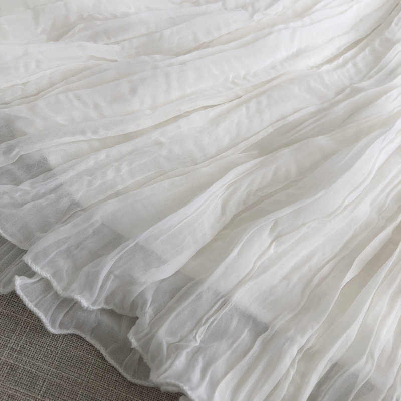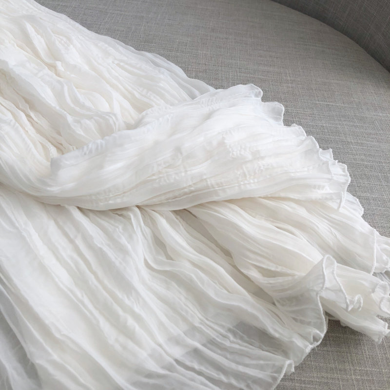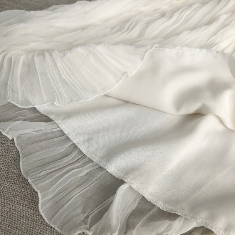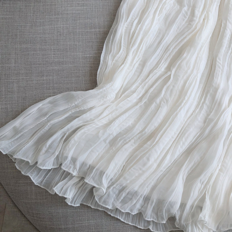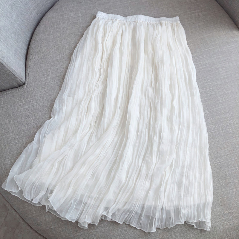 Шелковая оригинальная летняя шифоновая длинная белая юбка в складку, средней длины, А-силуэт