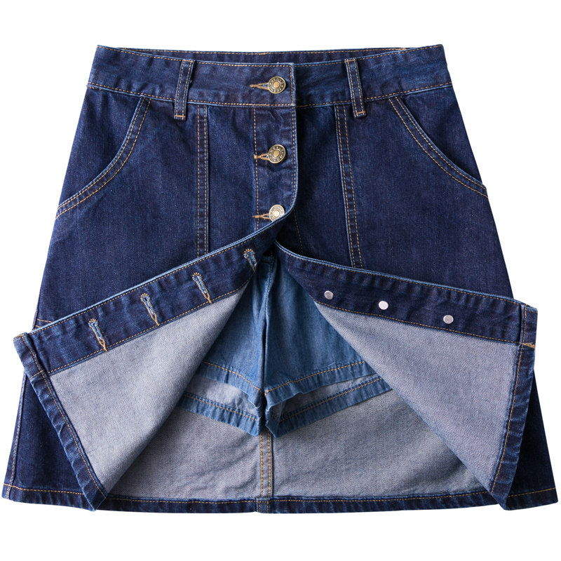 Летняя универсальная джинсовая юбка, защитная застежка, защитное белье, в корейском стиле, высокая талия, по фигуре