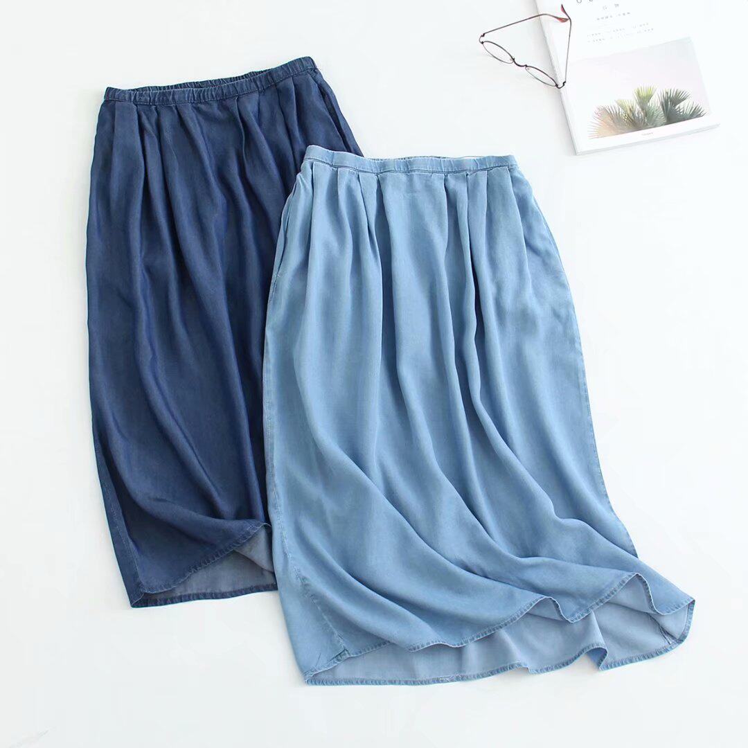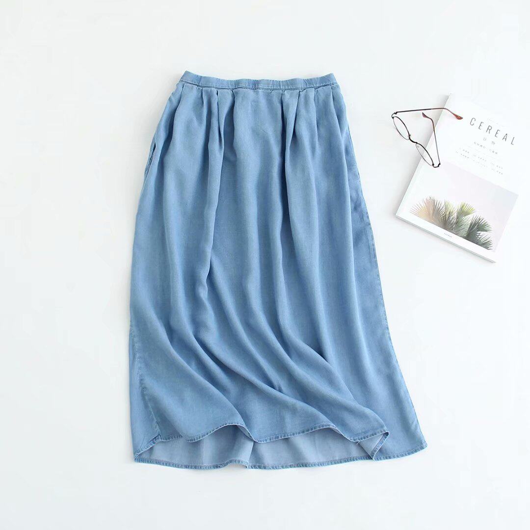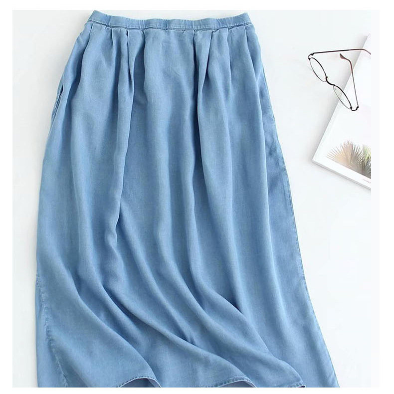 Летняя шелковая джинсовая тонкая джинсовая юбка, эластичная талия, высокая талия, А-силуэт