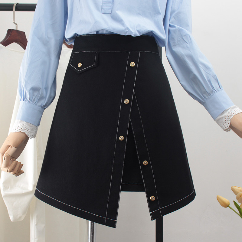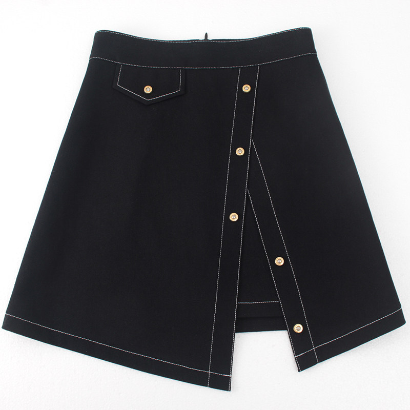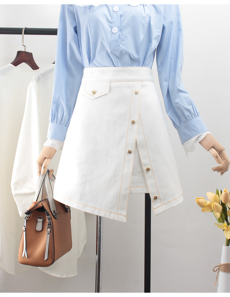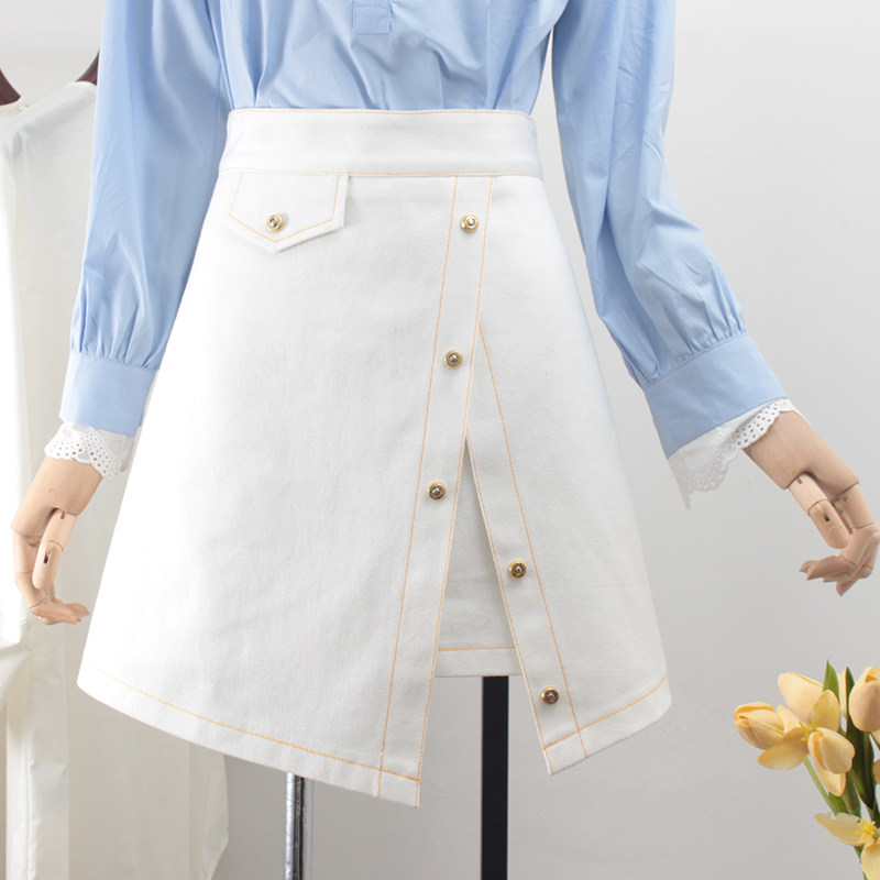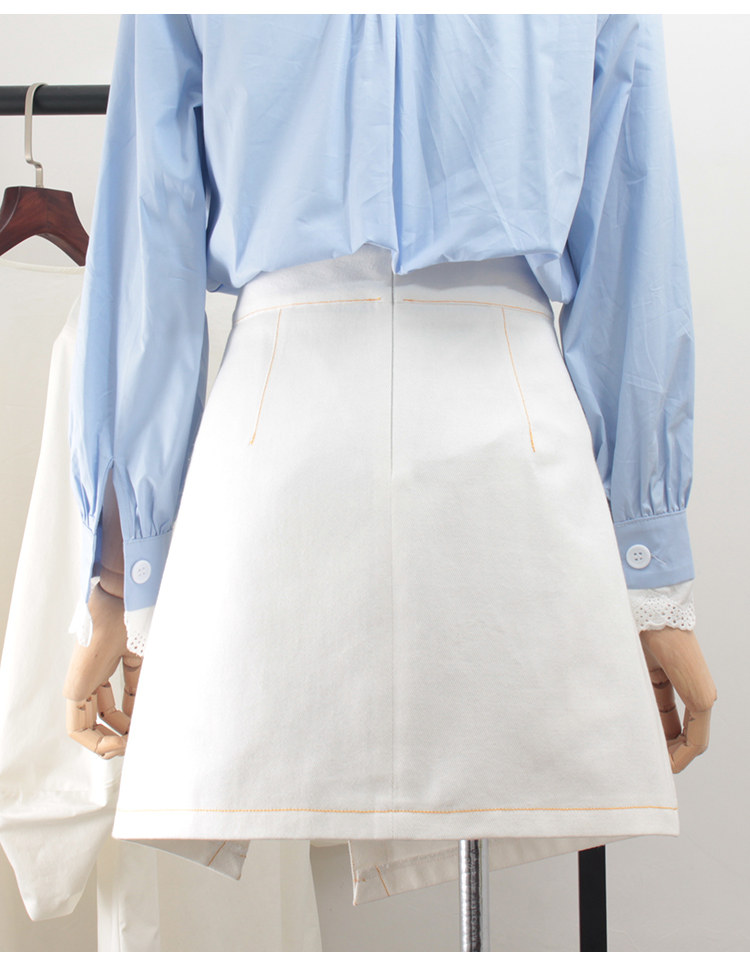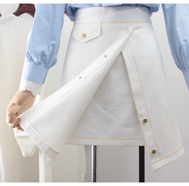 Черная приталенная белая летняя джинсовая юбка, высокая талия