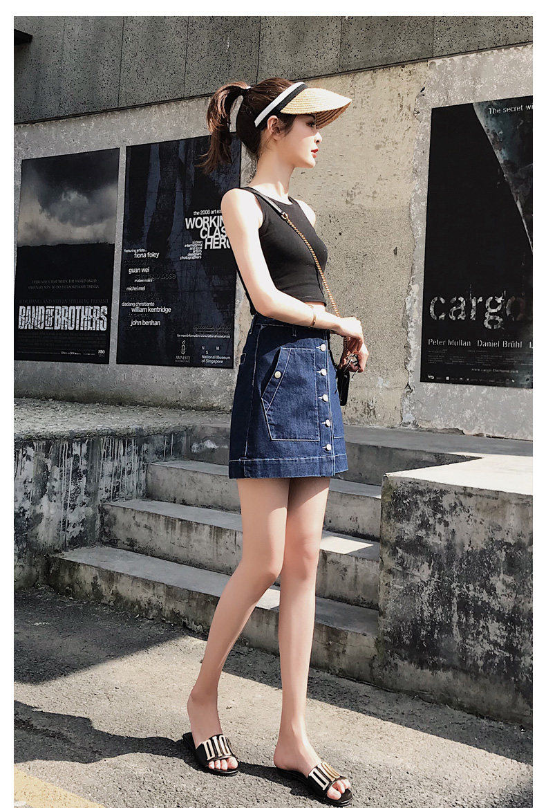 Летняя джинсовая юбка, ретро мини-юбка, с акцентом на бедрах, А-силуэт