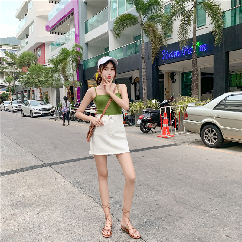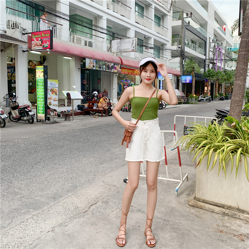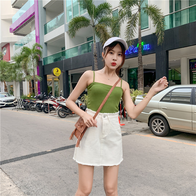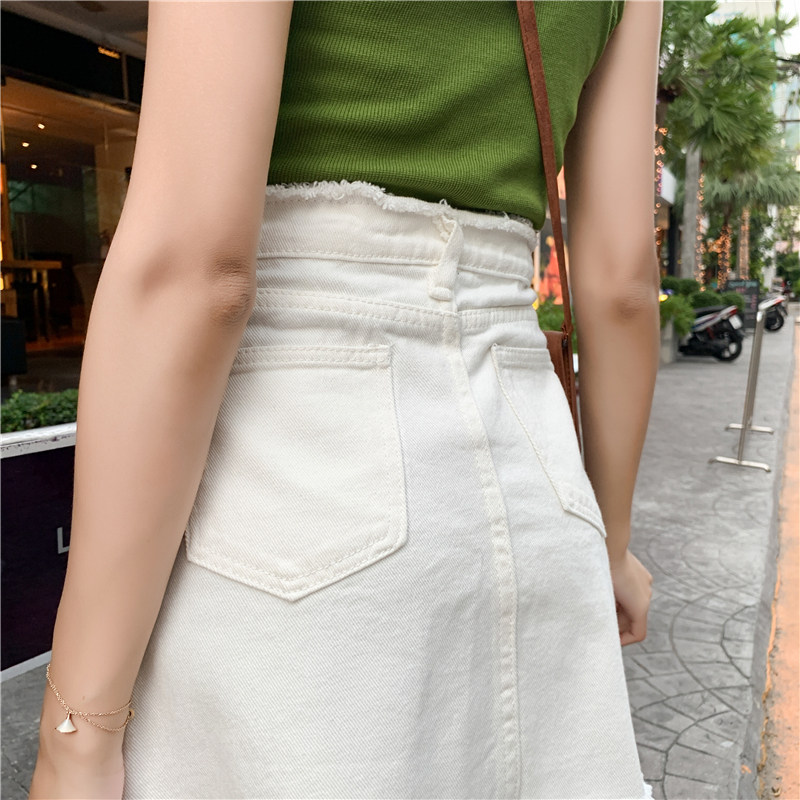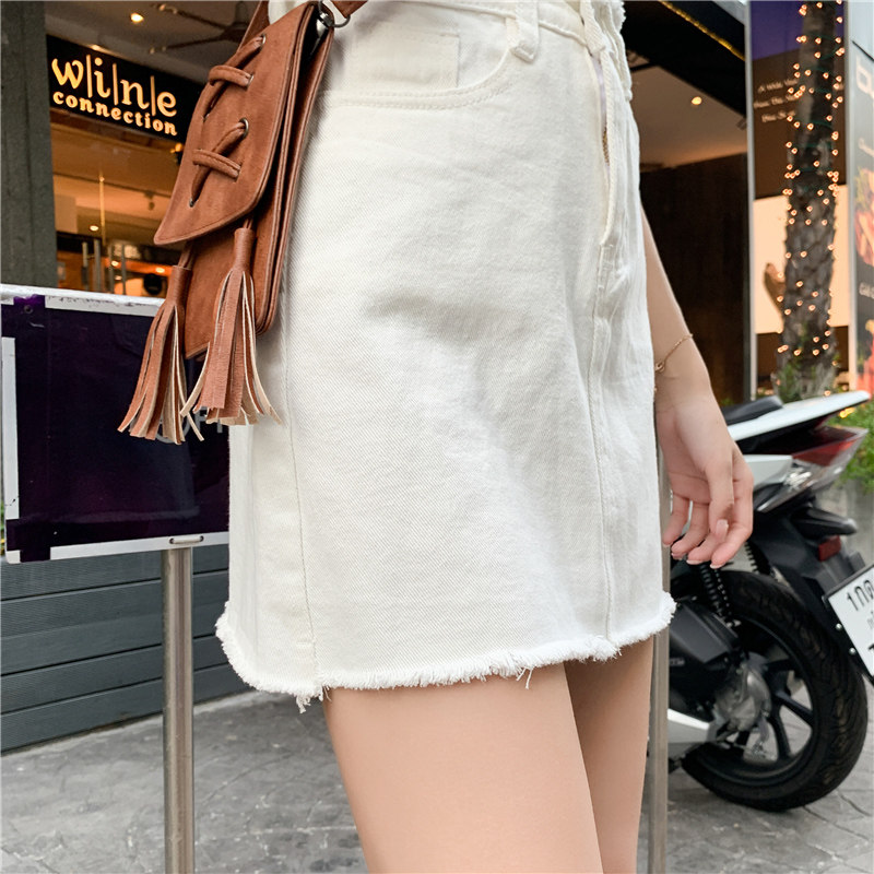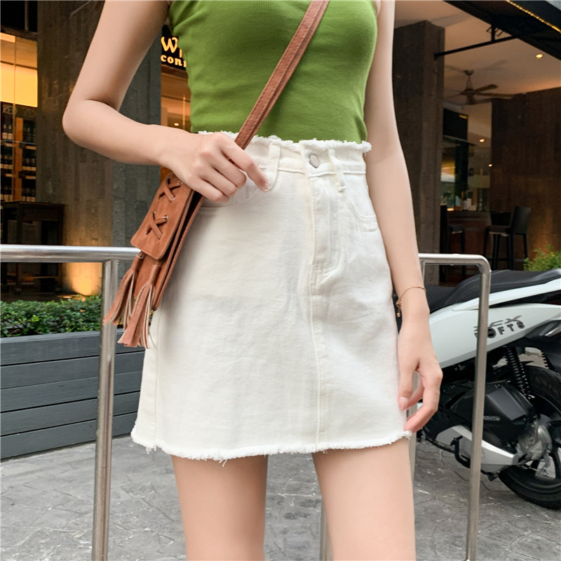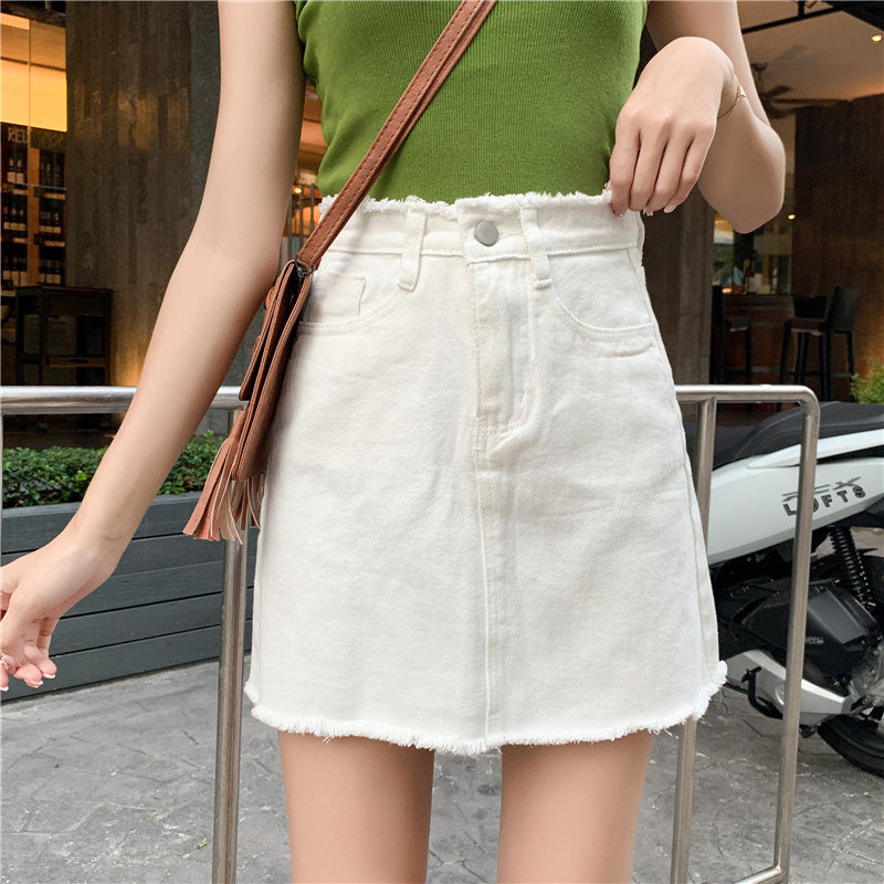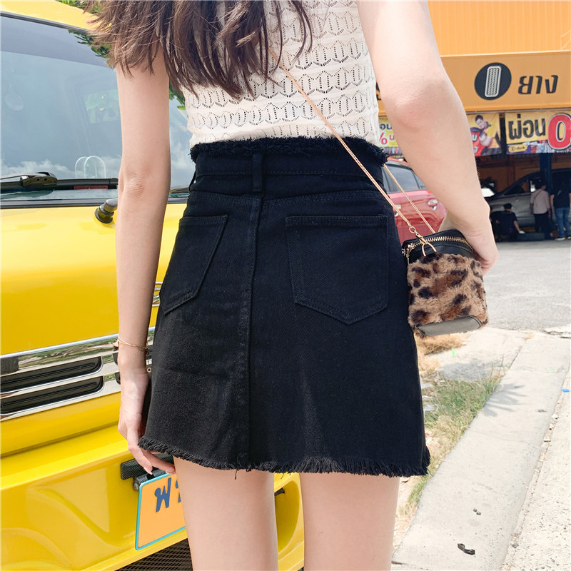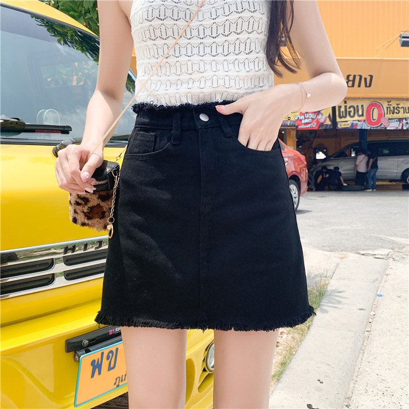 Летняя джинсовая юбка, мини-юбка, высокая талия, в корейском стиле, большой размер