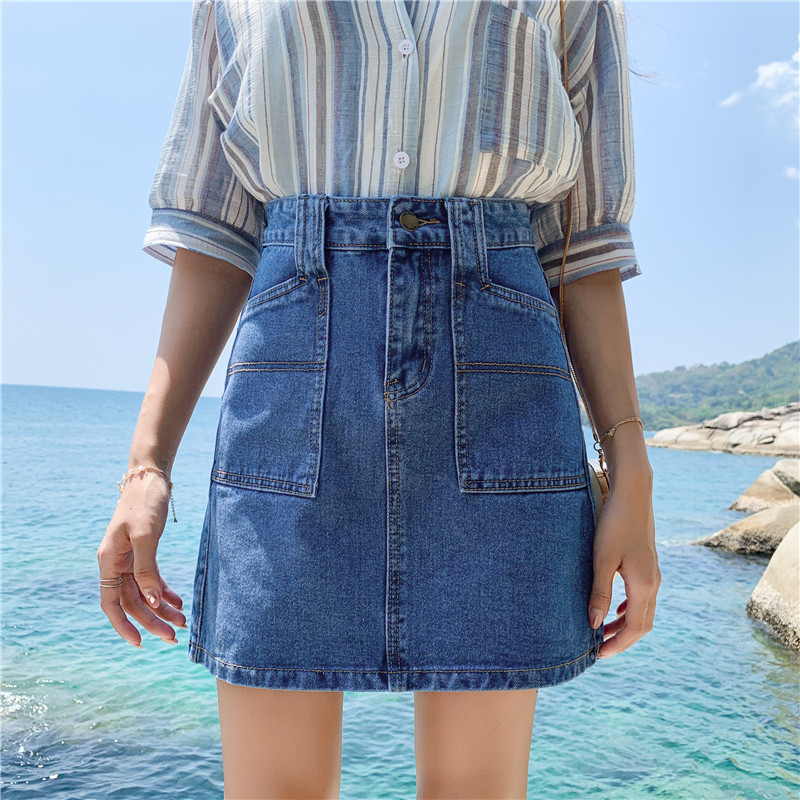 Джинсовая юбка для школьников и студентов, 2020, в корейском стиле, большой размер, высокая талия, с акцентом на бедрах