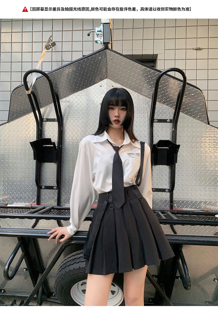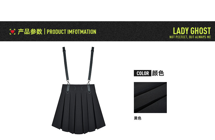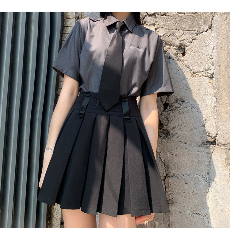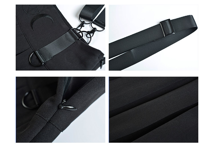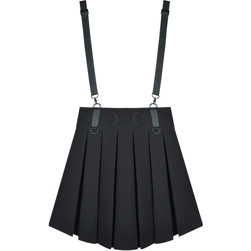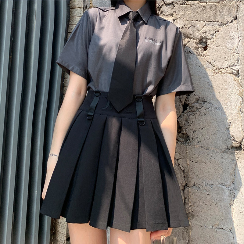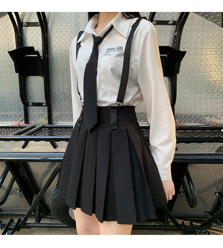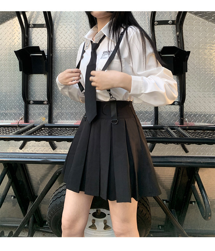 Призрачные черные подтяжки, юбка в складку, платье, летняя одежда, высокая талия, в стиле панк