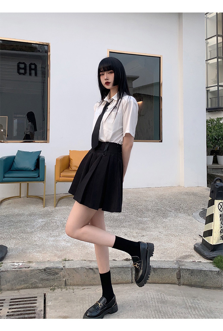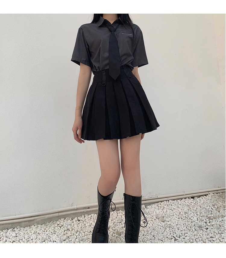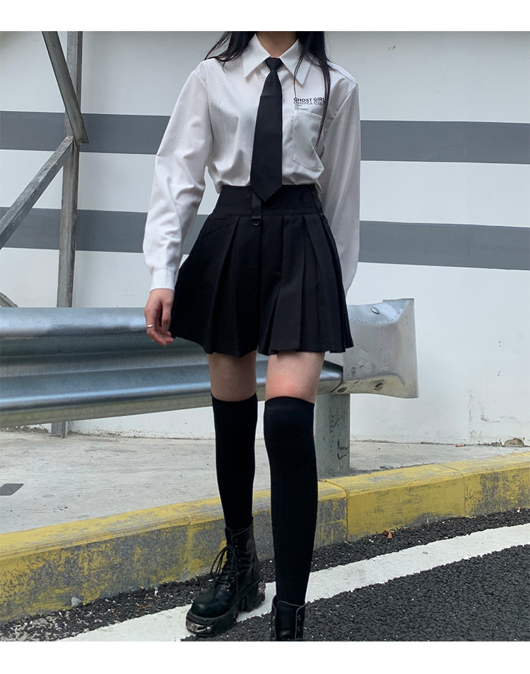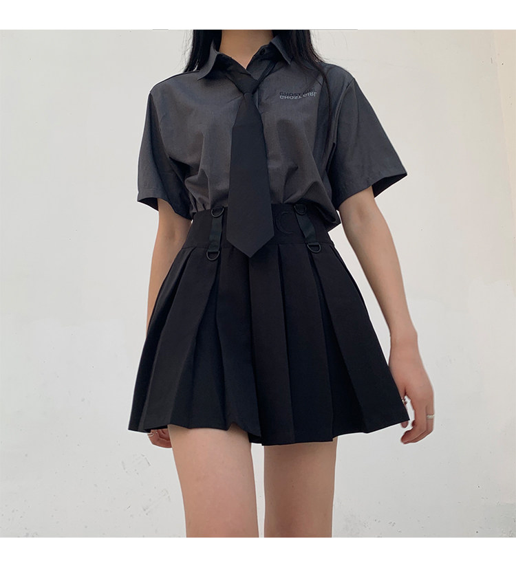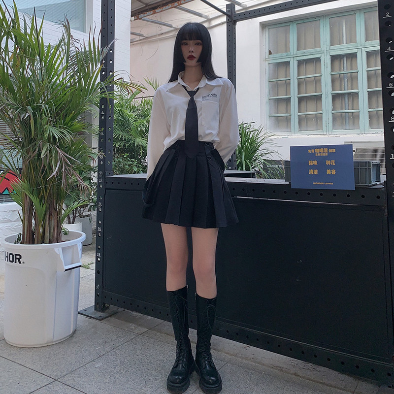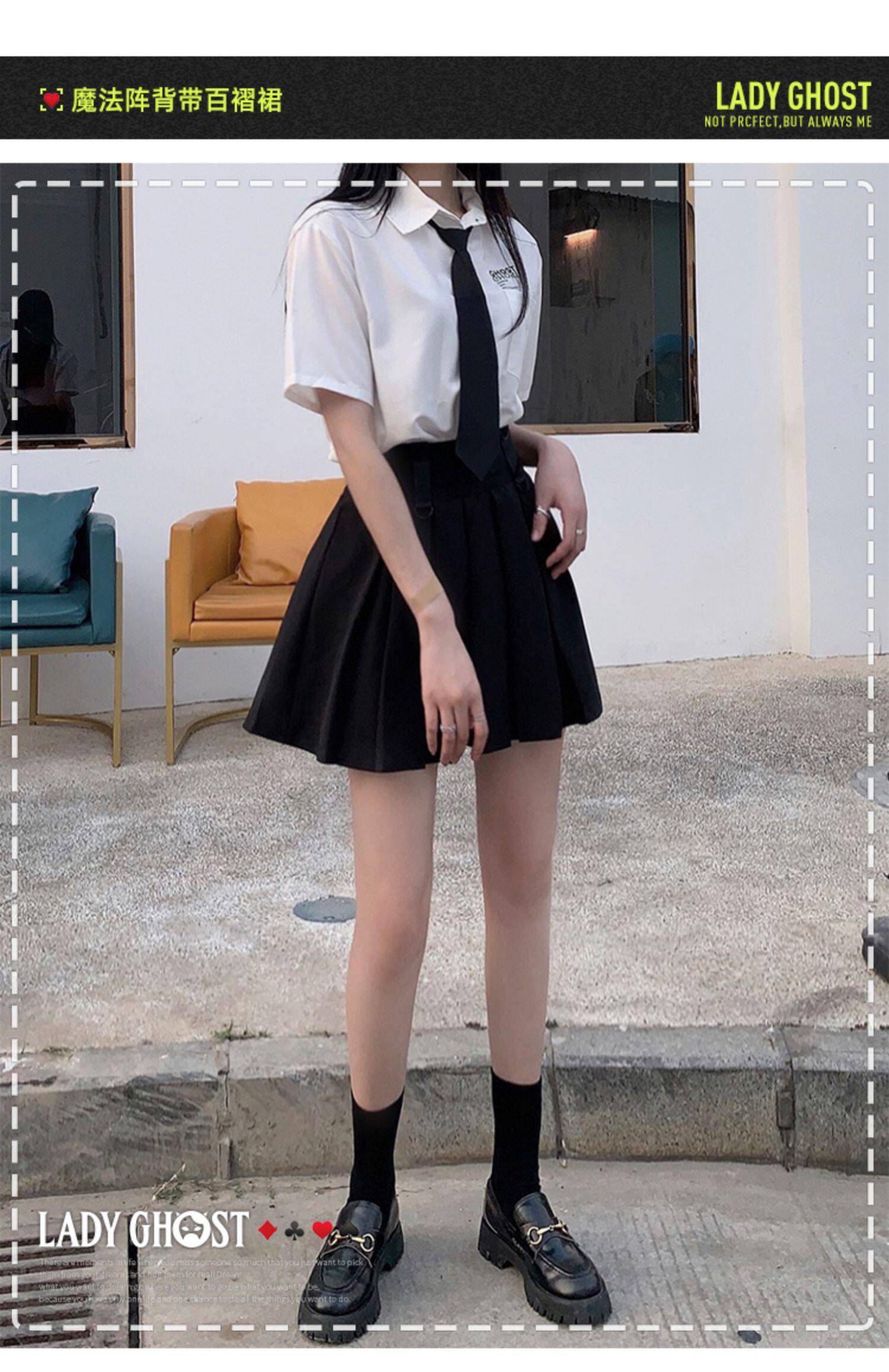 Призрачные черные подтяжки, юбка в складку, платье, летняя одежда, высокая талия, в стиле панк