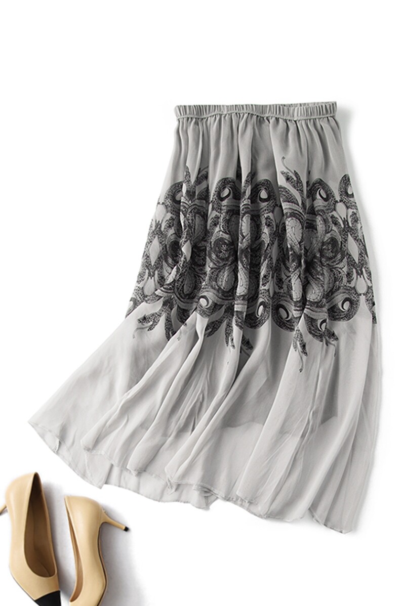 Ретро элегантная шелковая длинная юбка, 21 года, средней длины