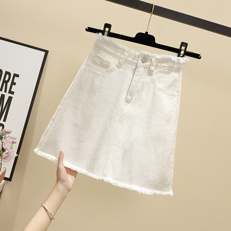 Брендовая белая мини-юбка, джинсовая юбка, большой размер, высокая талия