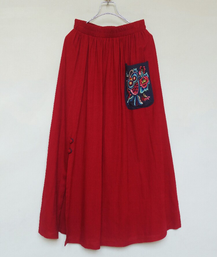 Ретро юбка, из хлопка и льна, эластичная талия, облегающий крой