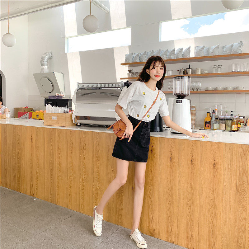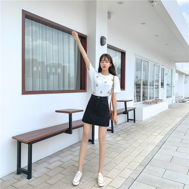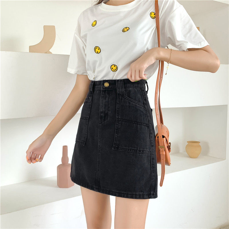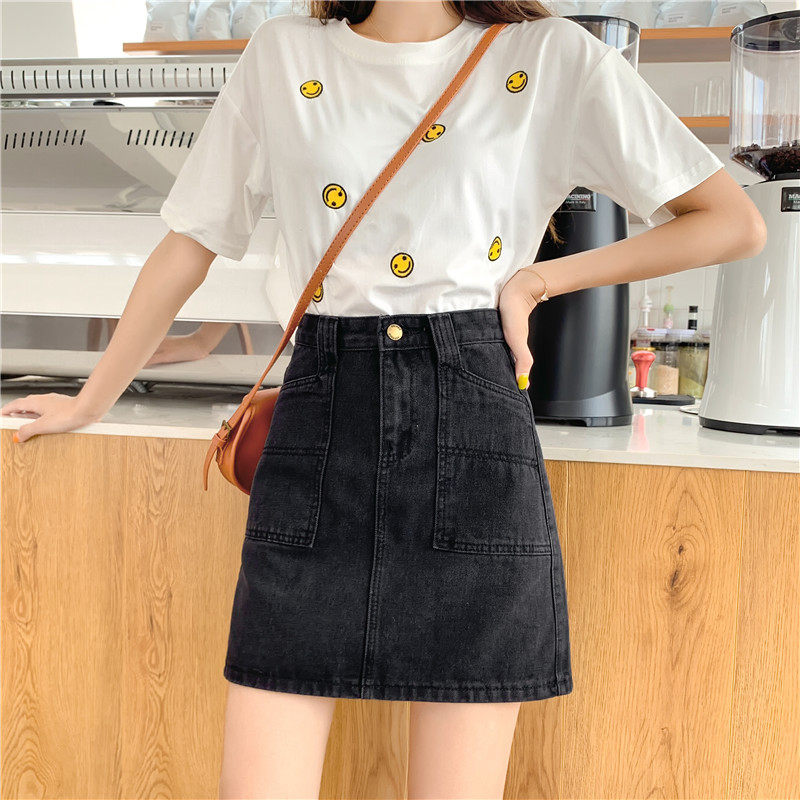 Брендовая летняя джинсовая юбка, большой размер, высокая талия, А-силуэт, с акцентом на бедрах