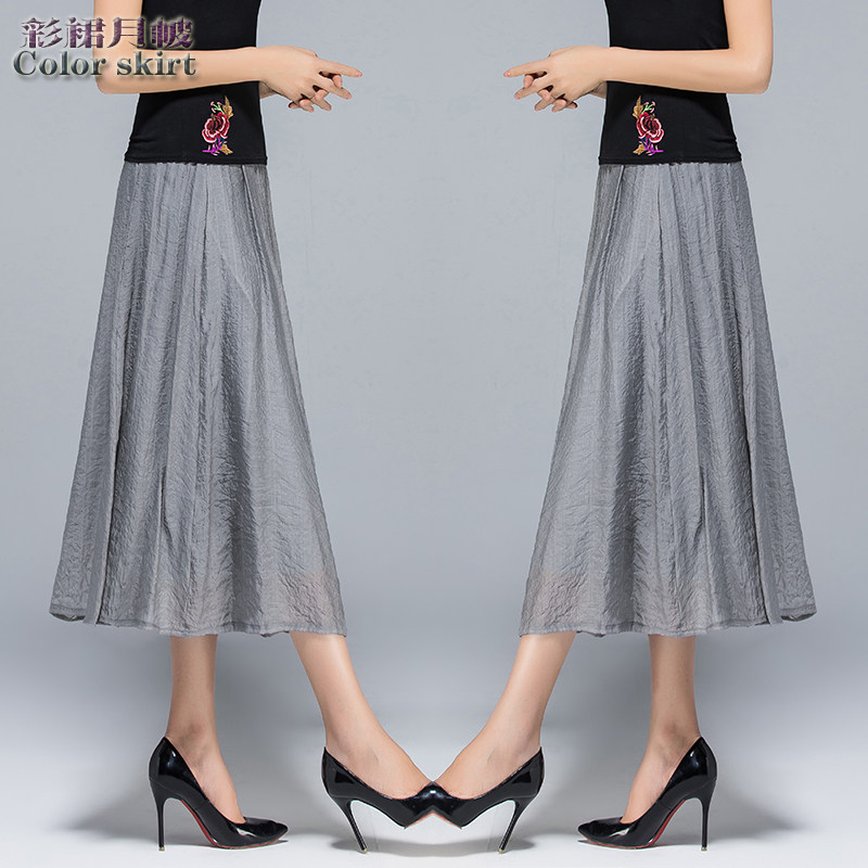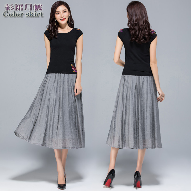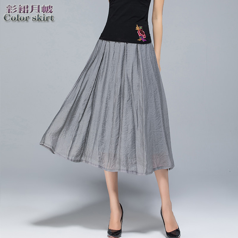 Модная летняя ретро длинная юбка, из хлопка и льна, эластичная талия, средней длины