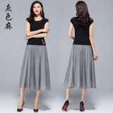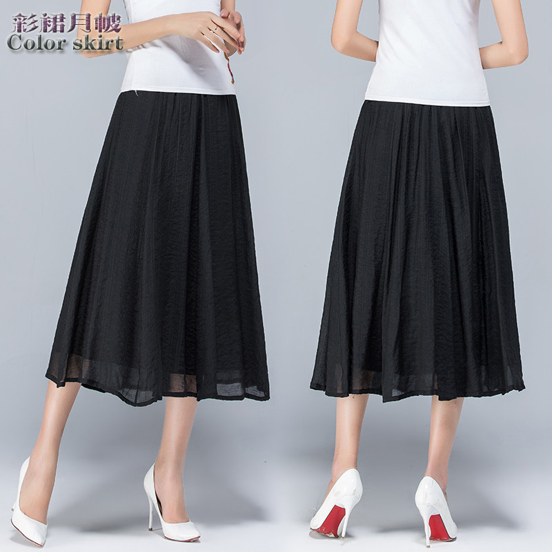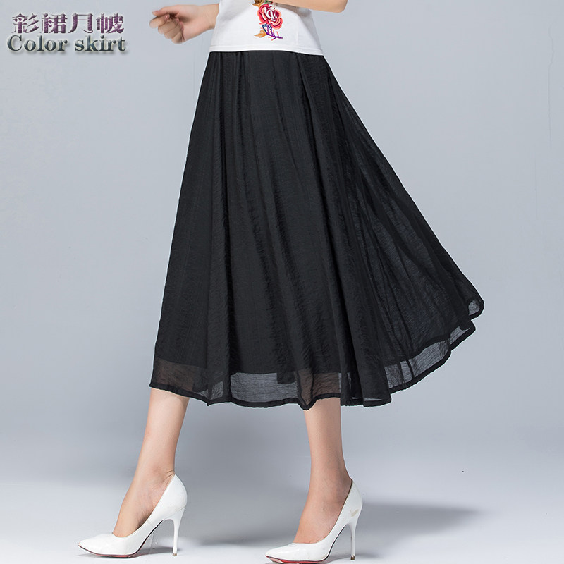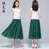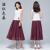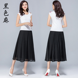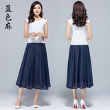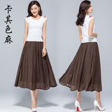 Летняя тонкая длинная длинная юбка, из хлопка и льна, эластичная талия