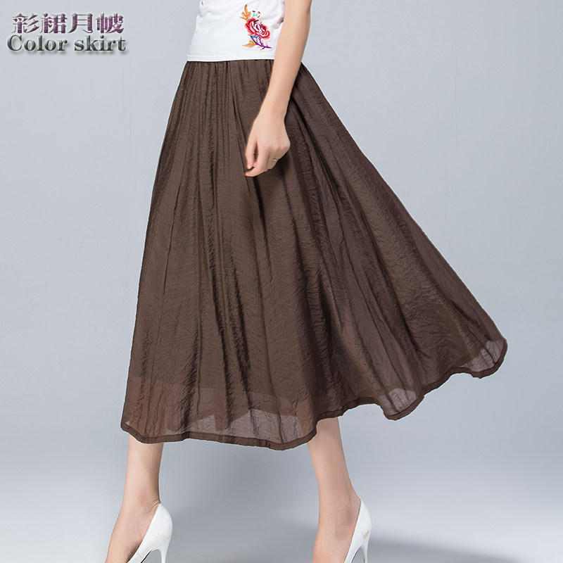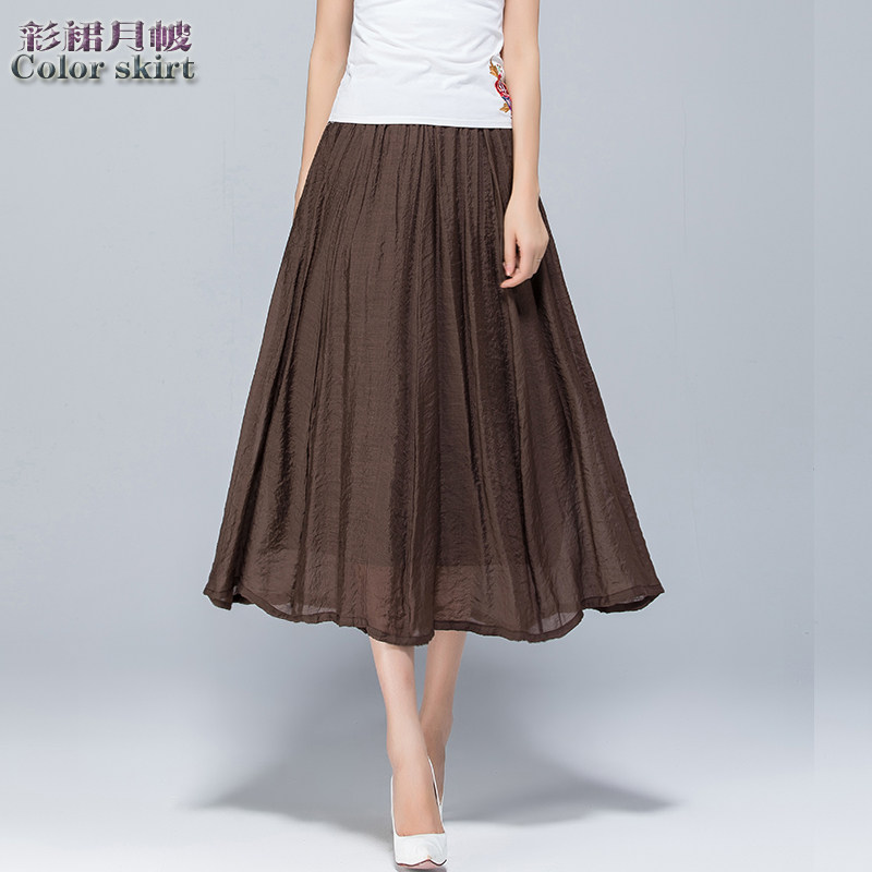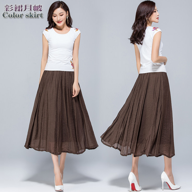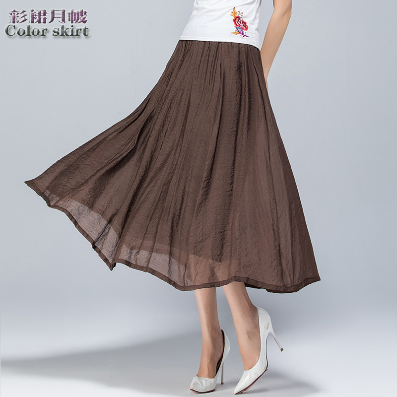 Летняя длинная тонкая юбка в складку, 2025 года, в корейском стиле, средней длины, из хлопка и льна, большой размер