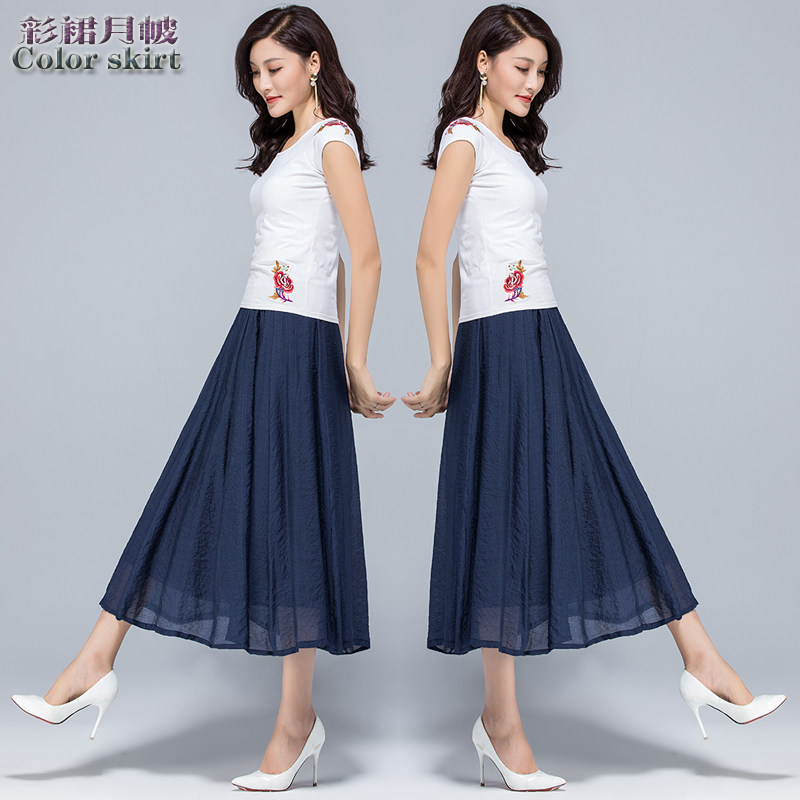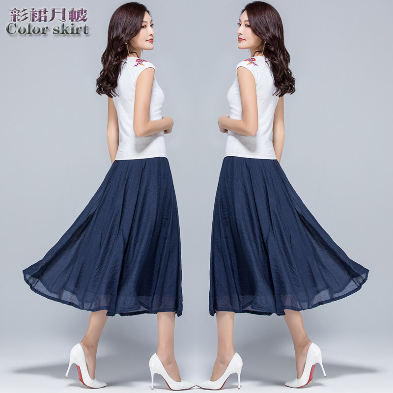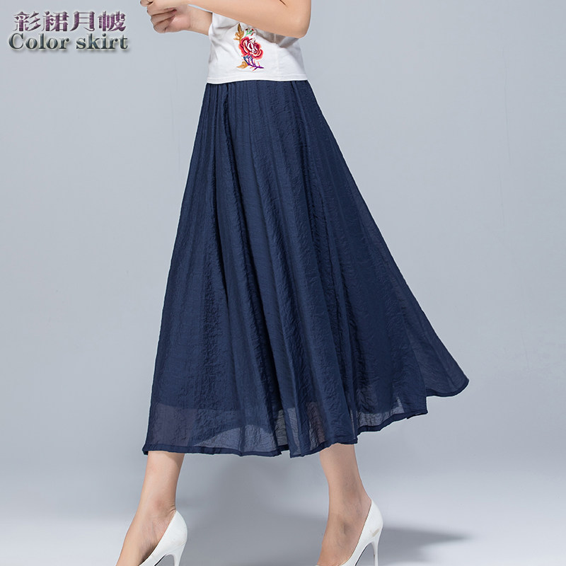 Летняя ретро тонкая приталенная длинная юбка, из хлопка и льна, высокая талия, большой размер
