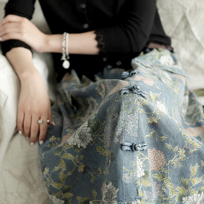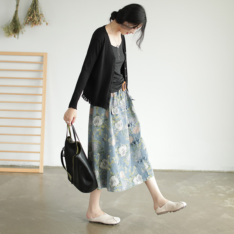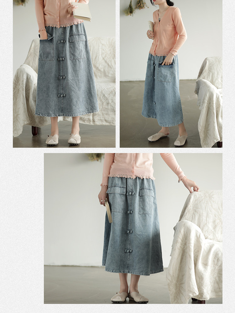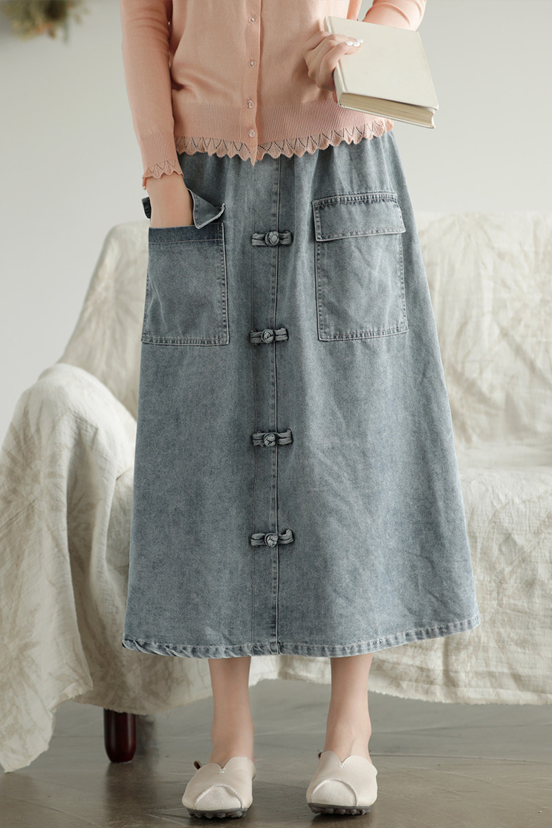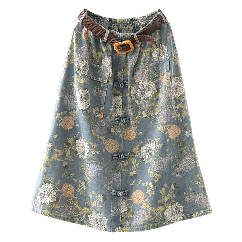 Хлопковая джинсовая весенняя ретро юбка, ремень, длина миди
