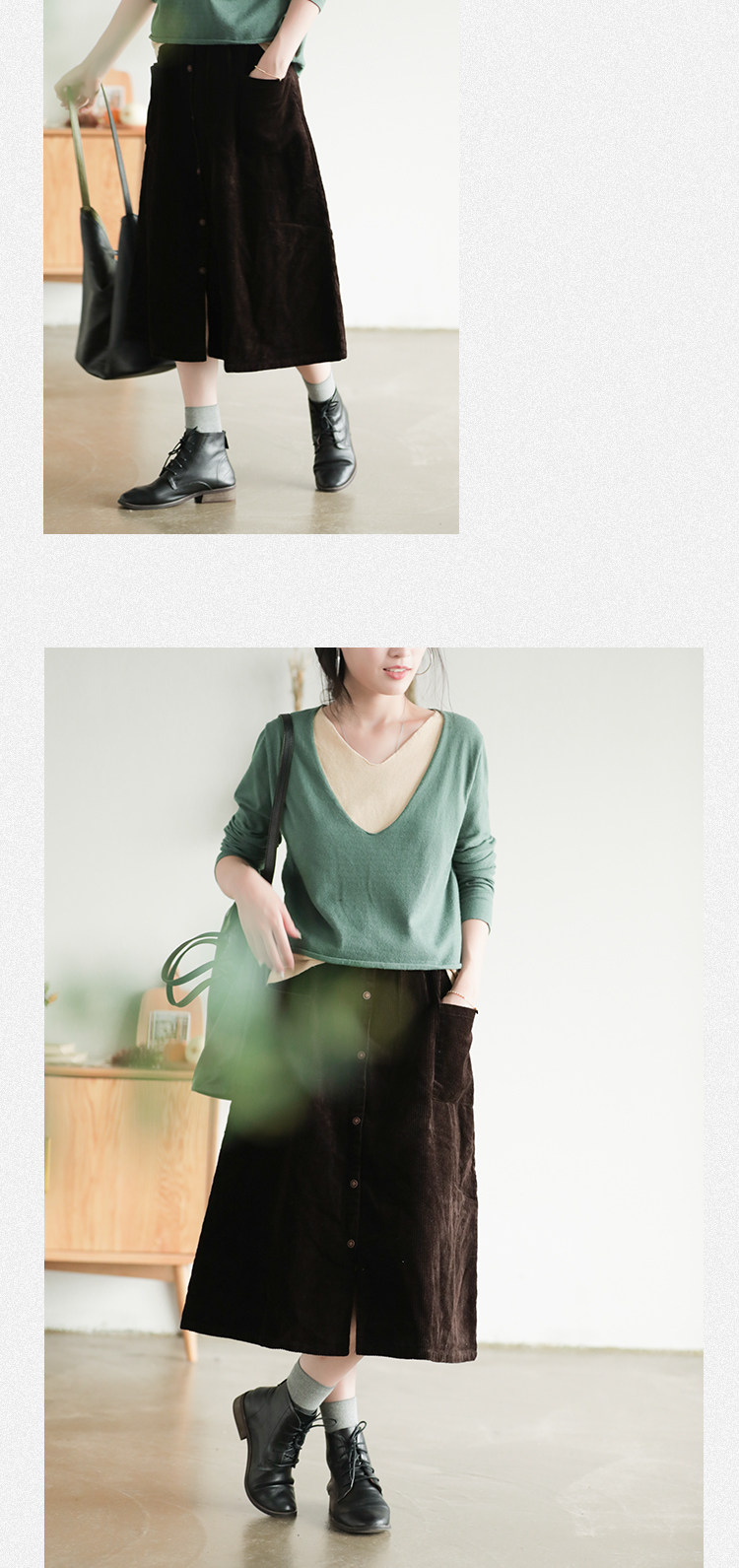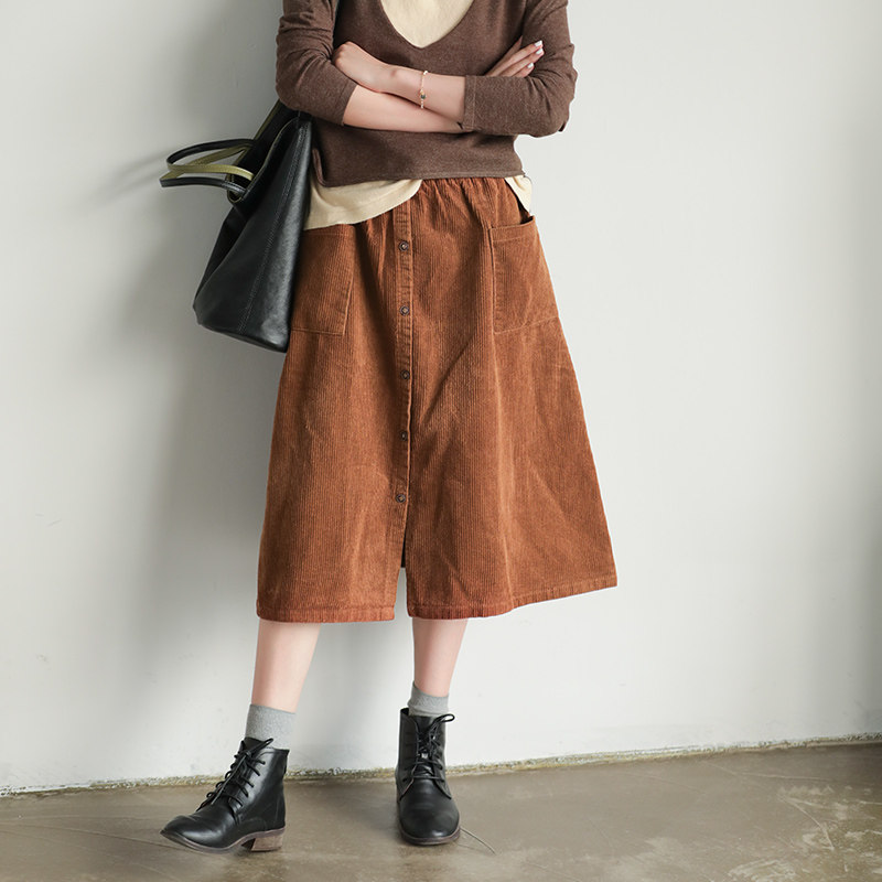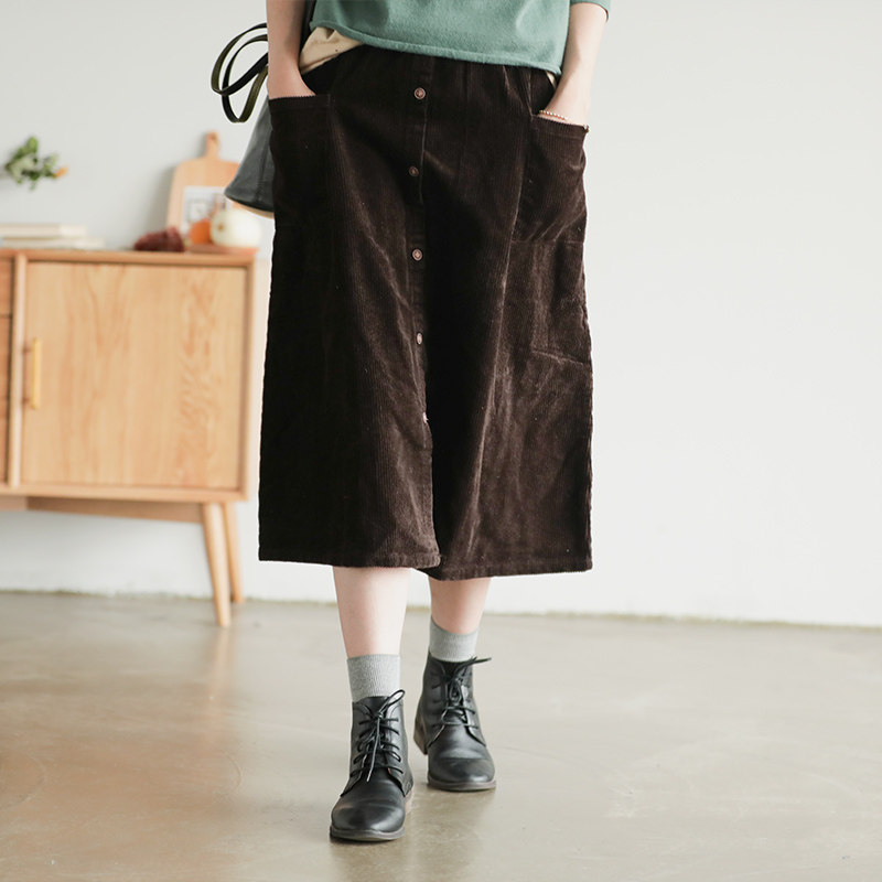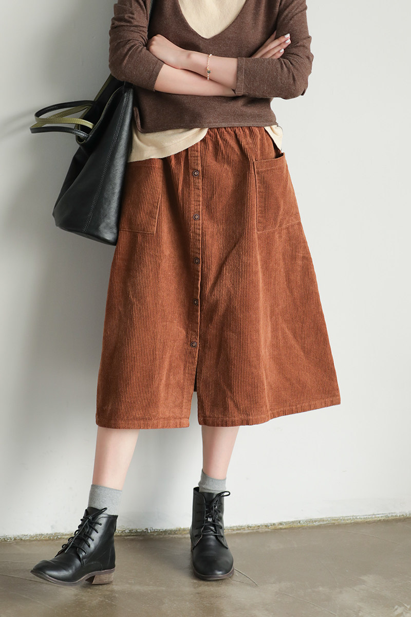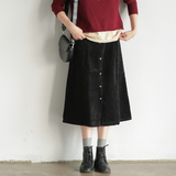 Хлопковая вельветовая весенняя ретро длинная юбка, А-силуэт