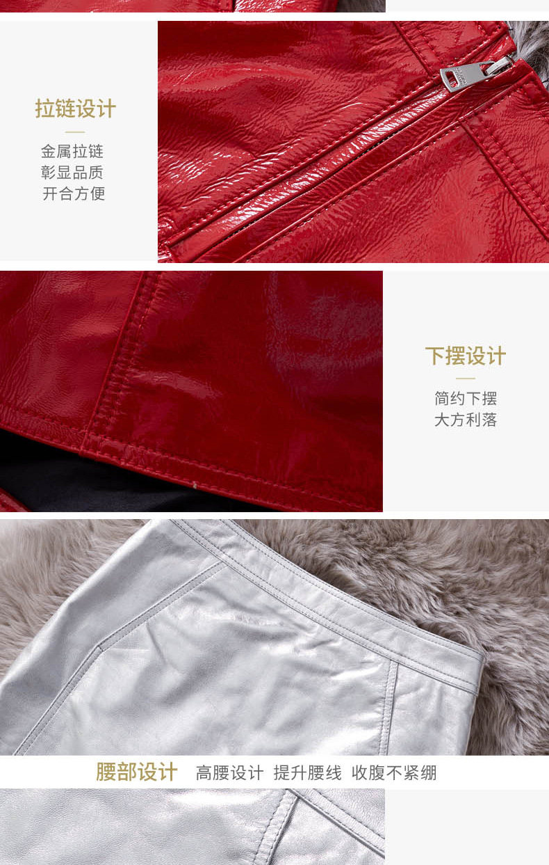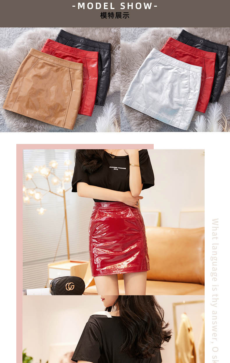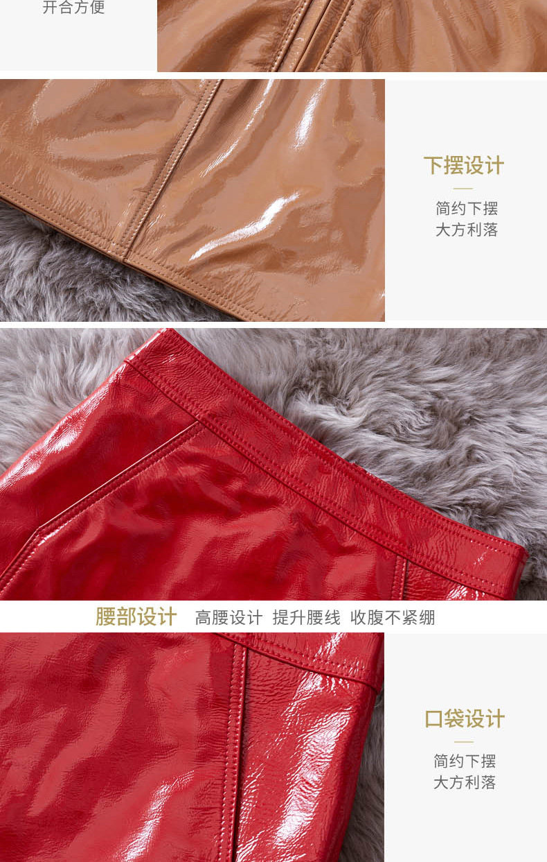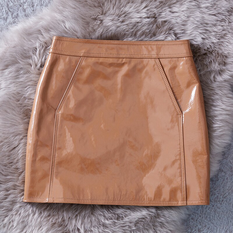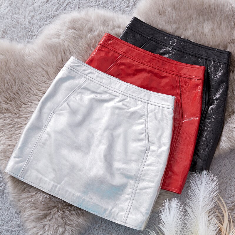 Красная глянцевая юбка, поясная сумка, мини-юбка, из натуральной кожи, подходит для подростков, высокая талия