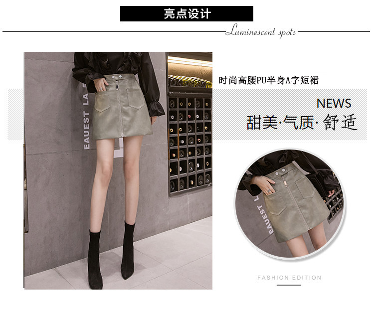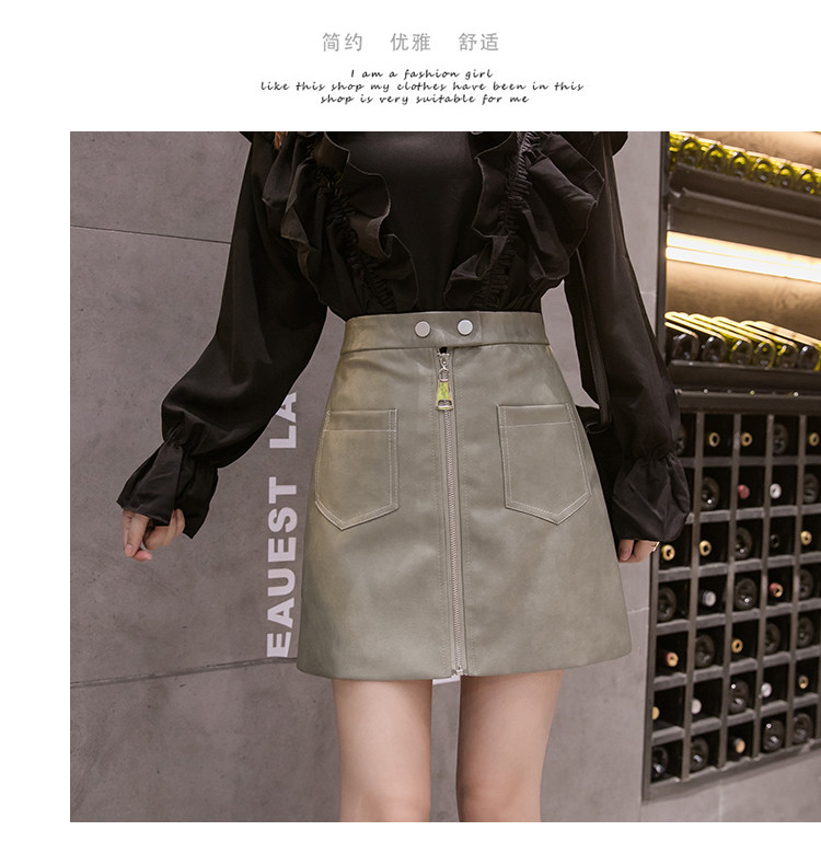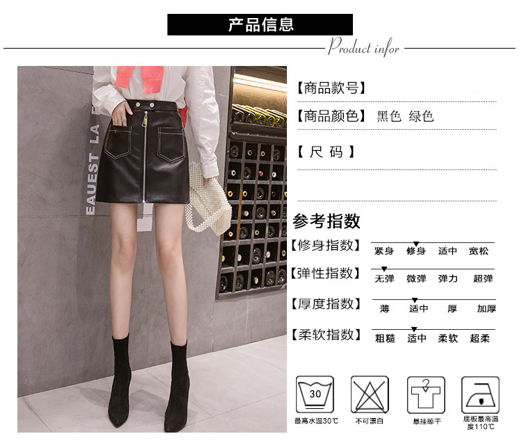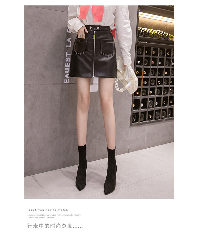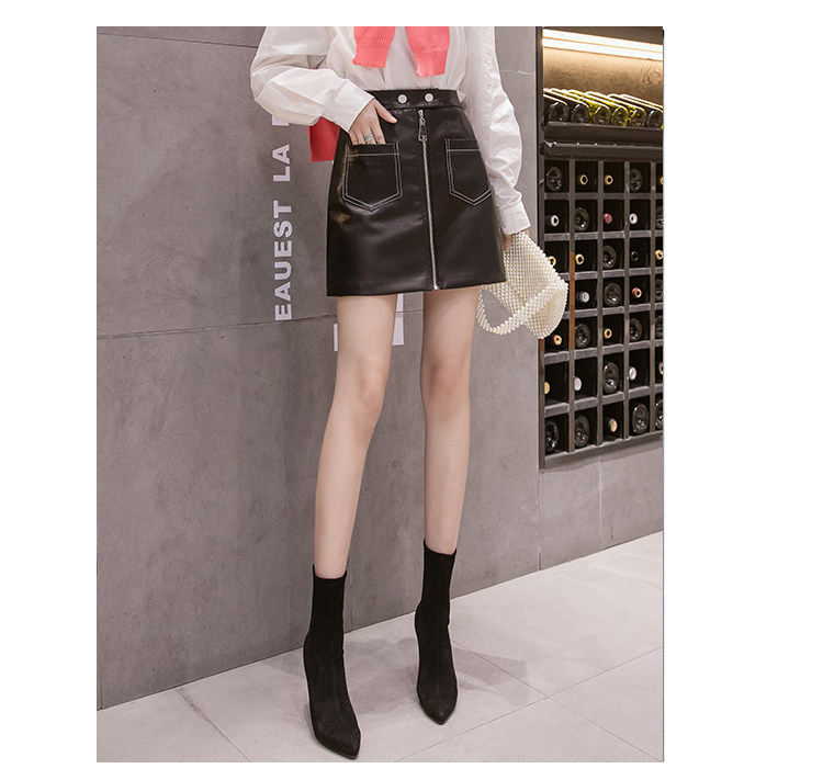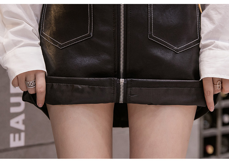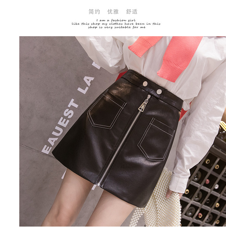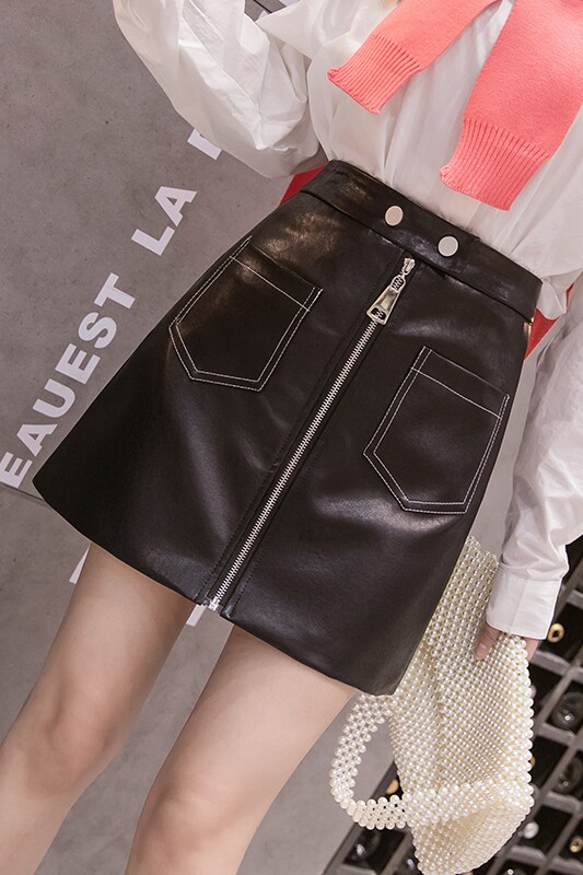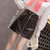 Демисезонная модная полиуретановая юбка с молнией, мини-юбка, в корейском стиле, А-силуэт, с акцентом на бедрах