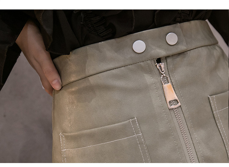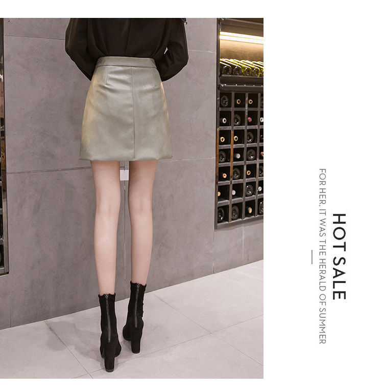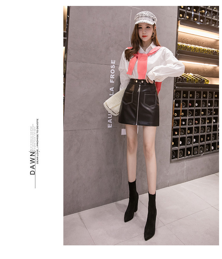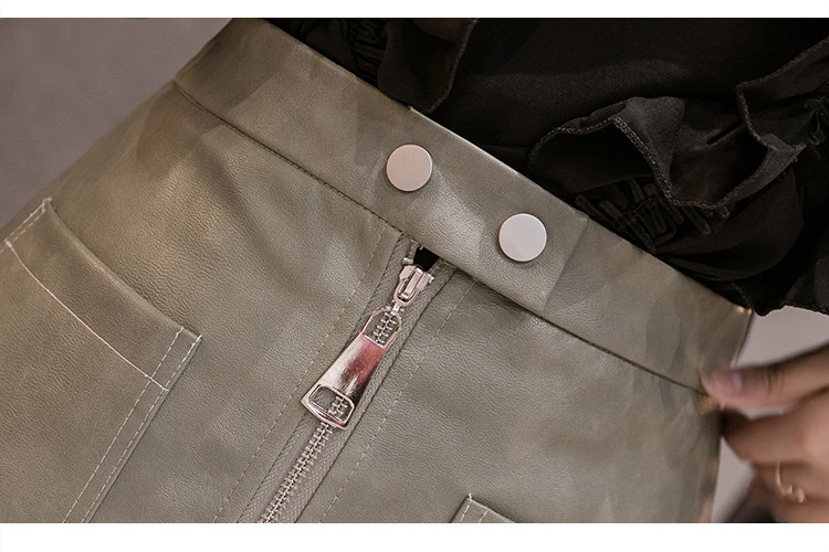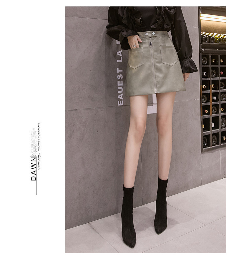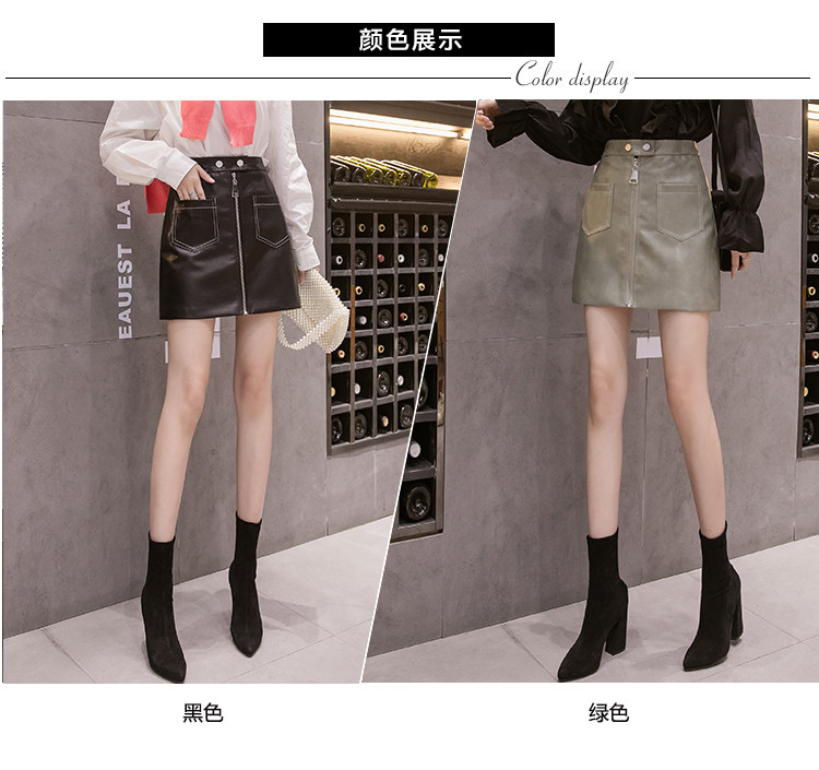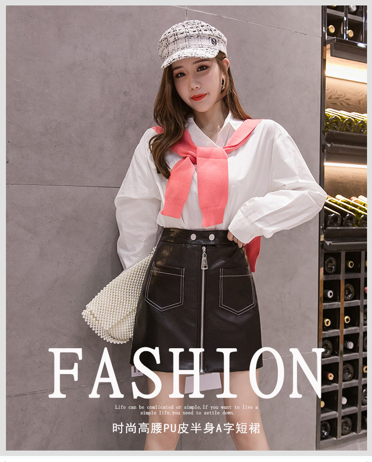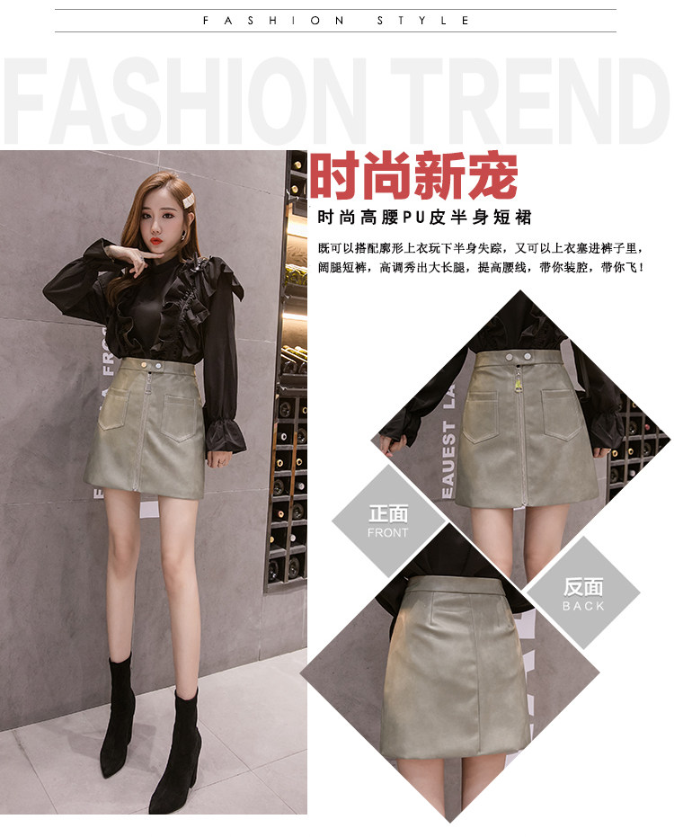 Демисезонная модная полиуретановая юбка с молнией, мини-юбка, в корейском стиле, А-силуэт, с акцентом на бедрах