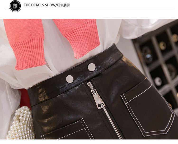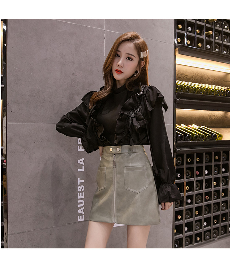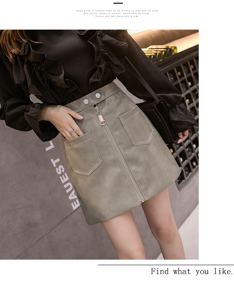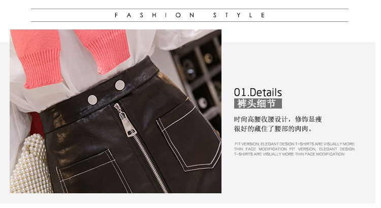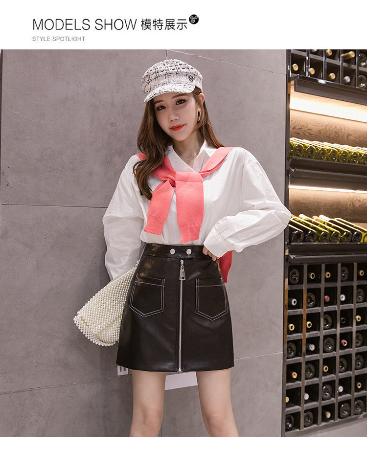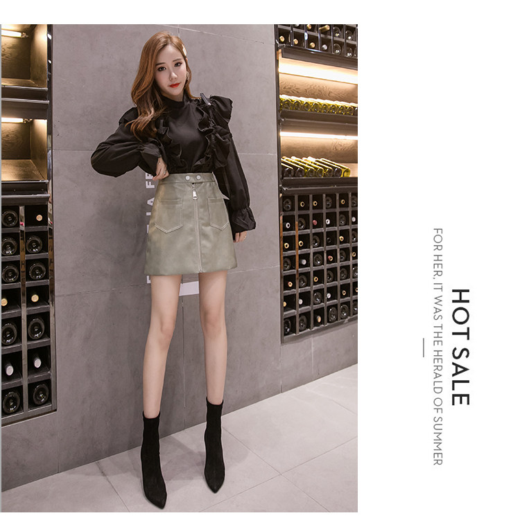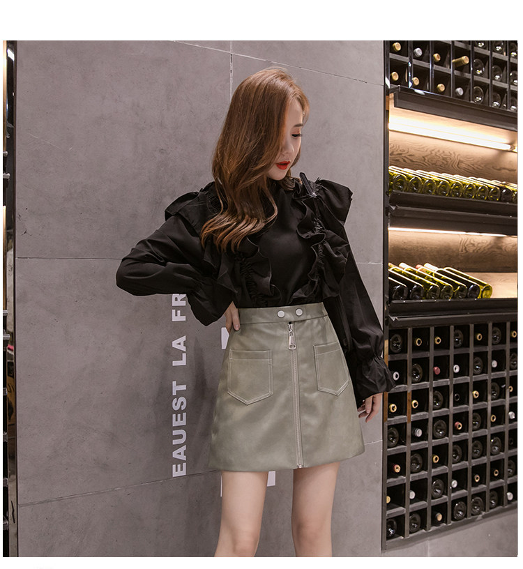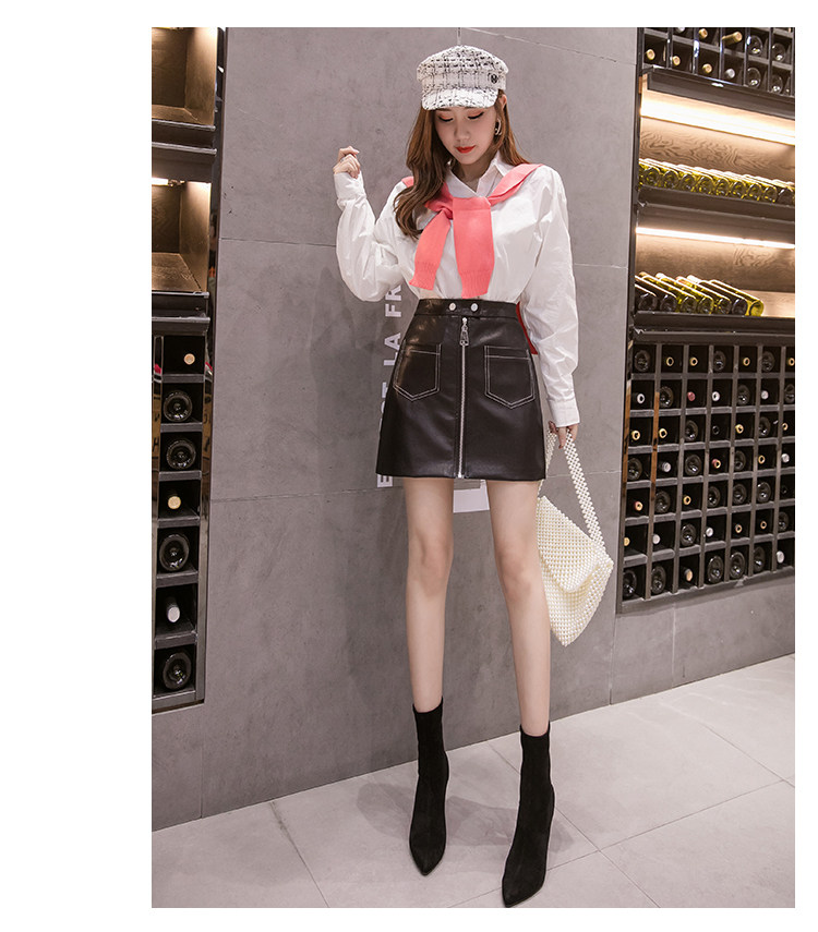Демисезонная модная полиуретановая юбка с молнией, мини-юбка, в корейском стиле, А-силуэт, с акцентом на бедрах