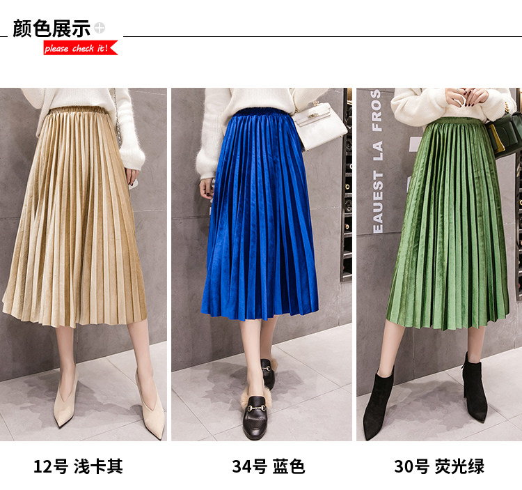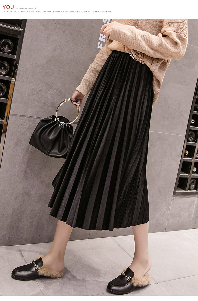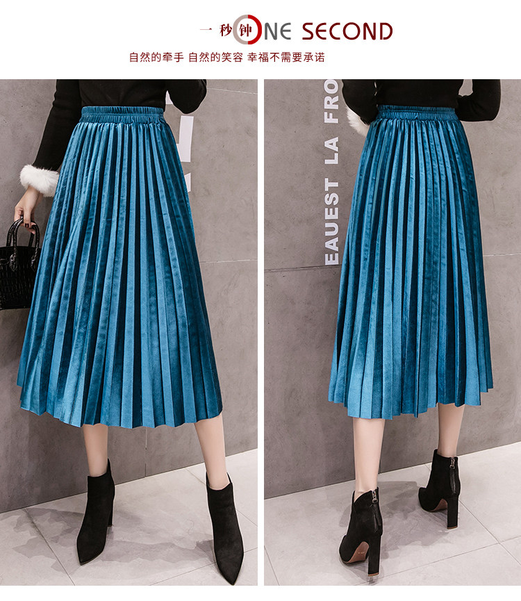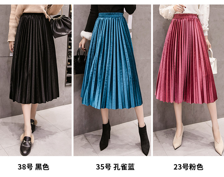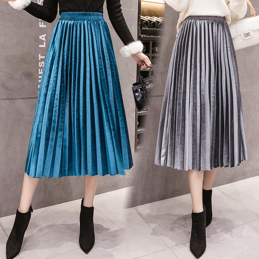 Ретро бархатная демисезонная длинная юбка, высокая талия, А-силуэт