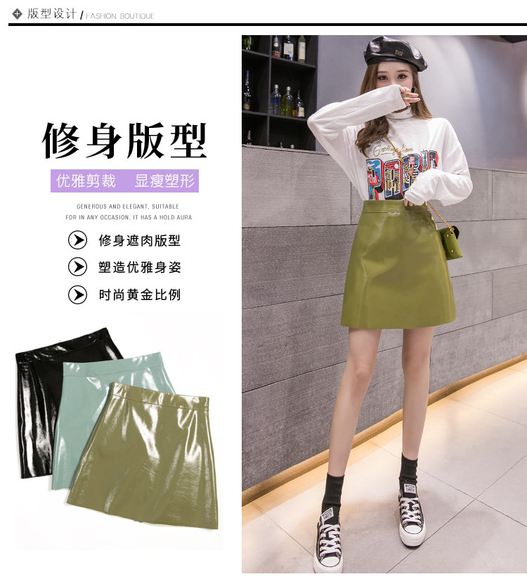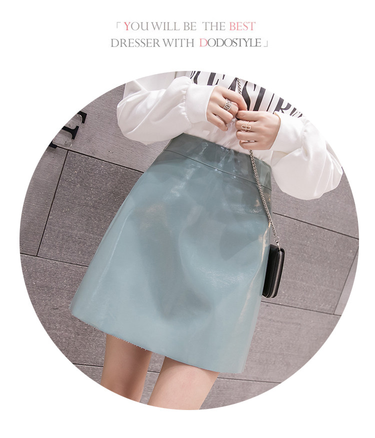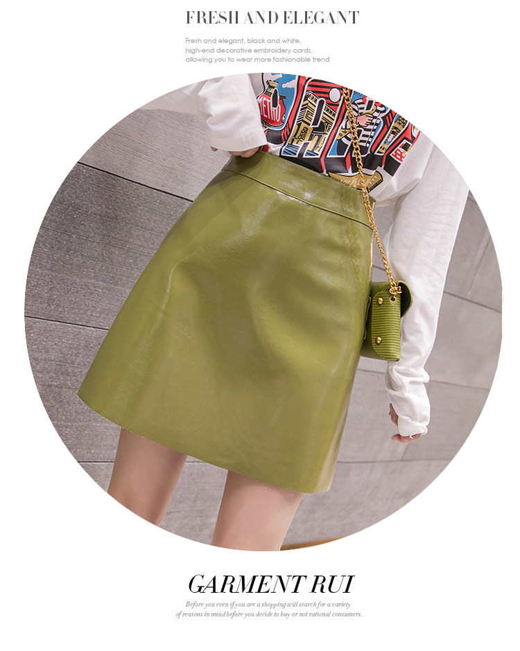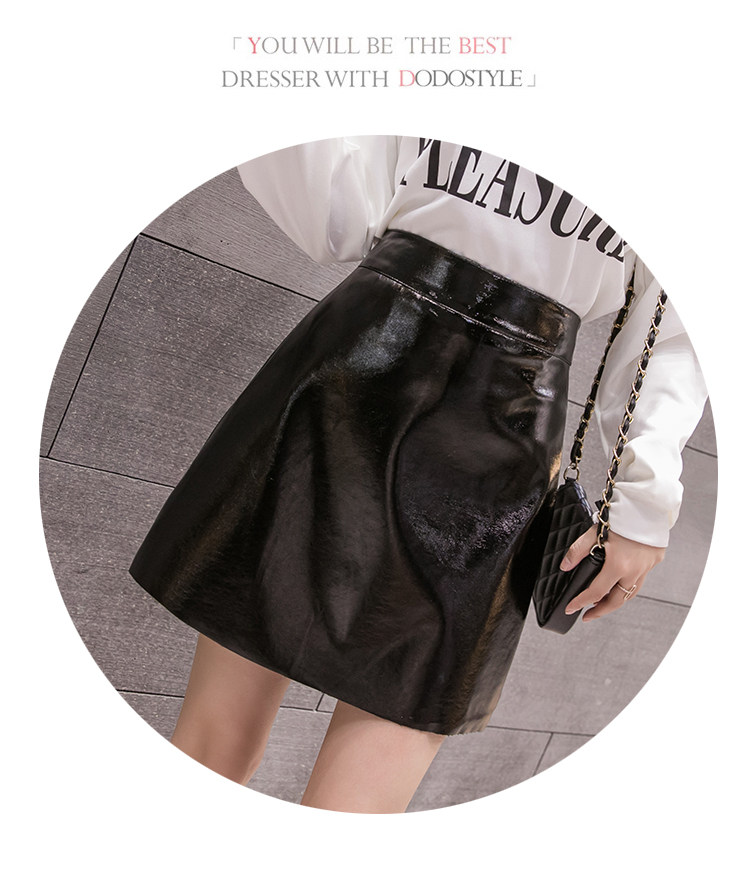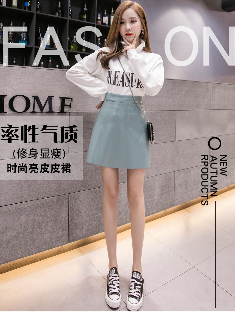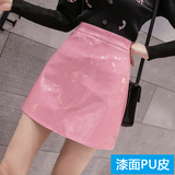 Осенняя полиуретановая приталенная юбка, брендовая мини-юбка, 2023, высокая талия, А-силуэт, с акцентом на бедрах