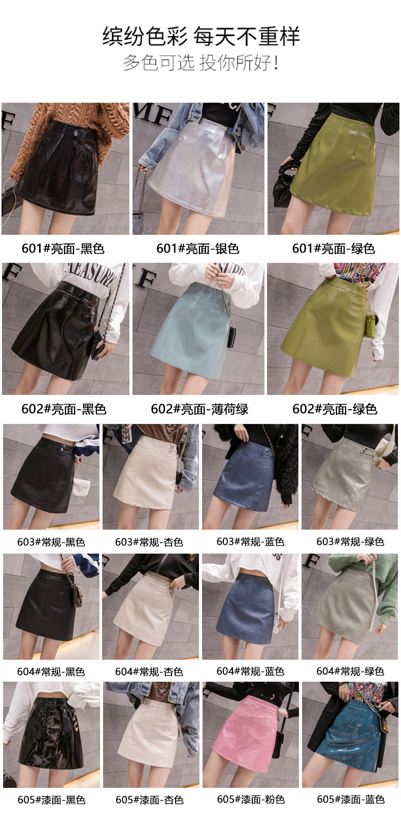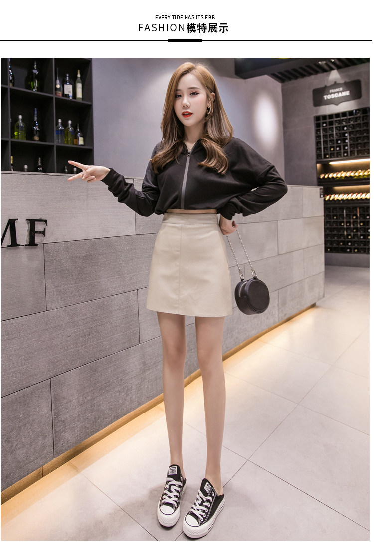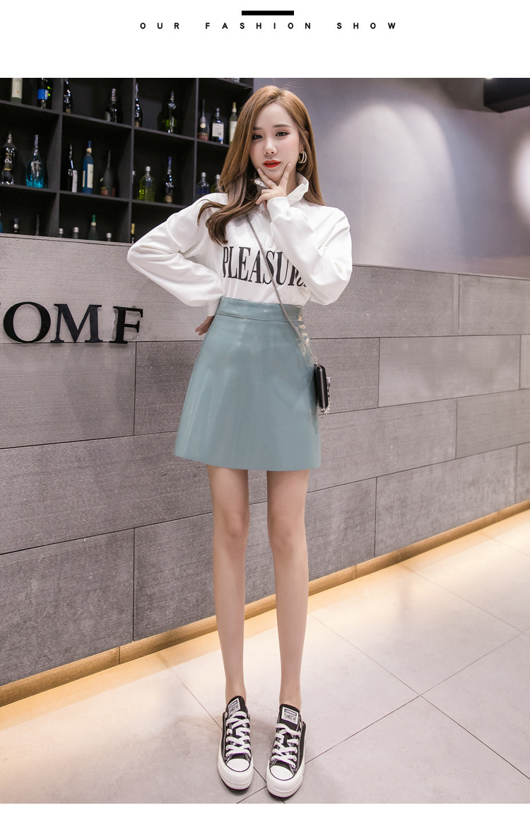 Осенняя полиуретановая приталенная юбка, брендовая мини-юбка, 2023, высокая талия, А-силуэт, с акцентом на бедрах