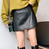 Юбка, из натуральной кожи, А-силуэт