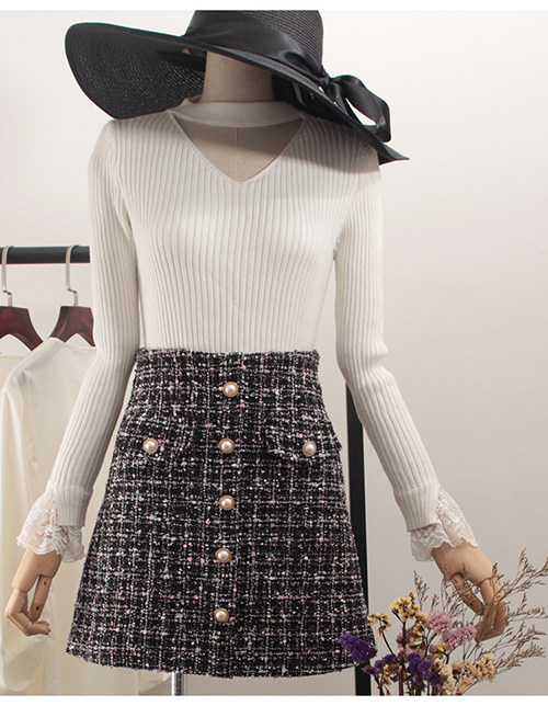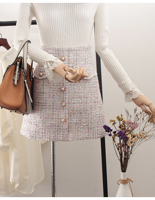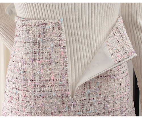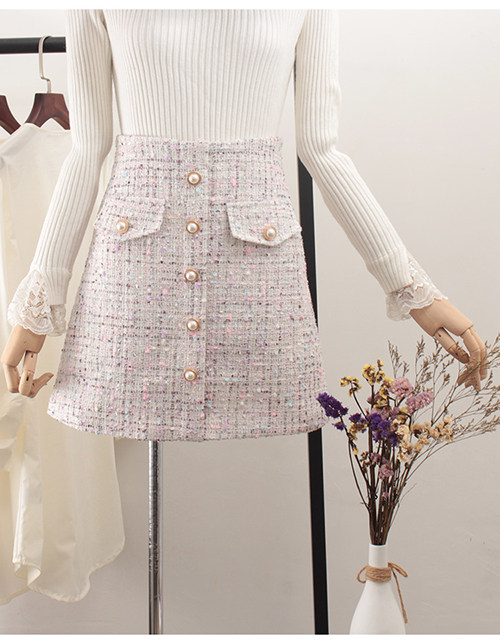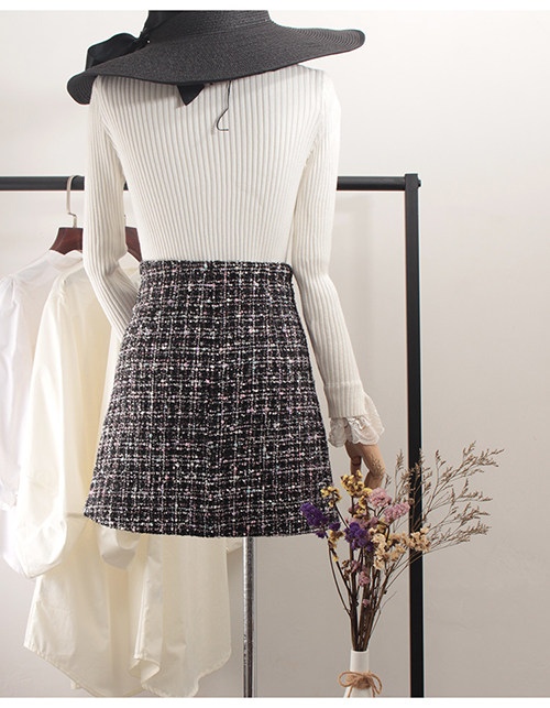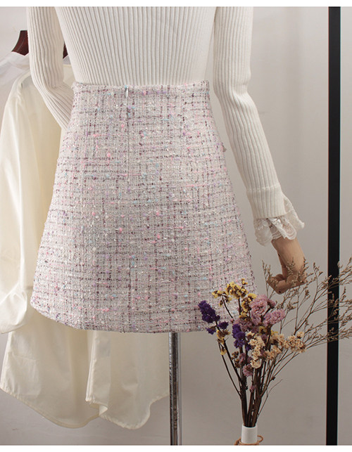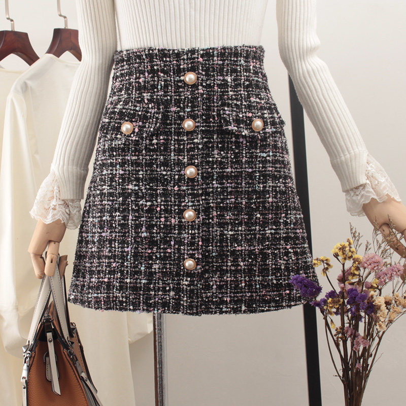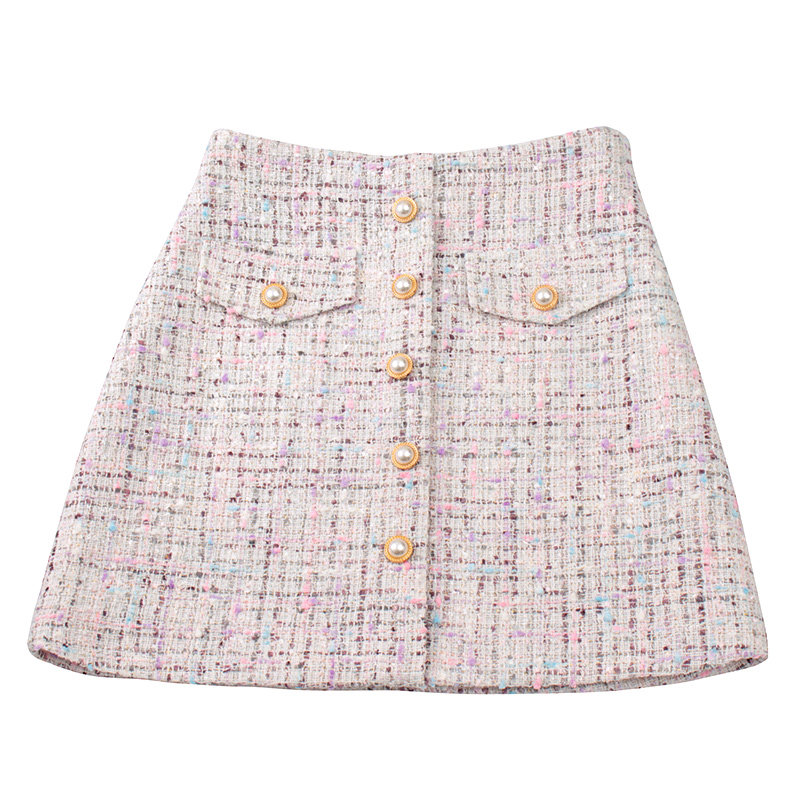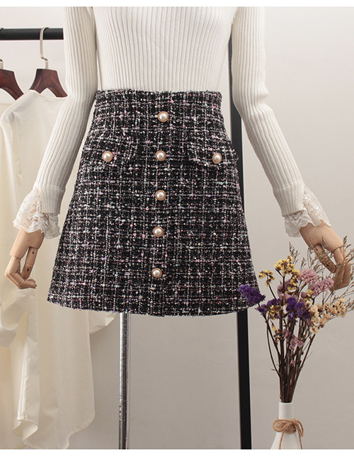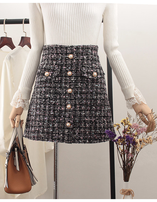 Демисезонная шерстяная юбка, в стиле Шанель, коллекция 2023, прикрывает попу, высокая талия, в западном стиле, А-силуэт