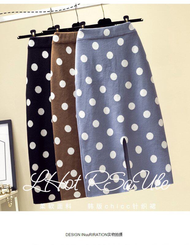 Трикотажная демисезонная юбка, длинная шерстяная поясная сумка, высокая талия, длина миди