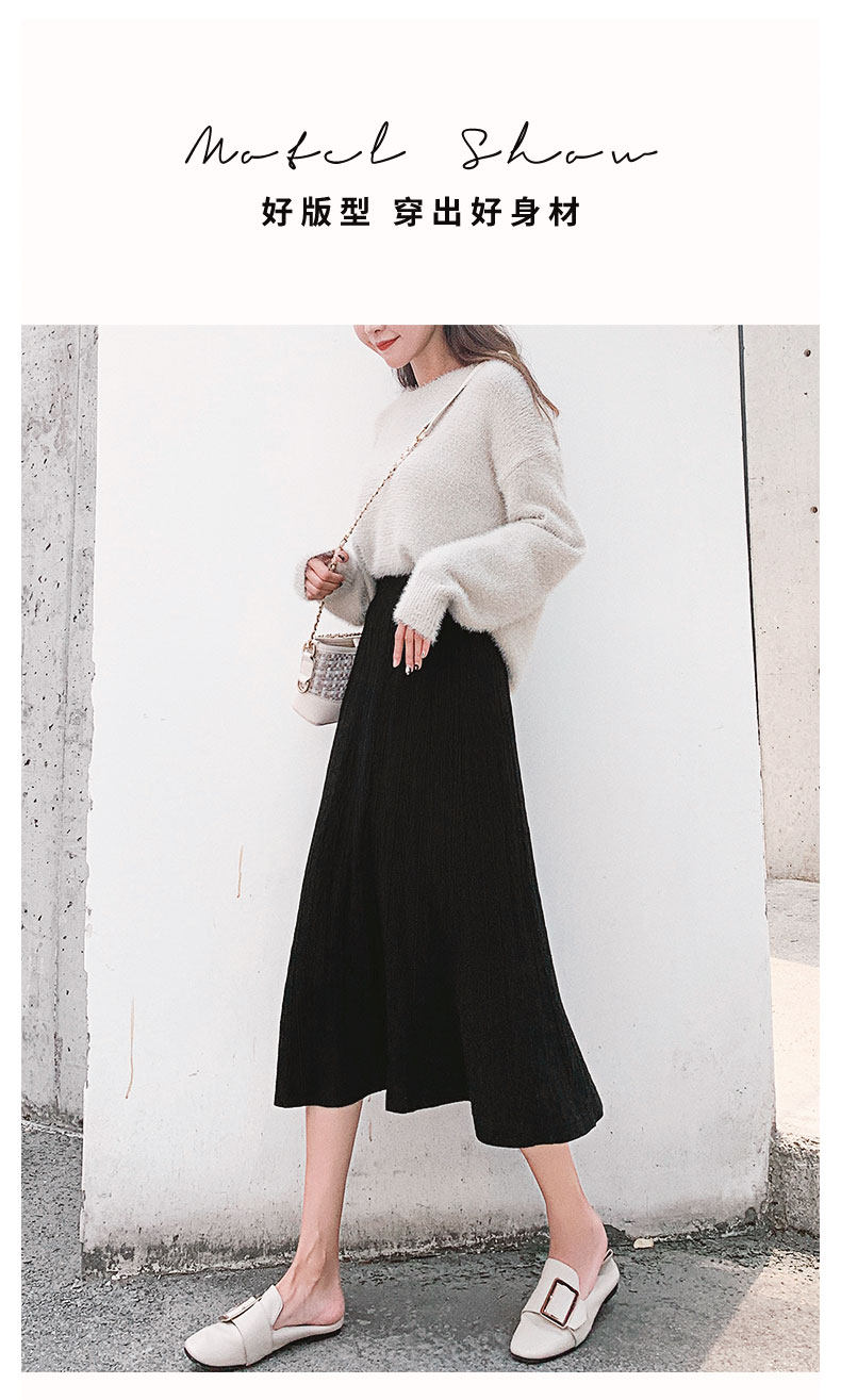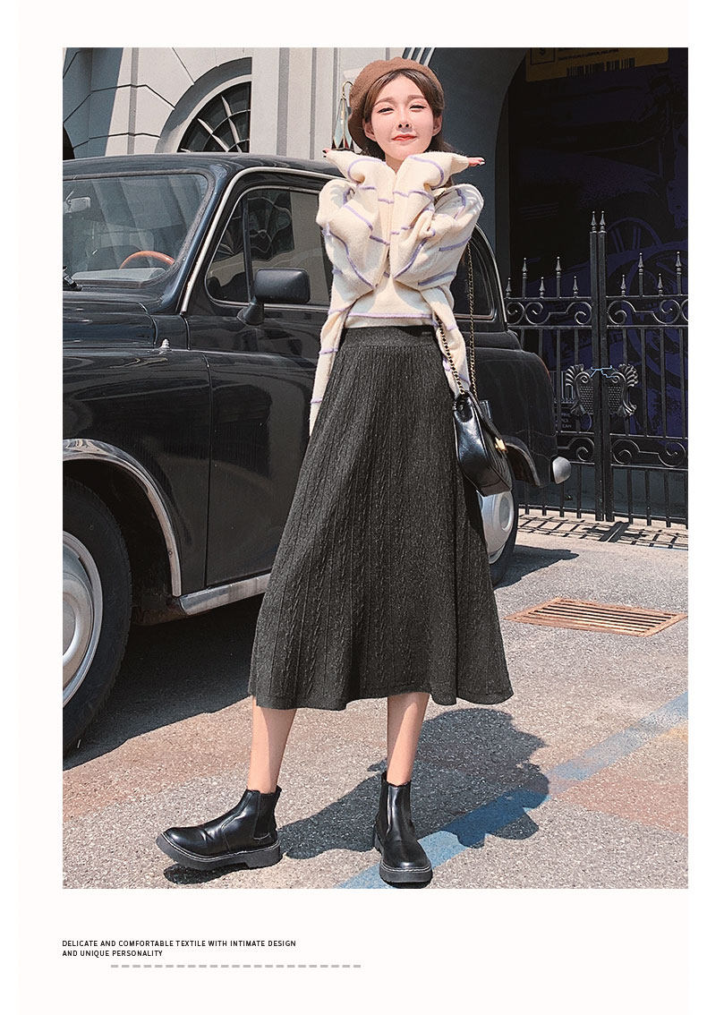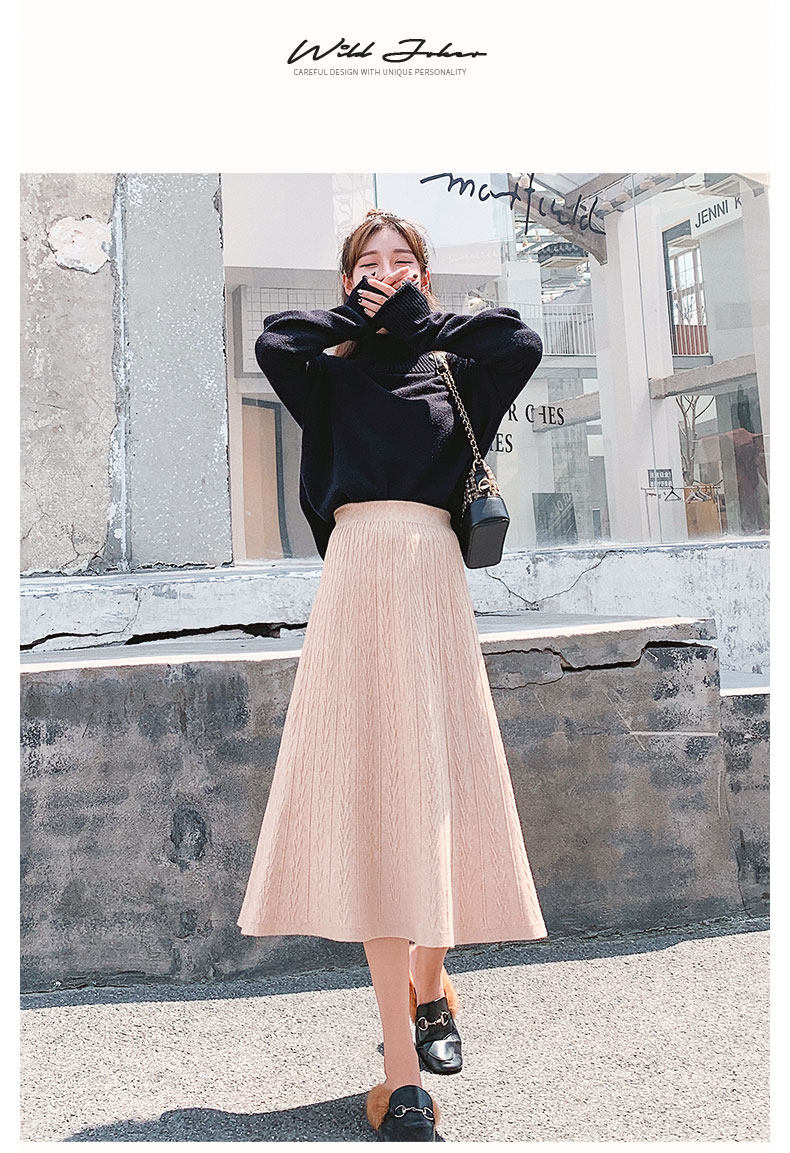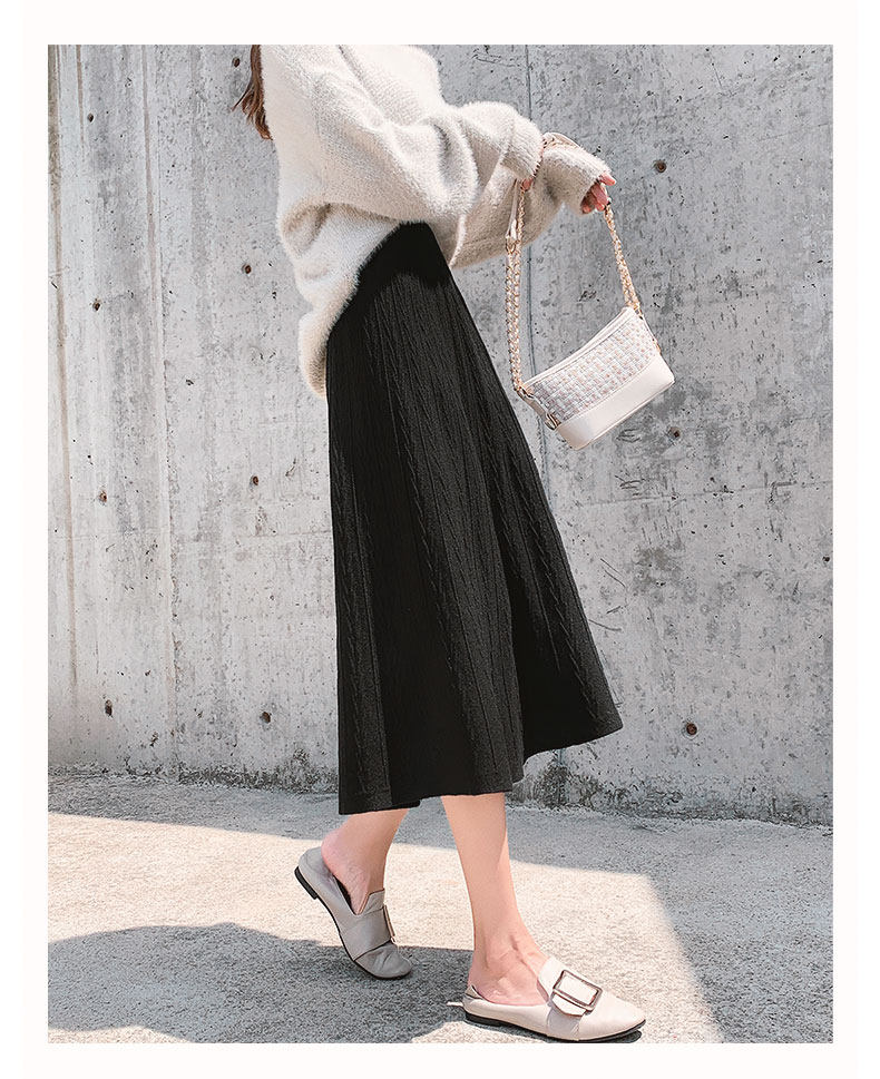 Черная зимняя трикотажная демисезонная длинная юбка, шерстяной свитер, А-силуэт, высокая талия, длина макси